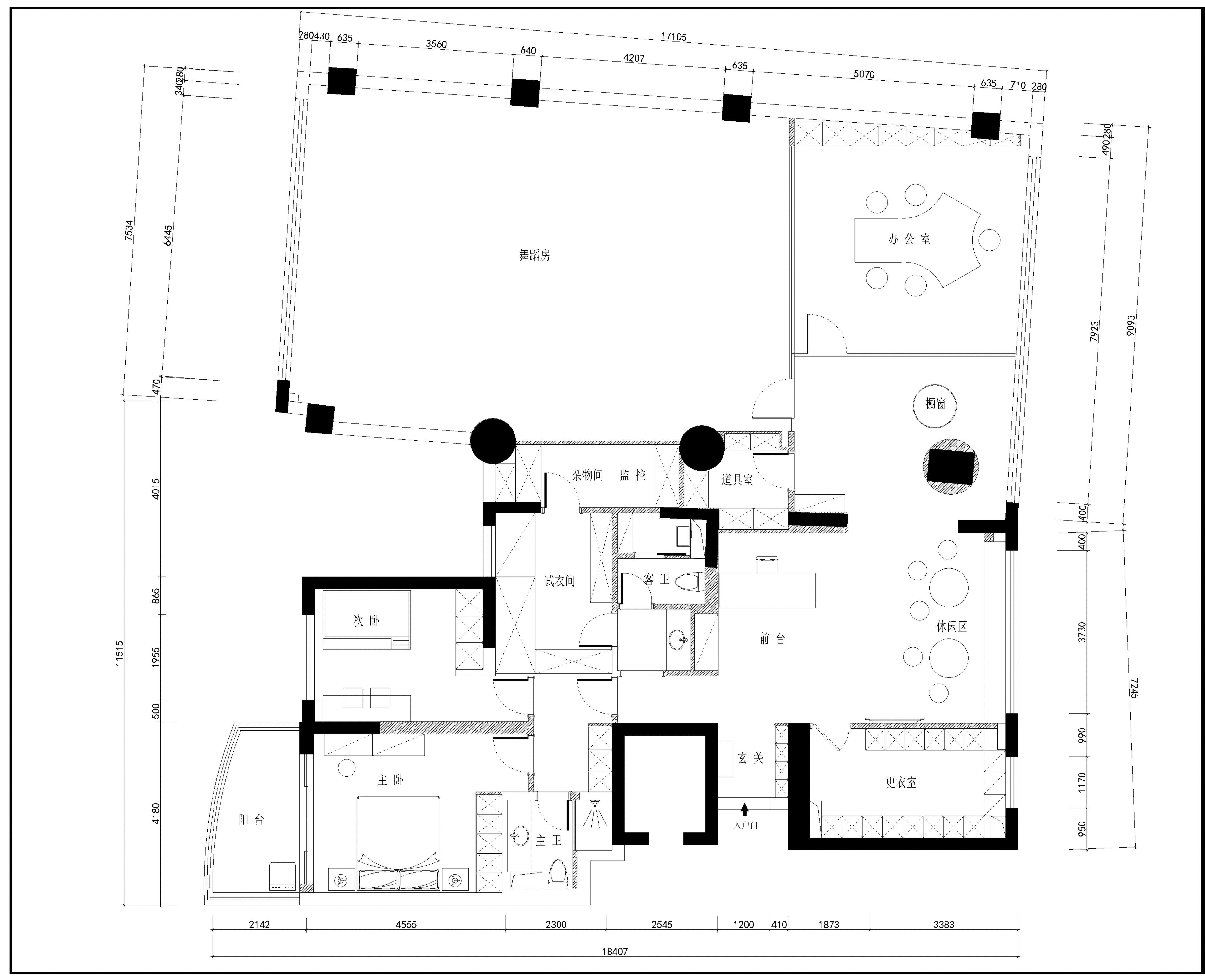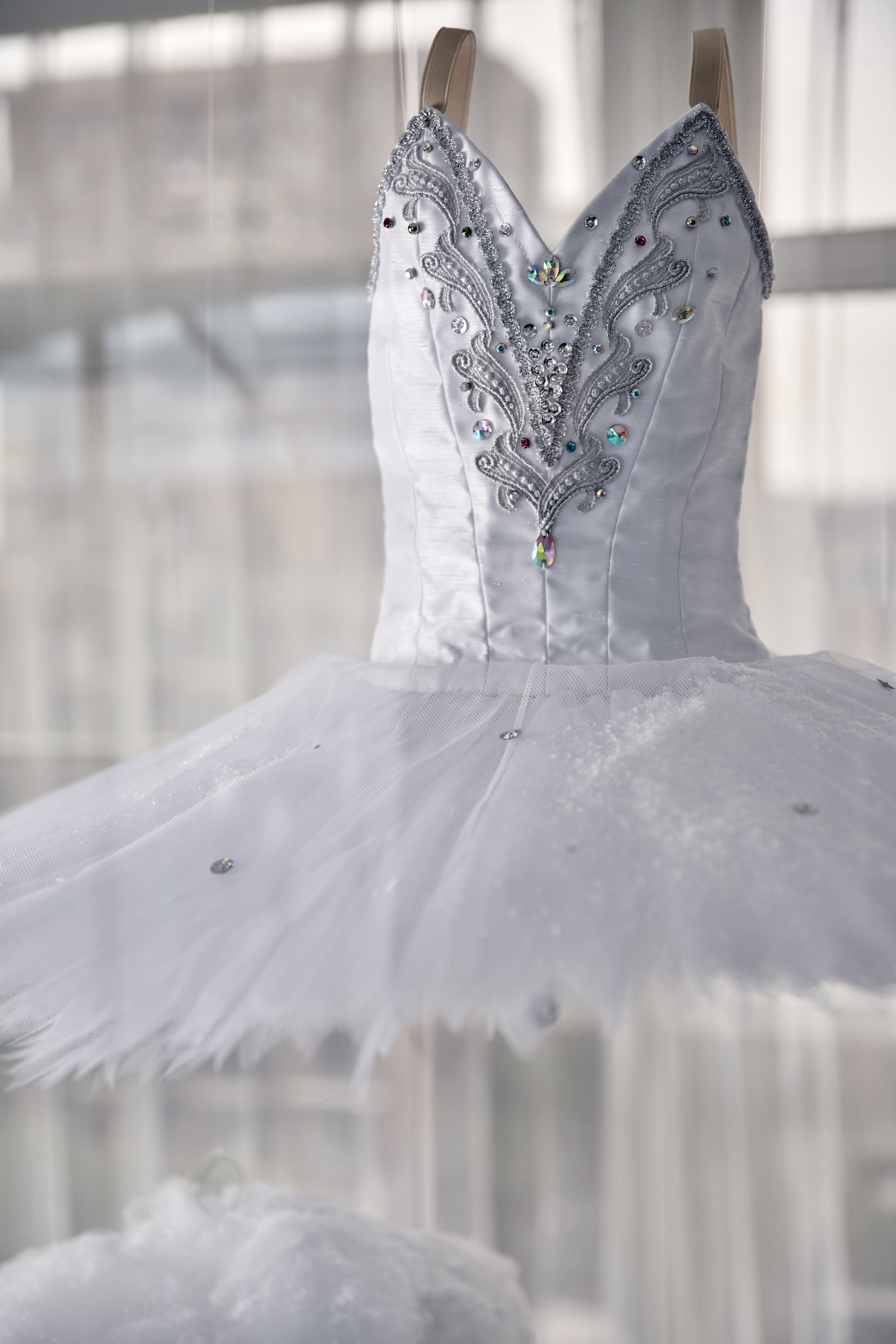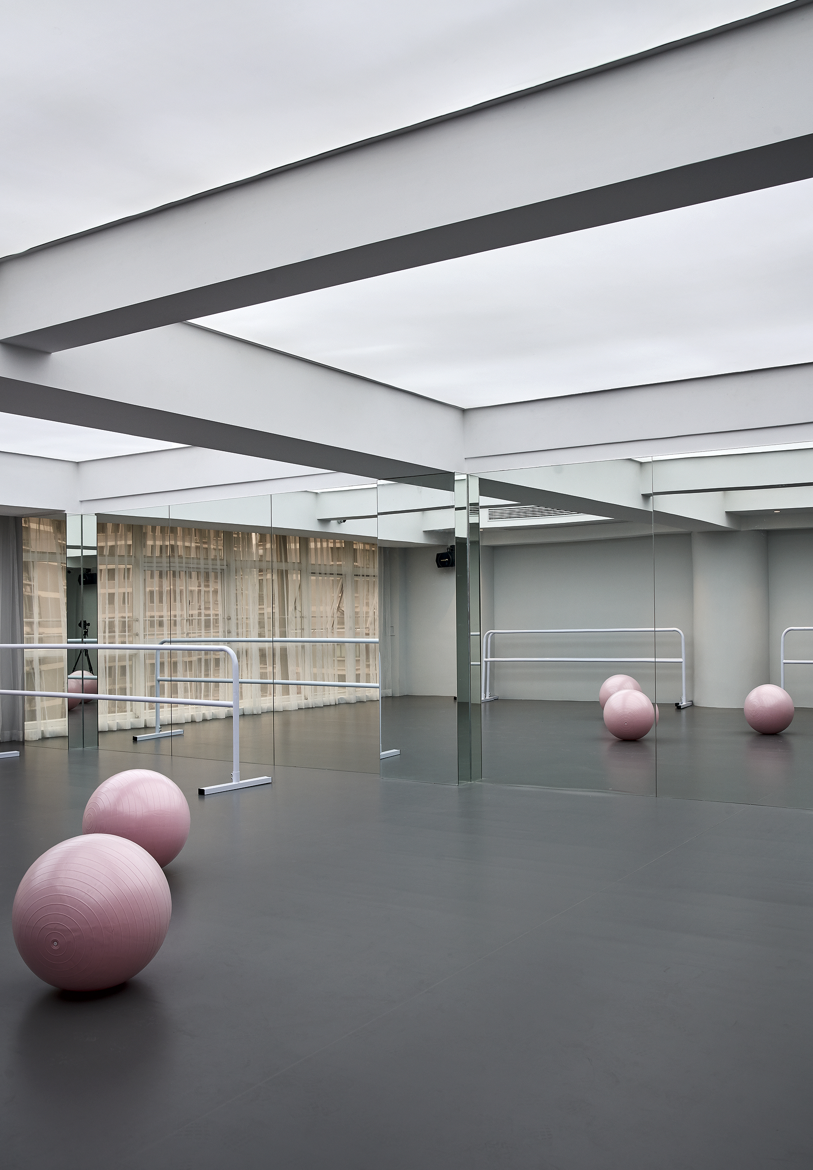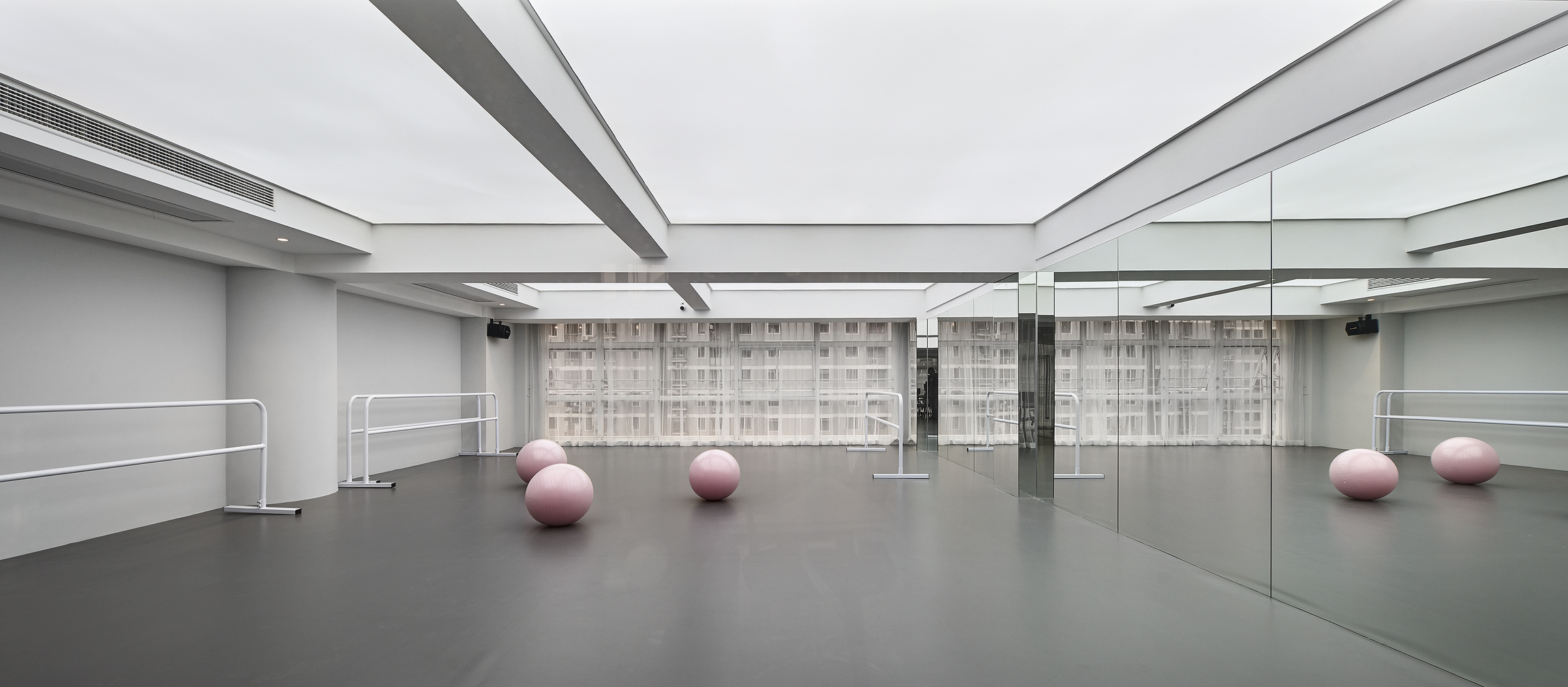 空间布局:圆柱形的玻璃橱窗使空间更加的通透,高洁优雅。芭蕾舞裙与白色云朵搭配,空灵梦幻,芭蕾舞女孩们梦的开始。