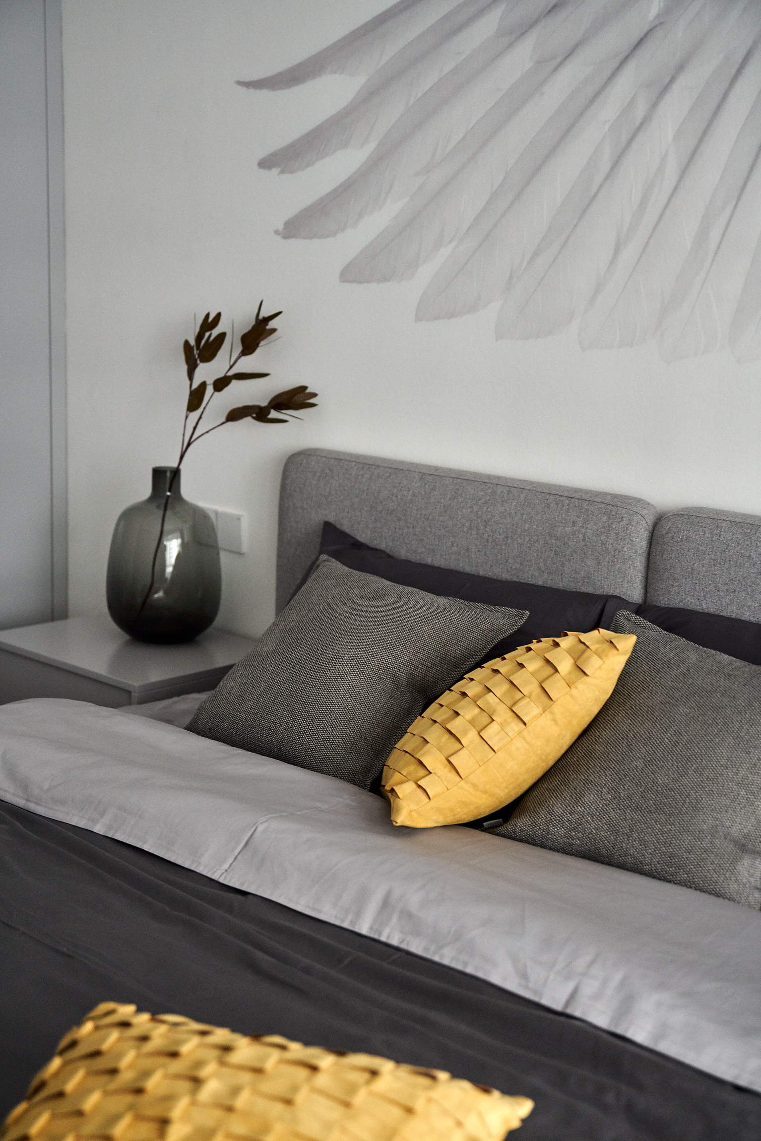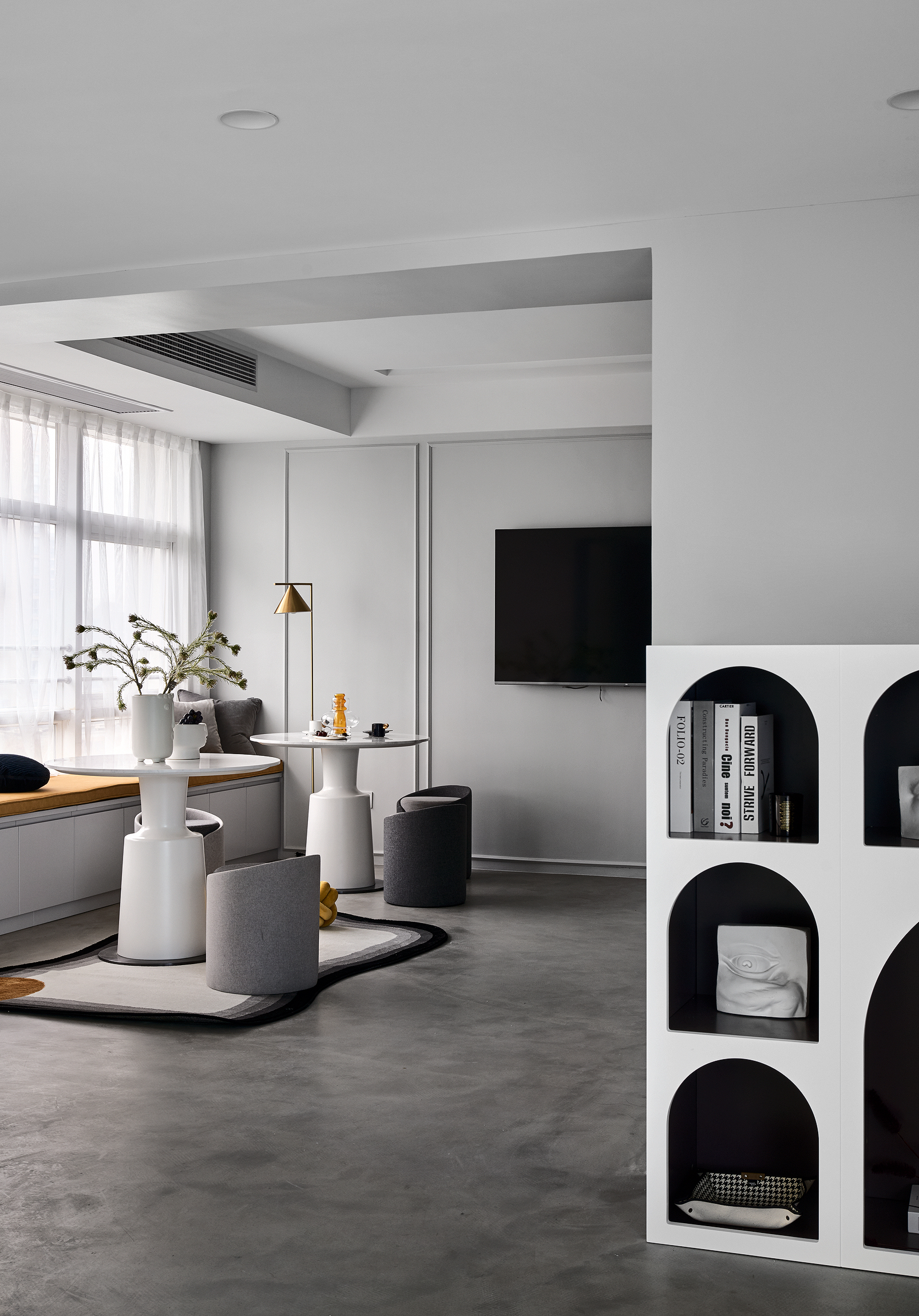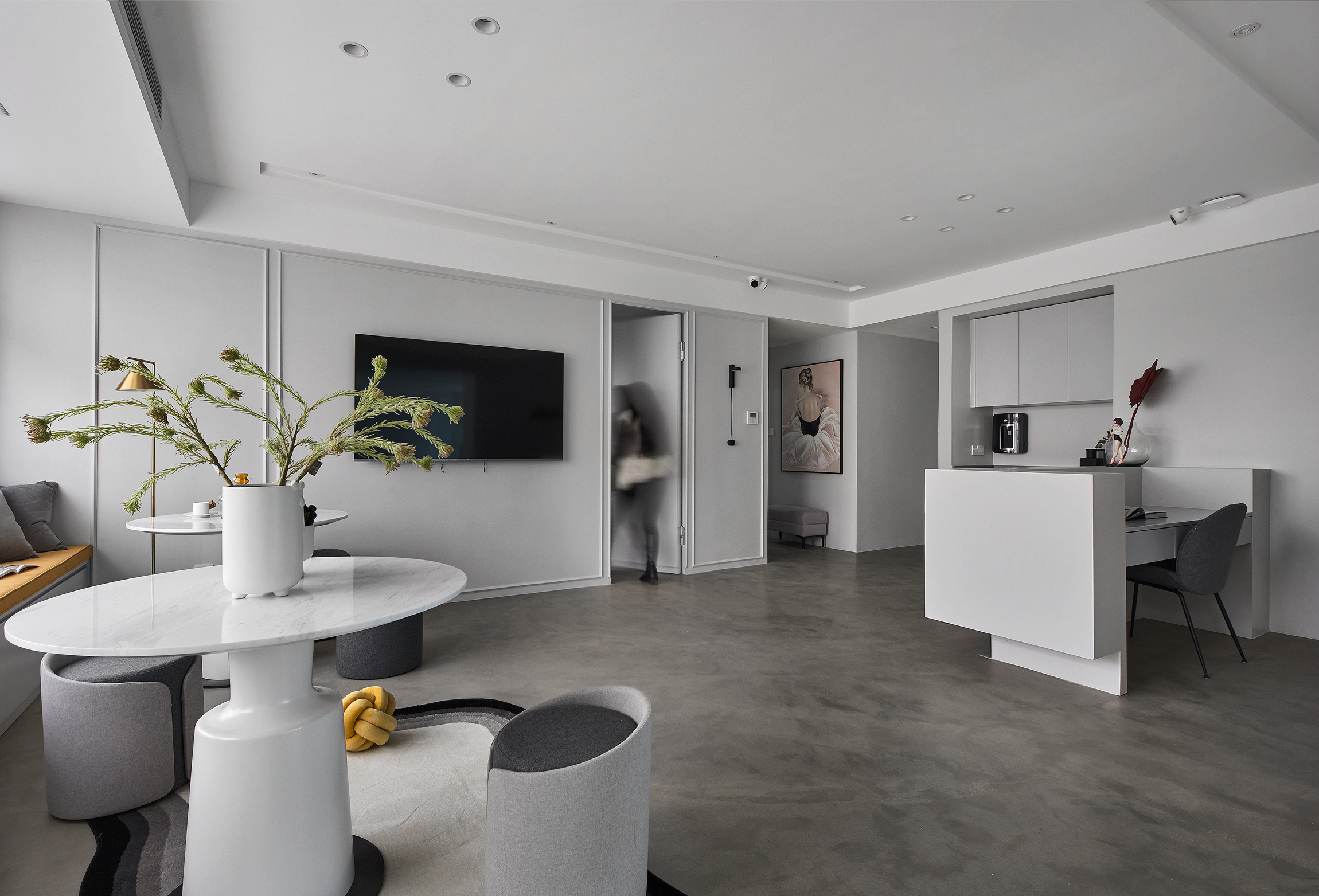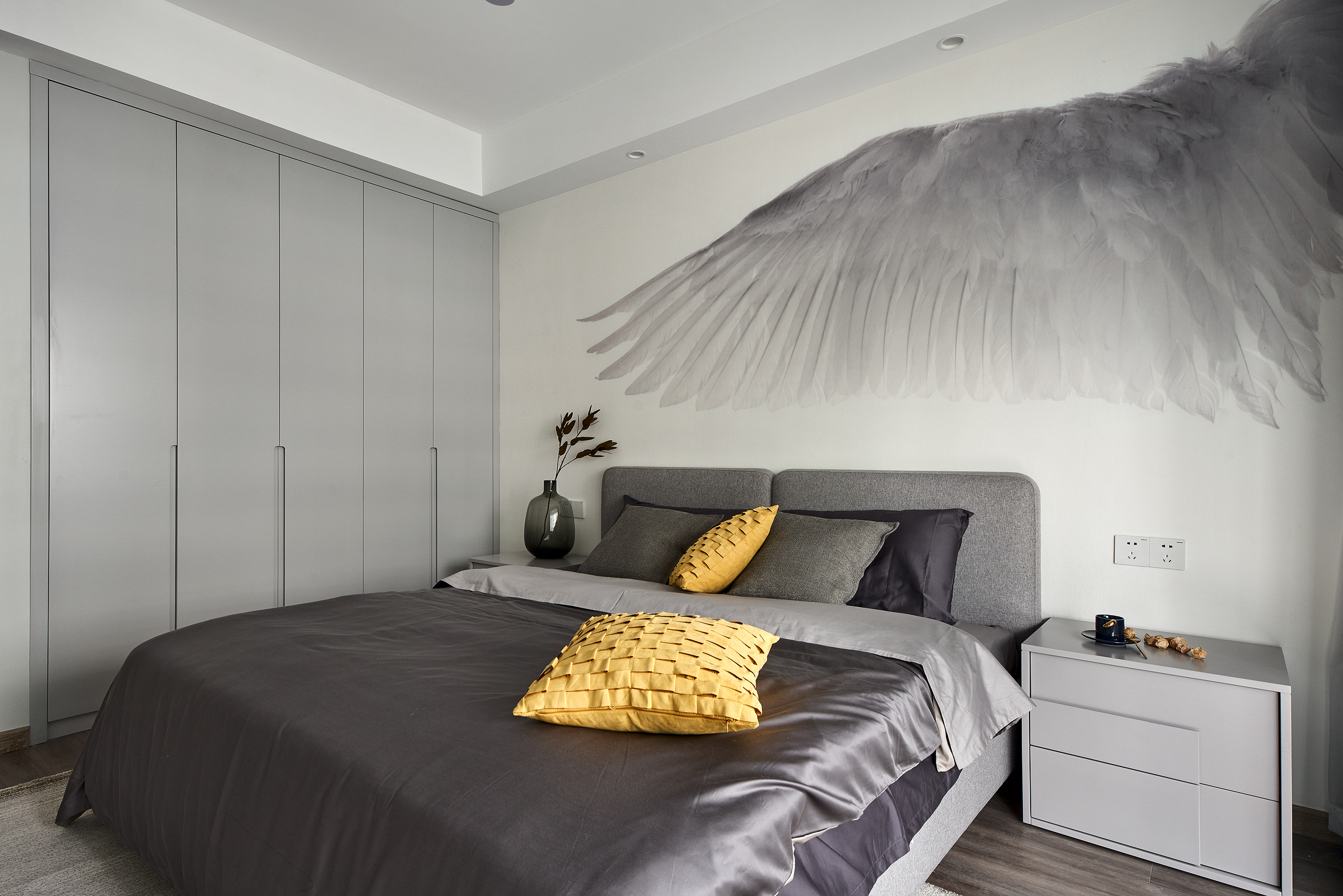 空间意境:高级灰为主基调,点缀黄、绿、金属色,低调素雅的搭配让一切回归简洁。