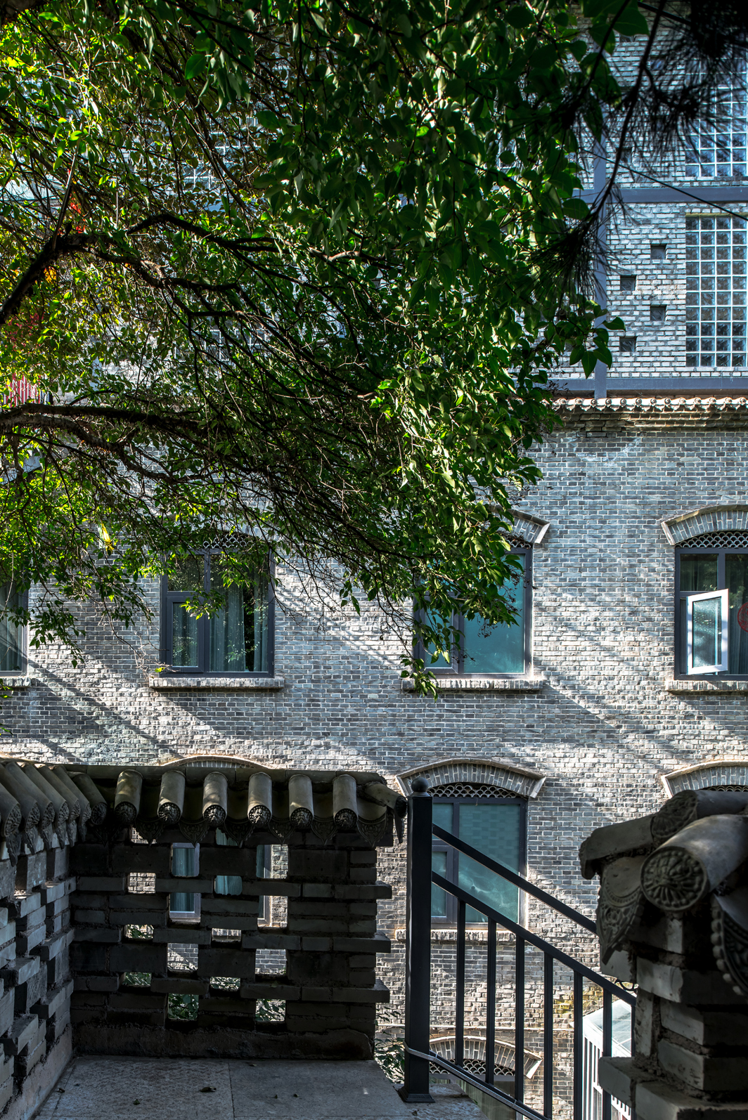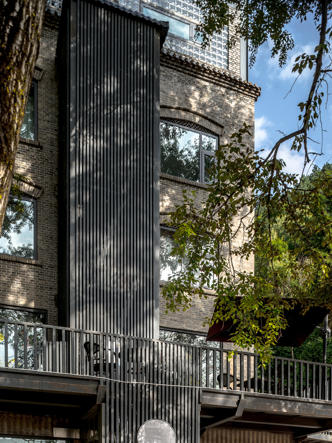 古朴的青砖外观配以青灰色的钢结构,刚柔并济。