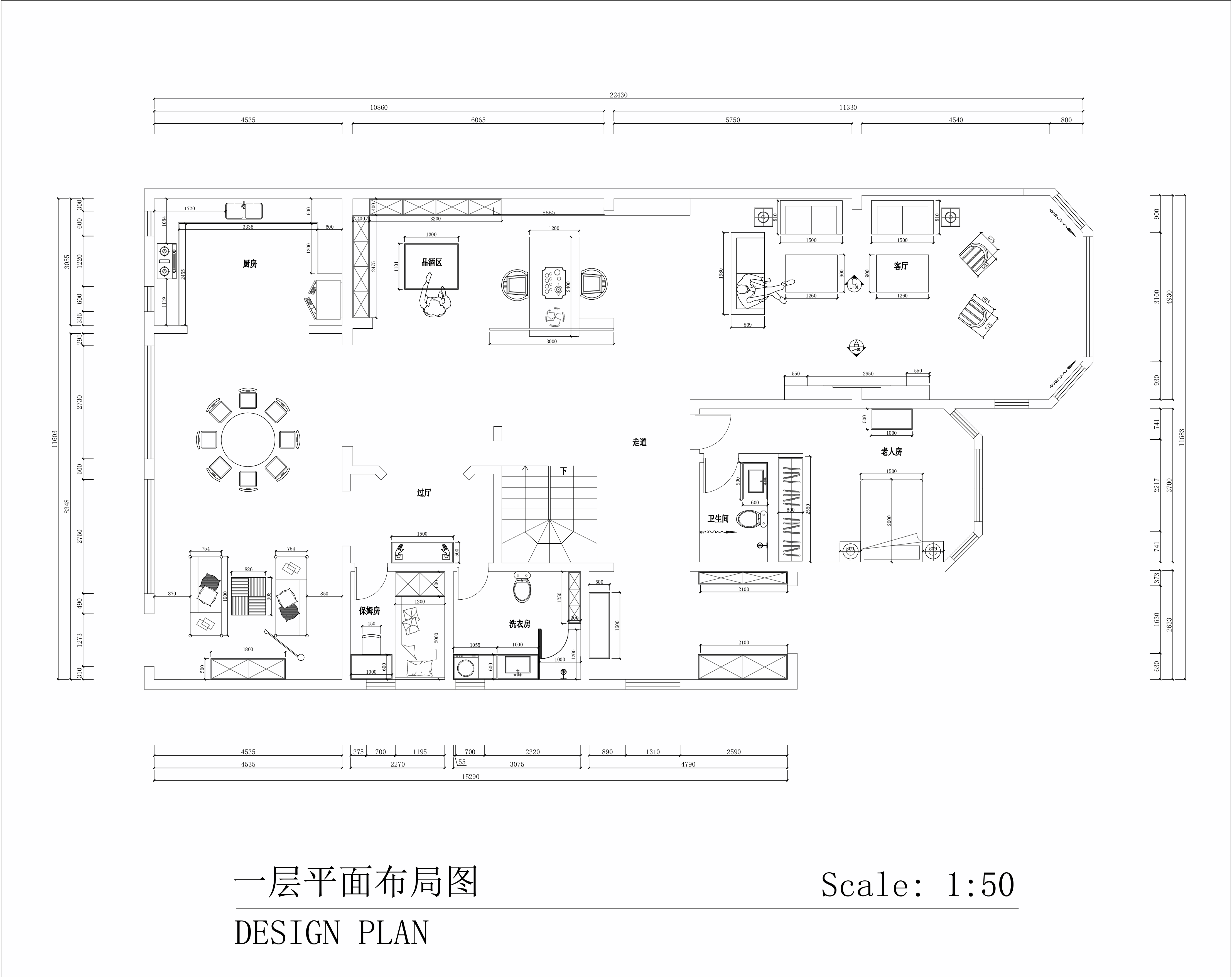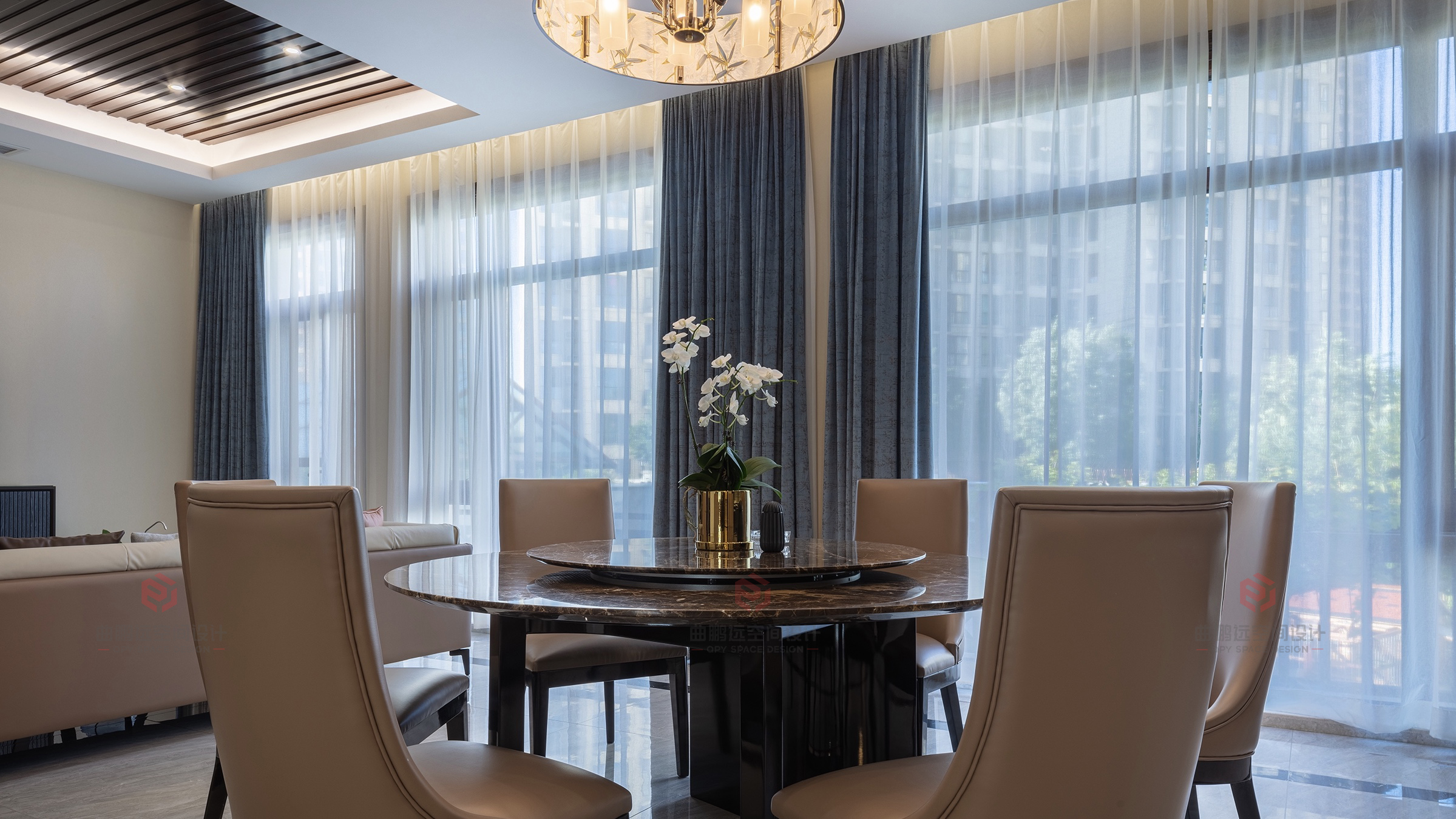 空间布局:开放式的空间设计有利于人与人之间的交流并拉近彼此的距离,让整个家充满人情味。一层公共区域的设计是"零空间”的设计理念,各个空间相互独立又相互融合。餐厅与客厅相连的墙面使用相同的壁纸材质,地面为灰色水泥地砖相衬。从西厨区、客厅、中餐厅虽是不同场景的切换,却让人感到一样的和谐和沉静...当夜晚降临,万家灯火,一家人在各个空间可以达到无障碍的沟通,家的温暖便呼之欲出!