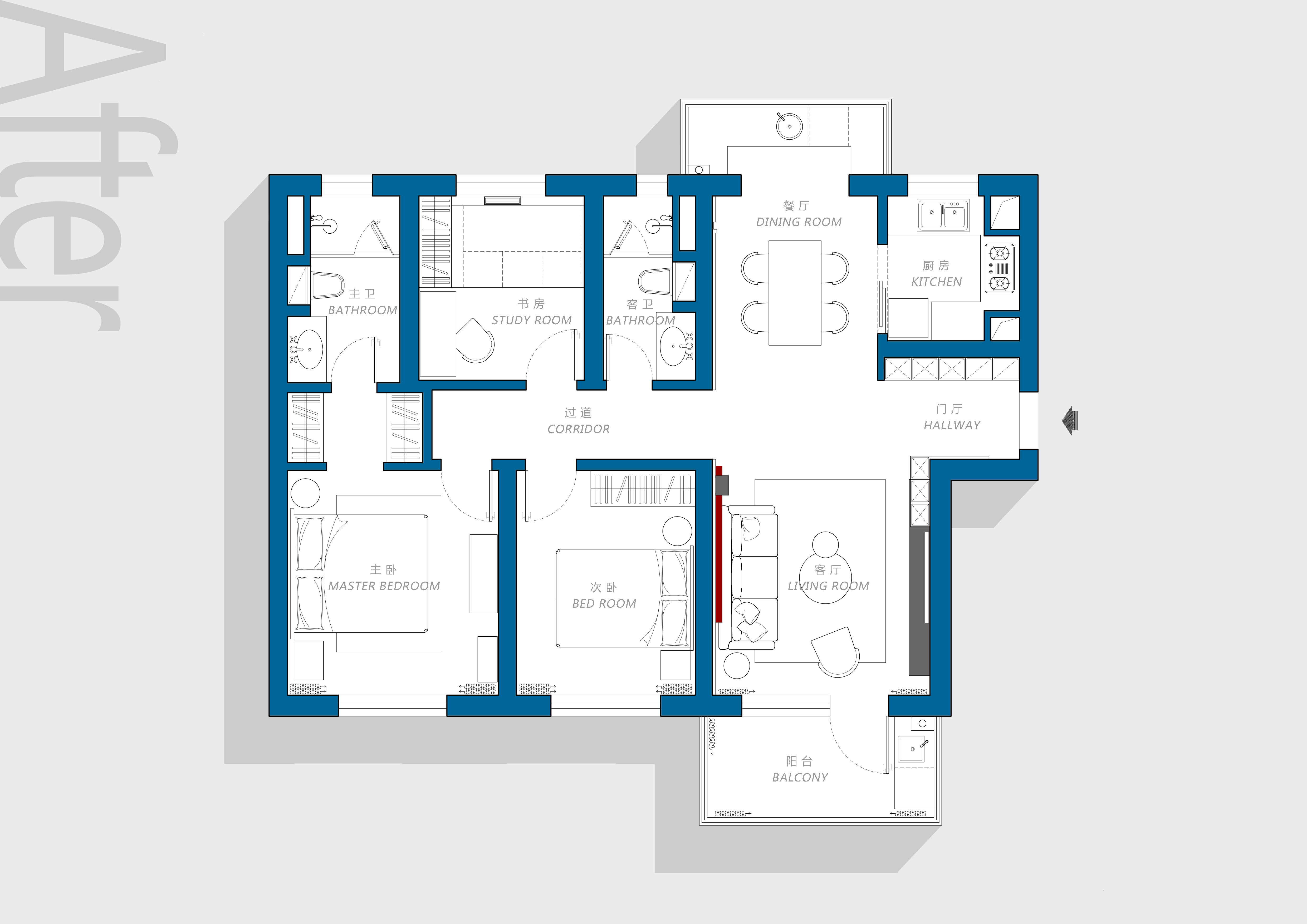 两个业主也是设计专业,大学期间就对包豪斯风格有所了解,2019年又是包豪斯诞生100周年,于是决定用这一主题来带入这次的方案设计。 -