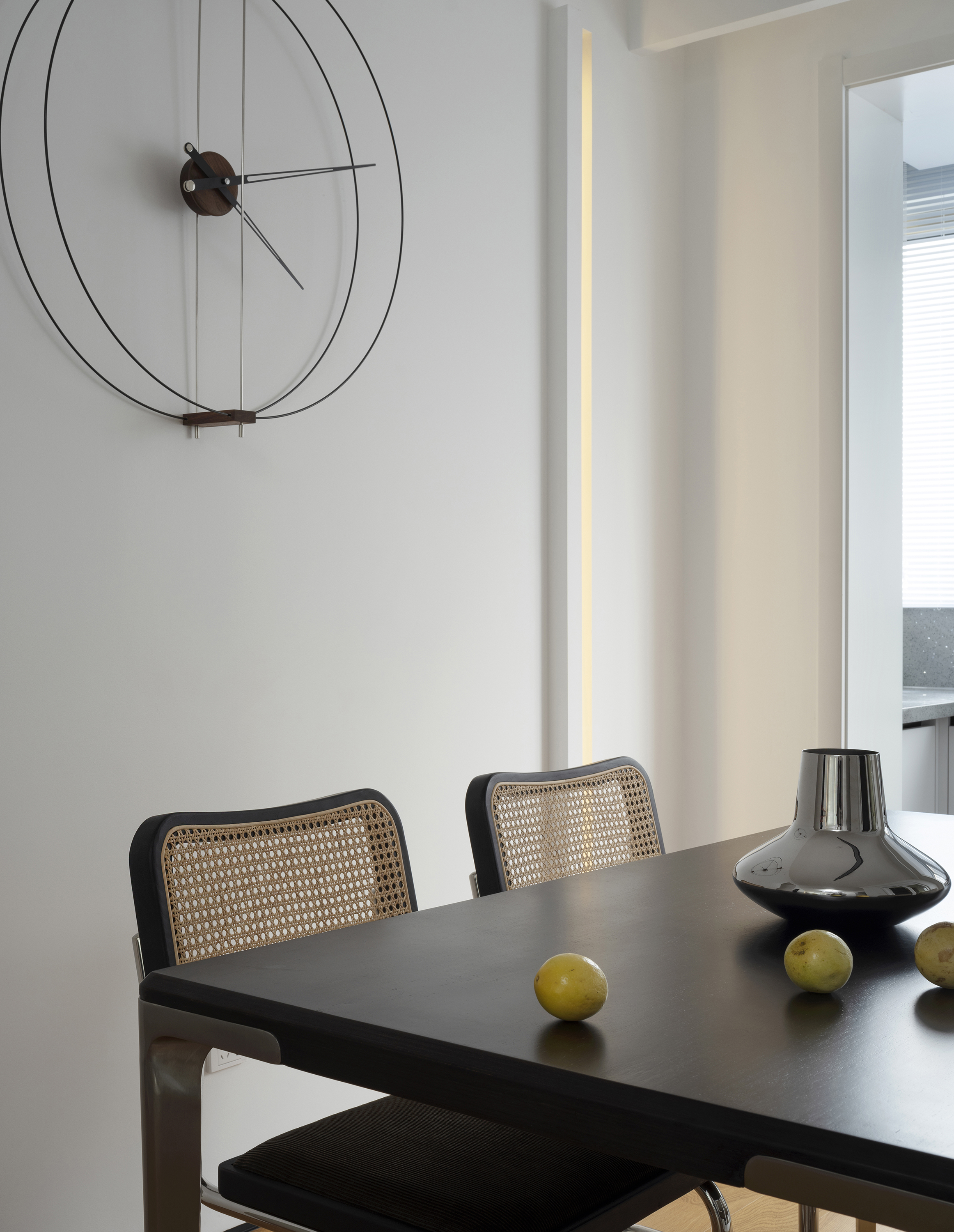 餐厅整体墙面也凸出50mm,墙面也暗藏了LED线性灯。
