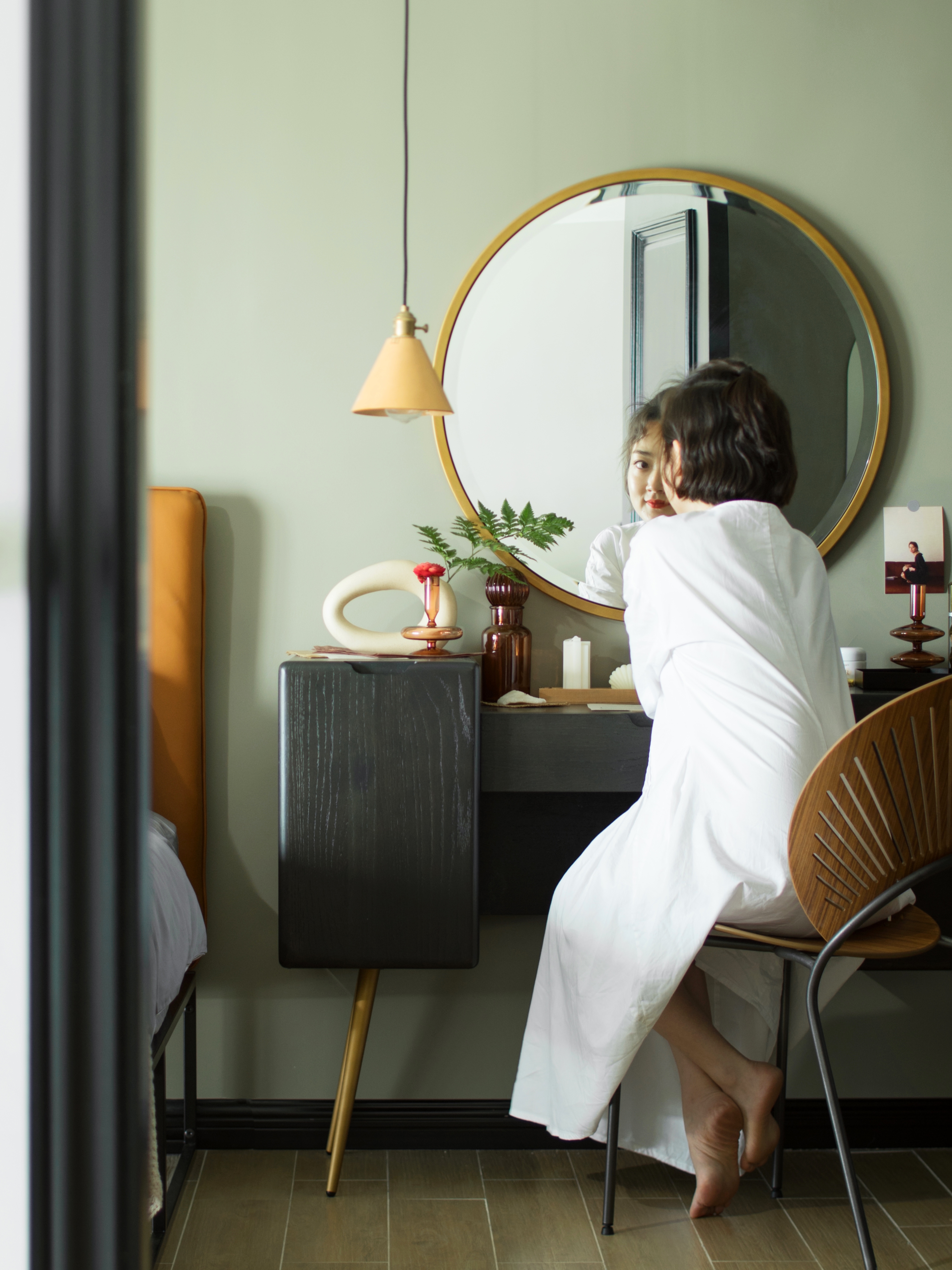 空间意境:本案是我们目前在祖国最南端的一个精装改造纯设计作品。 原地面地砖未改动,卫生间内部未改动。 本着偏轻奢,少许铜件和绒布材质产品,让空间有质感不俗套。在满足日常生活习惯和喜好的前提下,结合季节、光线、外景、预算等因素,力求合理且有个性。在基本不改动原结构的前提下,在视觉上追求最大化和连贯性,还空间于生活。