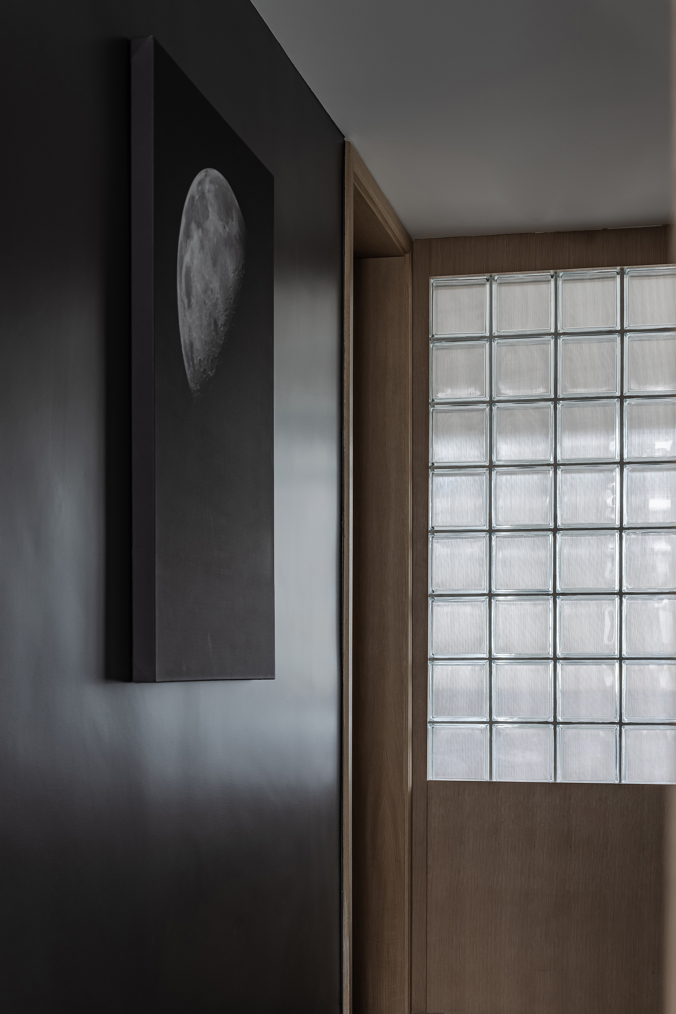 次卧和过道之间的隔墙采用玻璃砖,让光线走进过道。