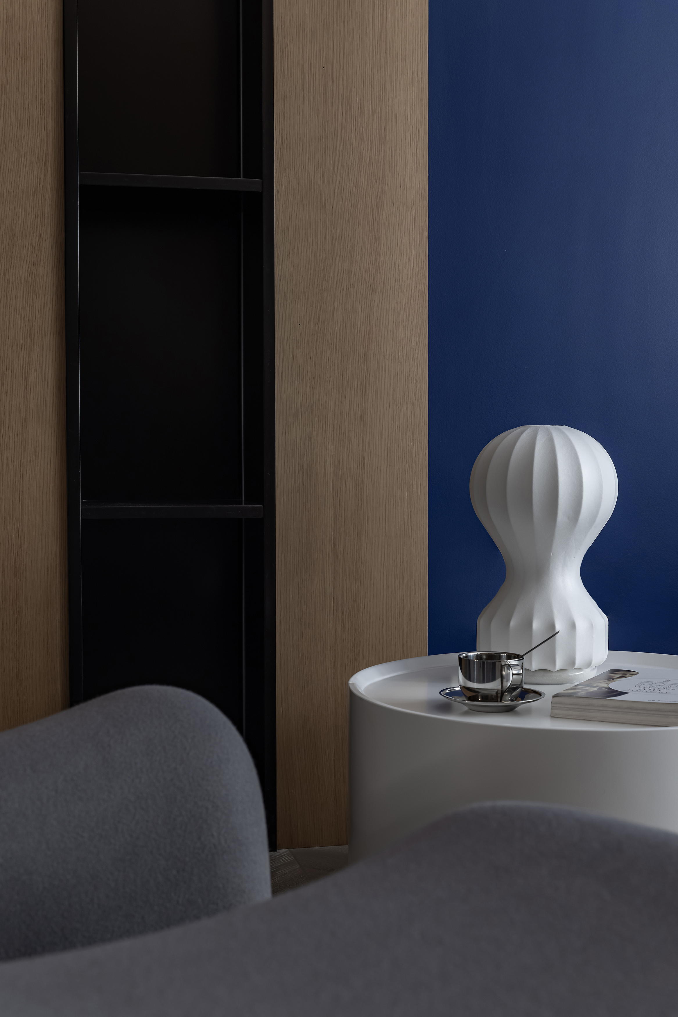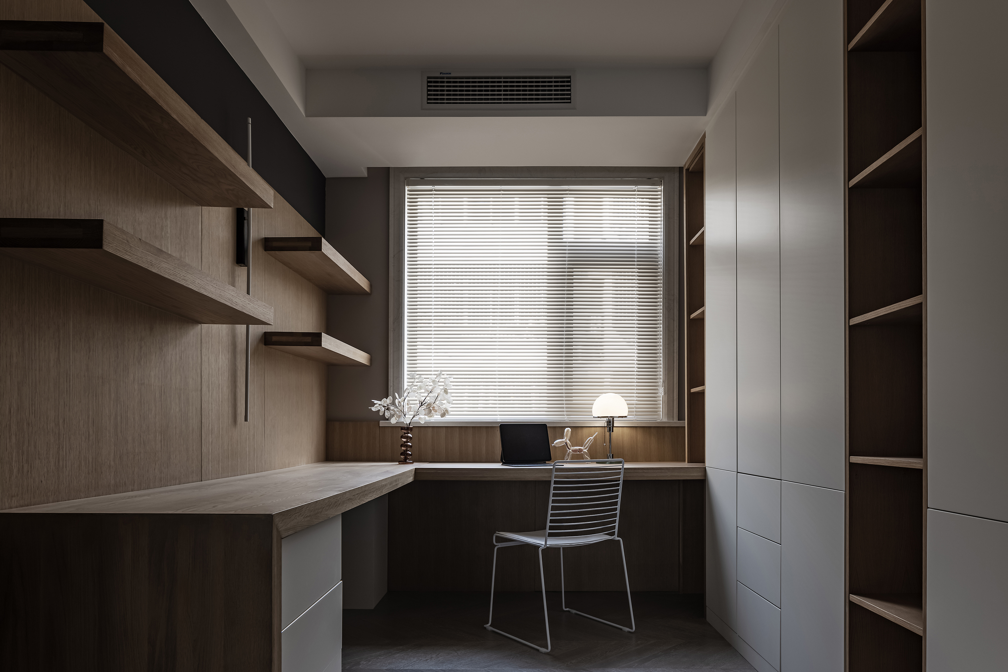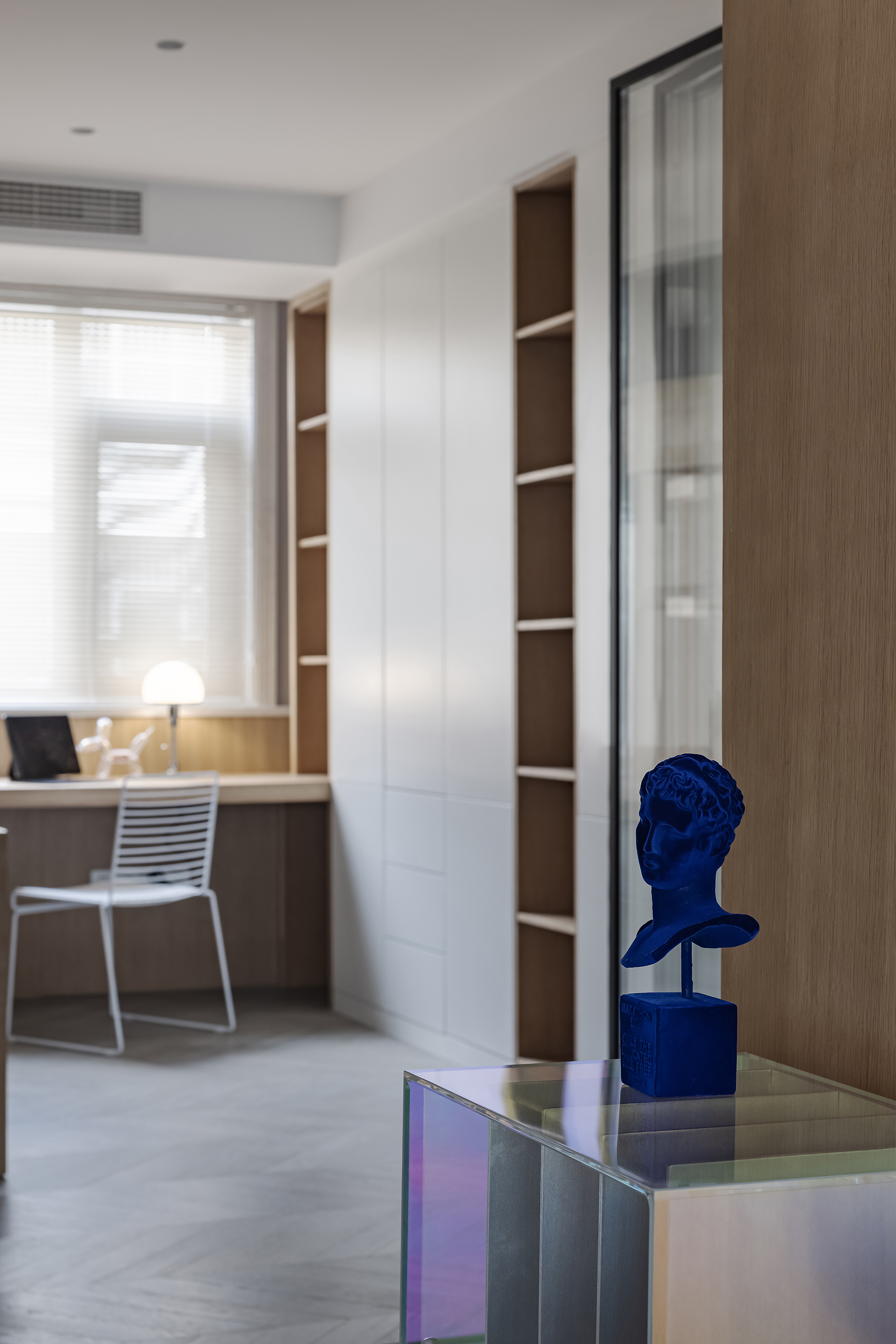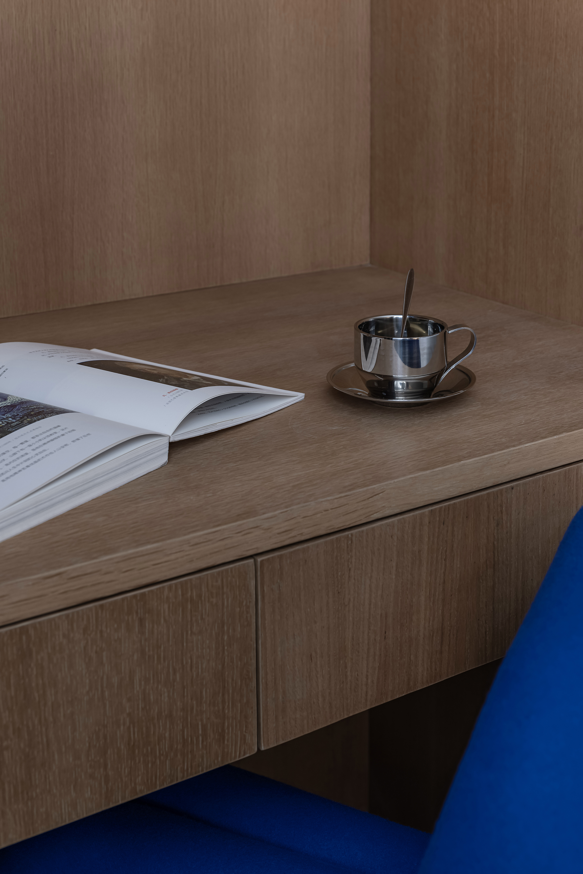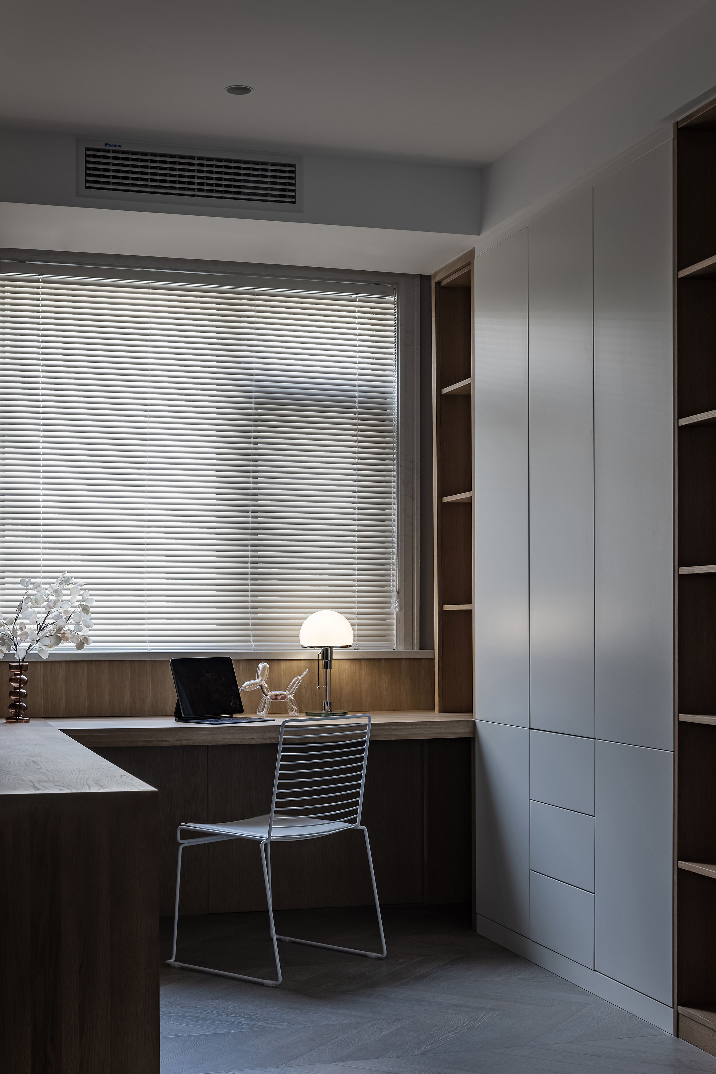 主卧在材质以及色彩上呼应整体,大量柜体解决日常所需储物功能。