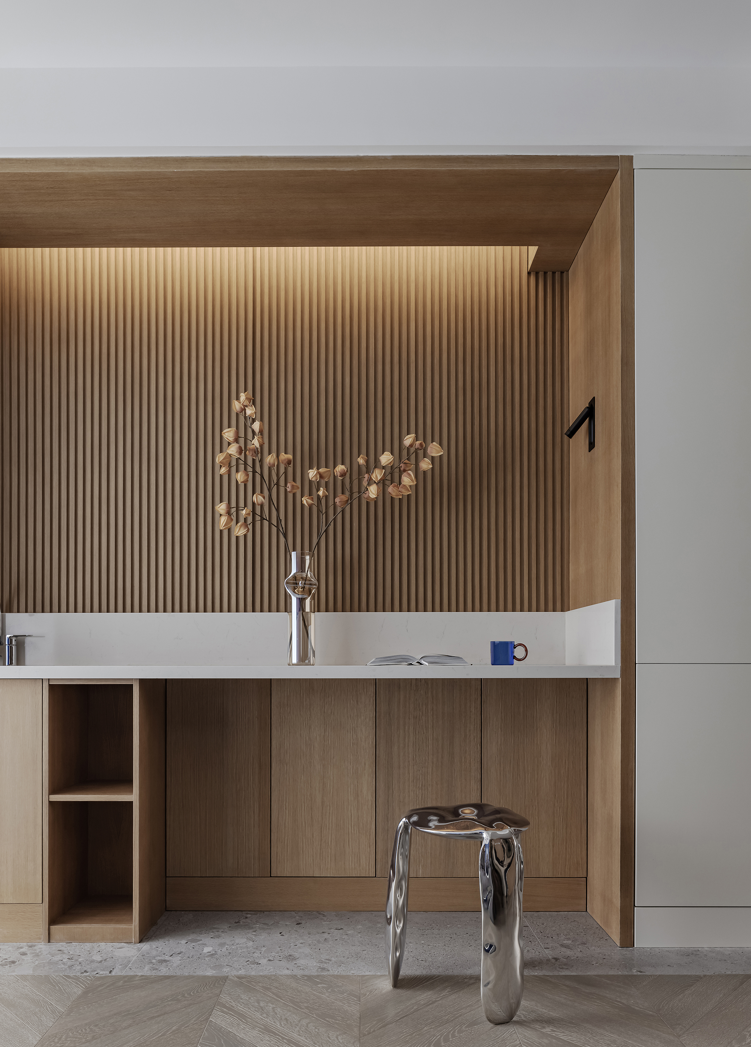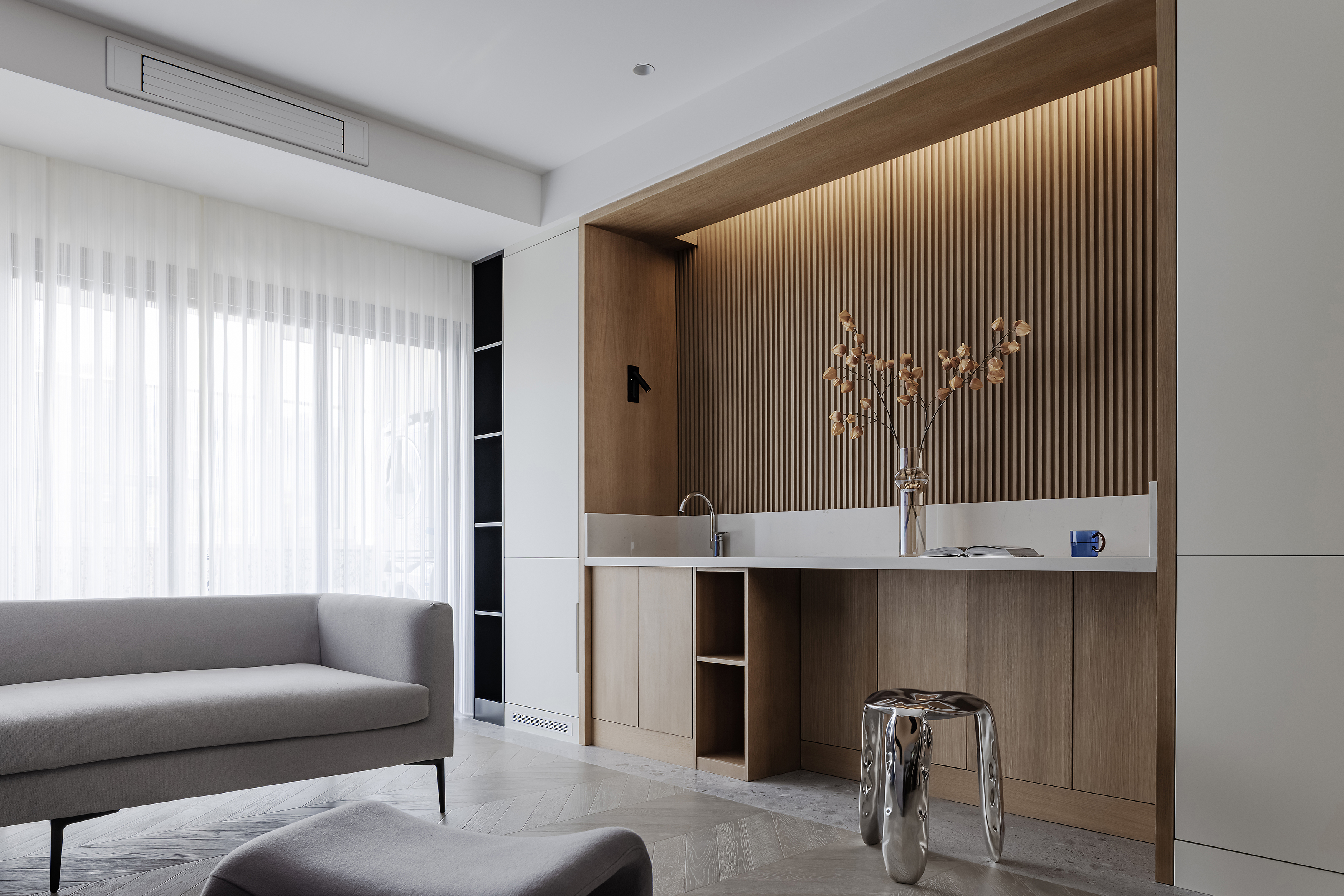 水吧台结合了大量储物功能,物品各有所处,让空间更加整洁美观。