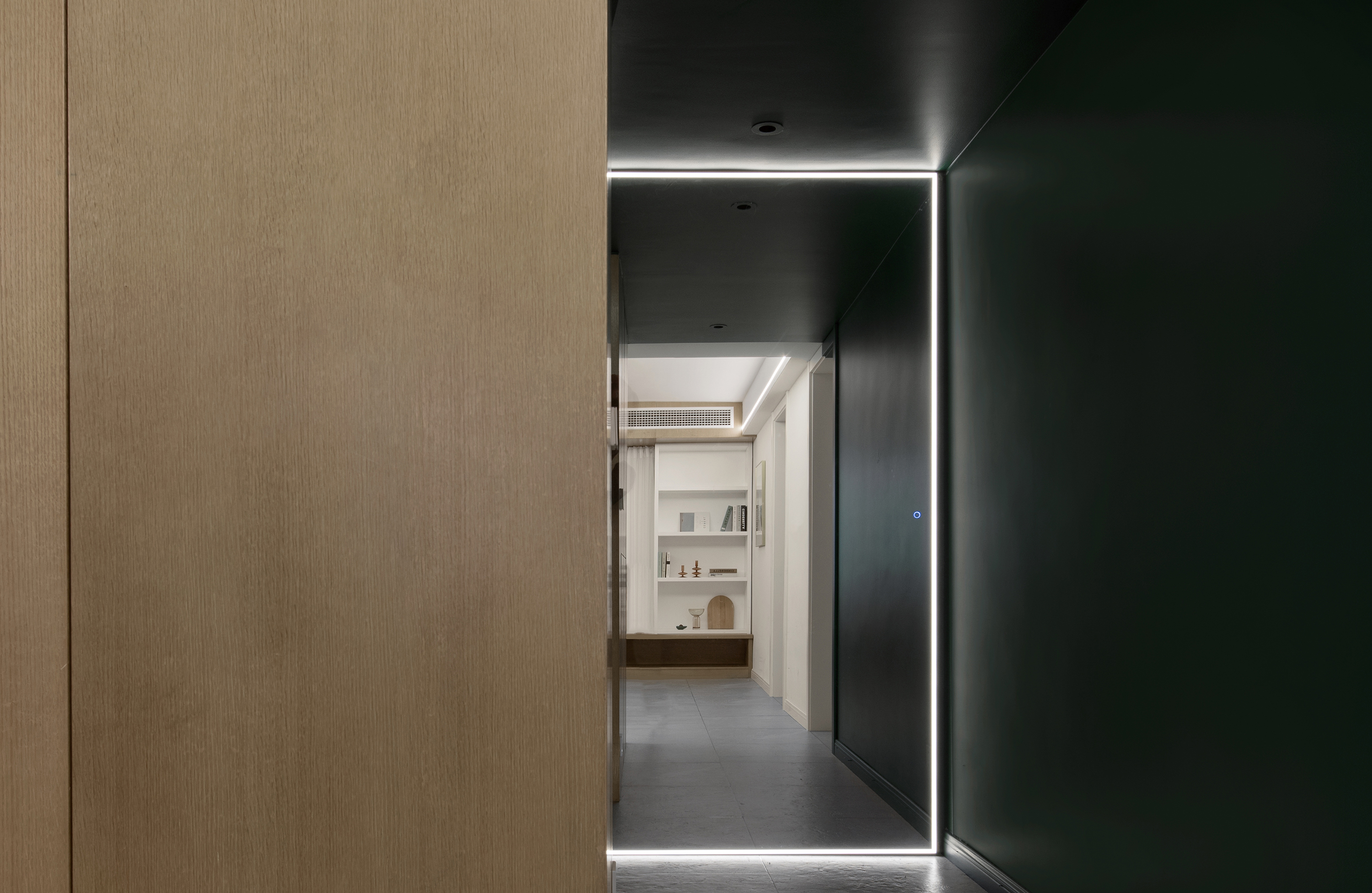 入户侧面墙面定制试衣镜,自带集成进线性光源。