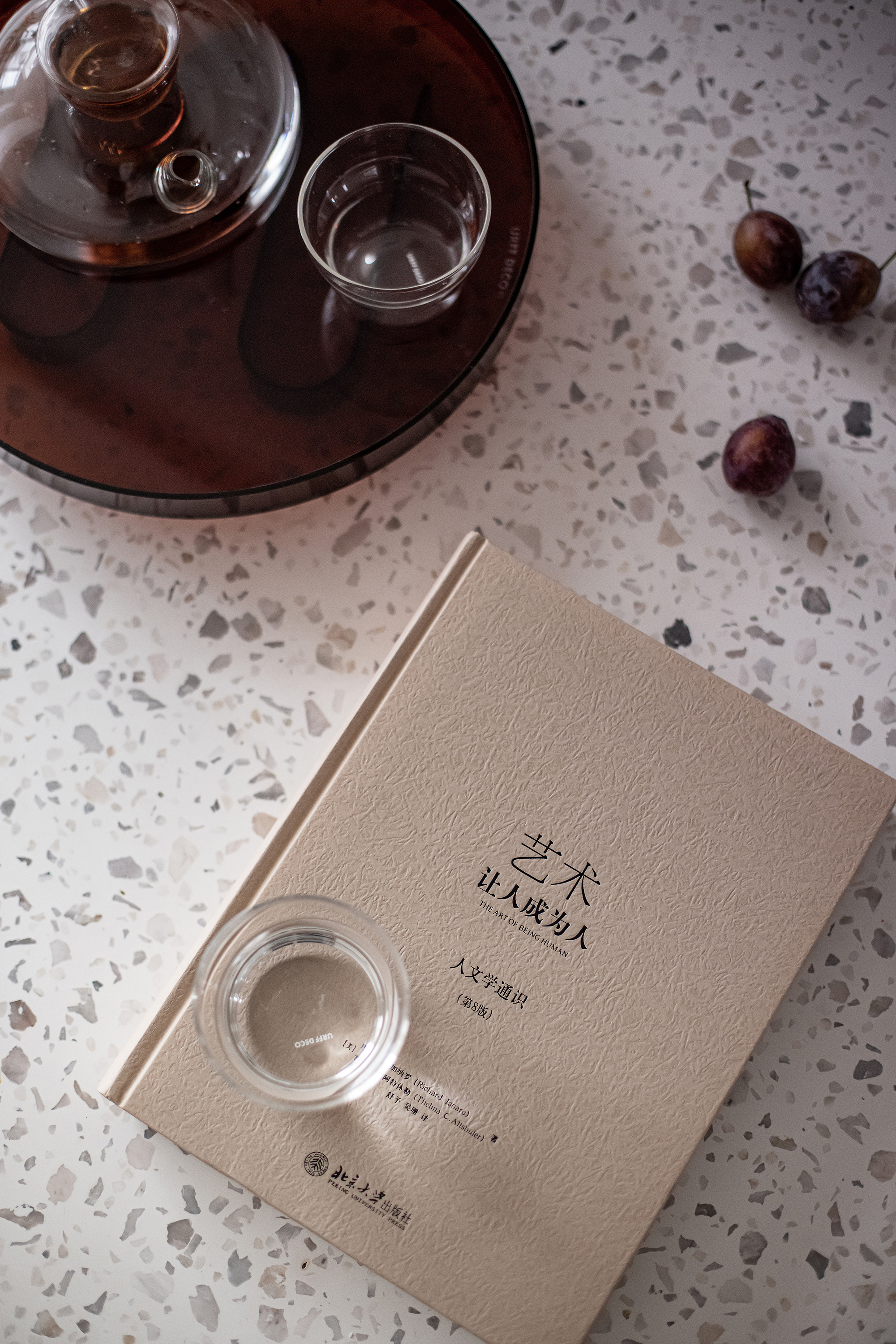 使用原木色三腿水磨石台面茶几,进行硬装与软装的呼应。