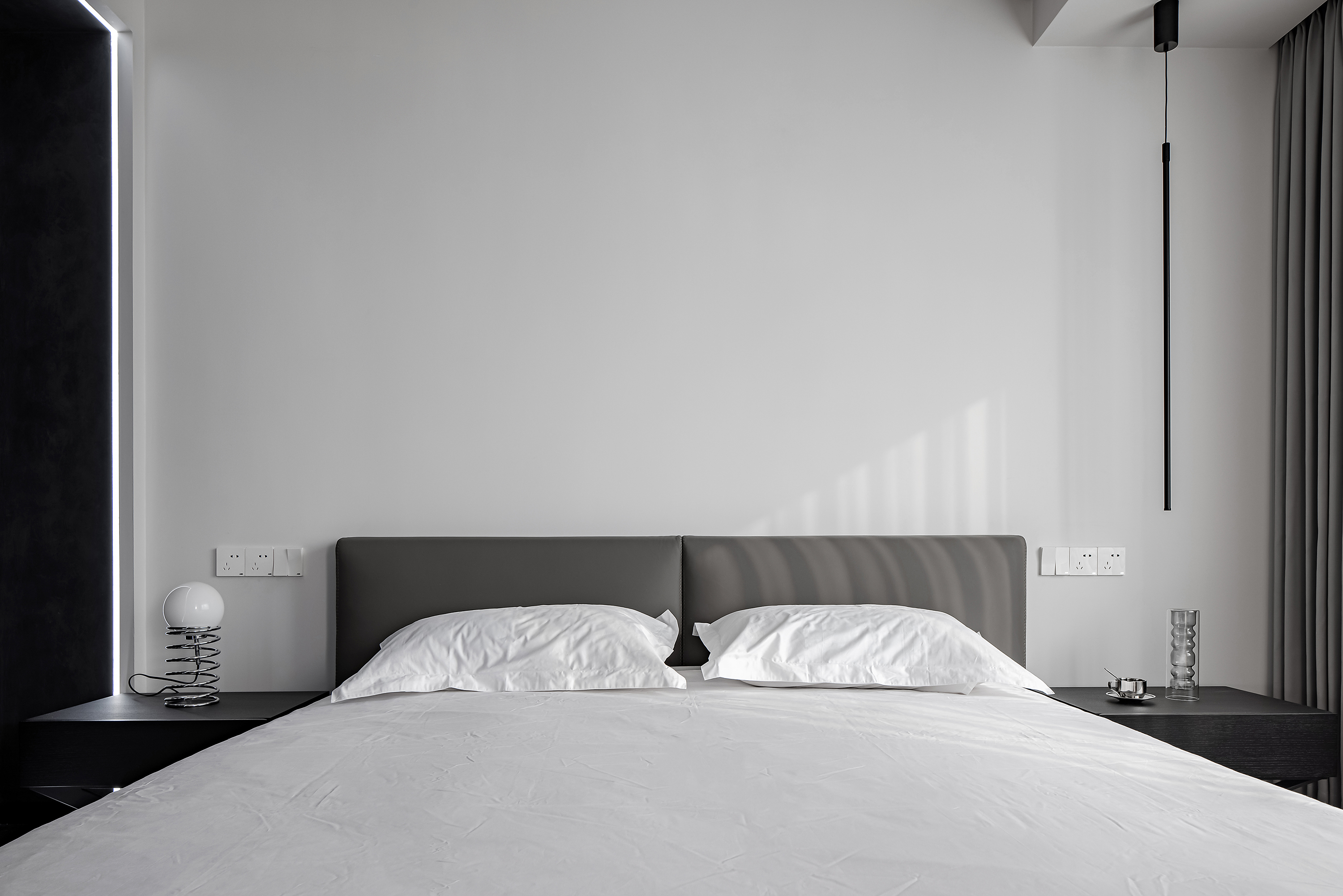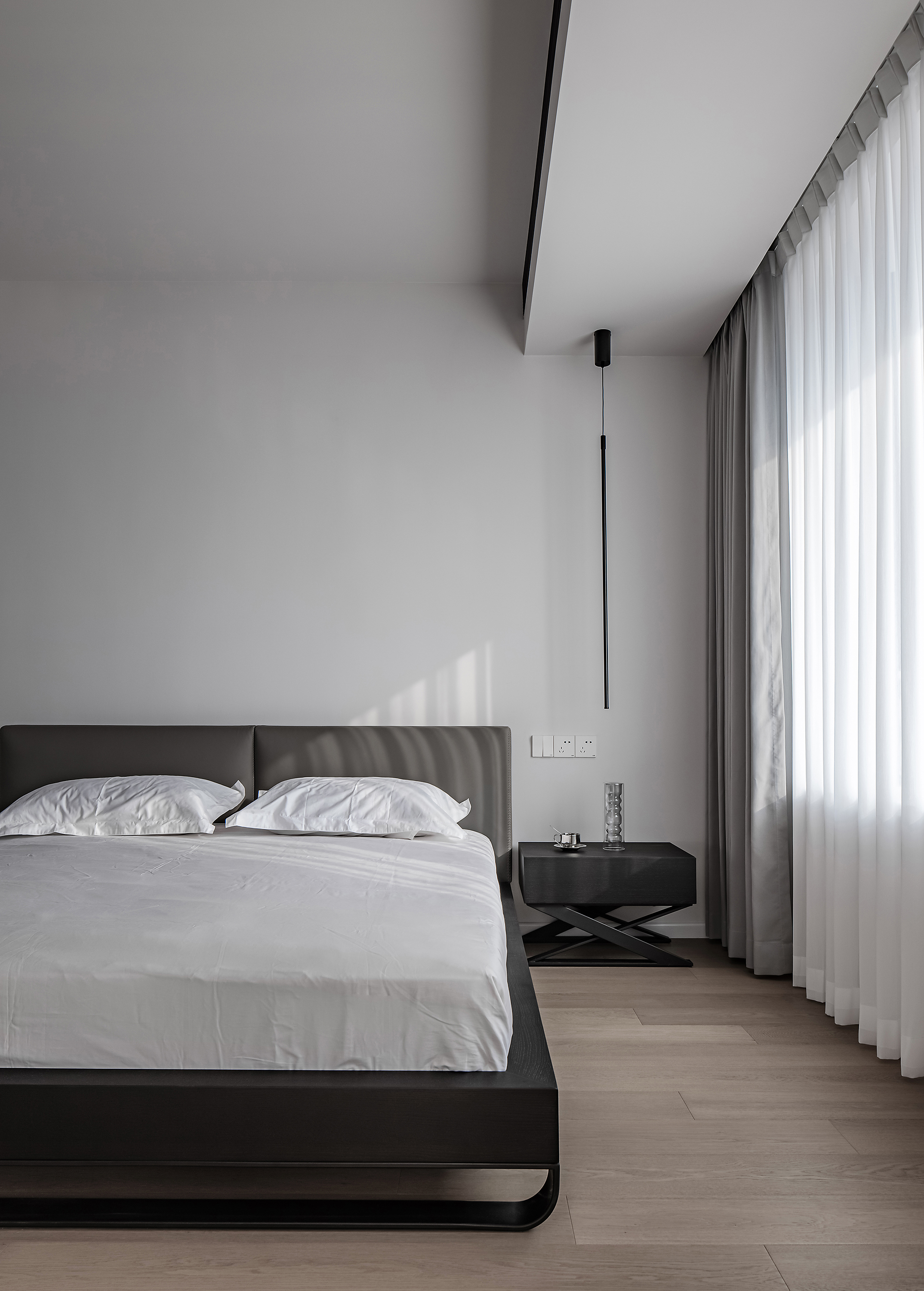主卧区域,无论在家具选型还是色彩控制上都做到克制。