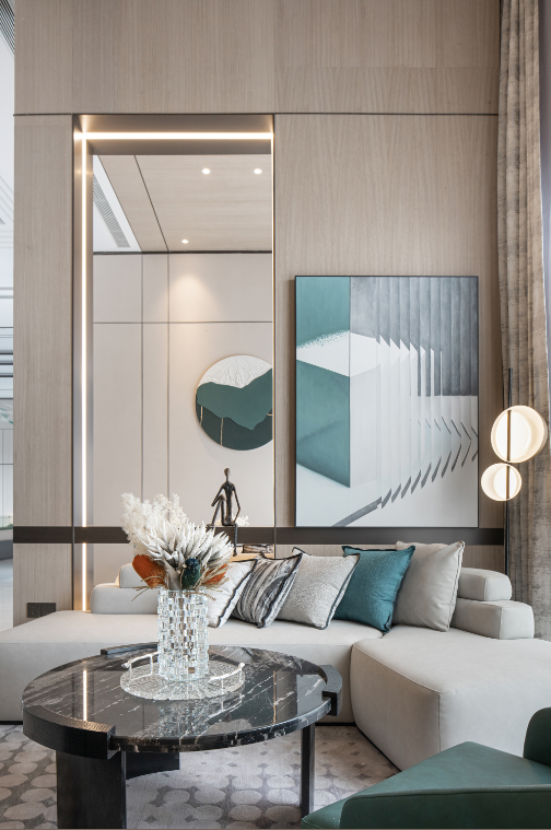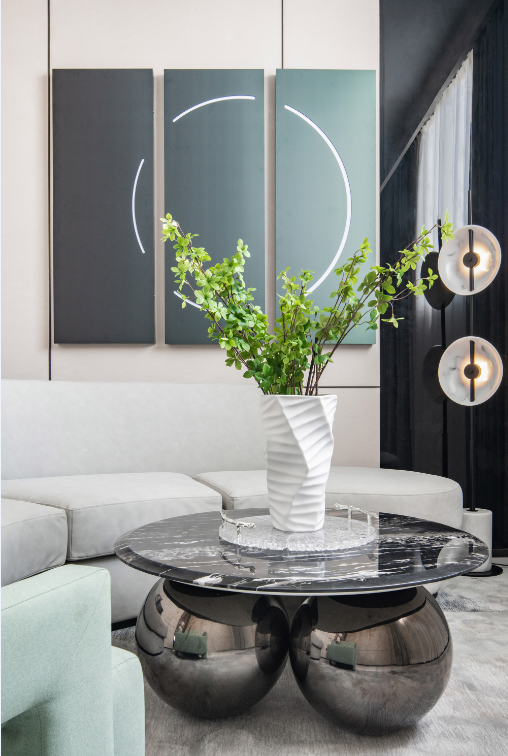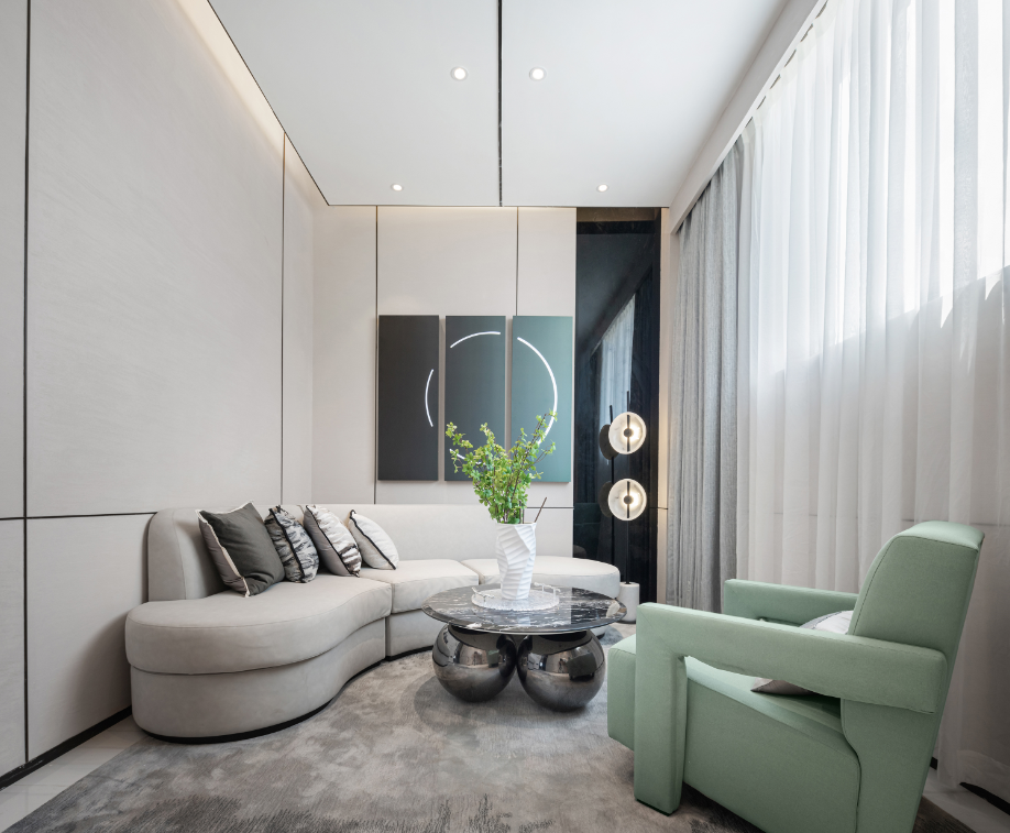 洽谈区 心同流水净,洽谈区传达现代水境的质感,润泽而通透。