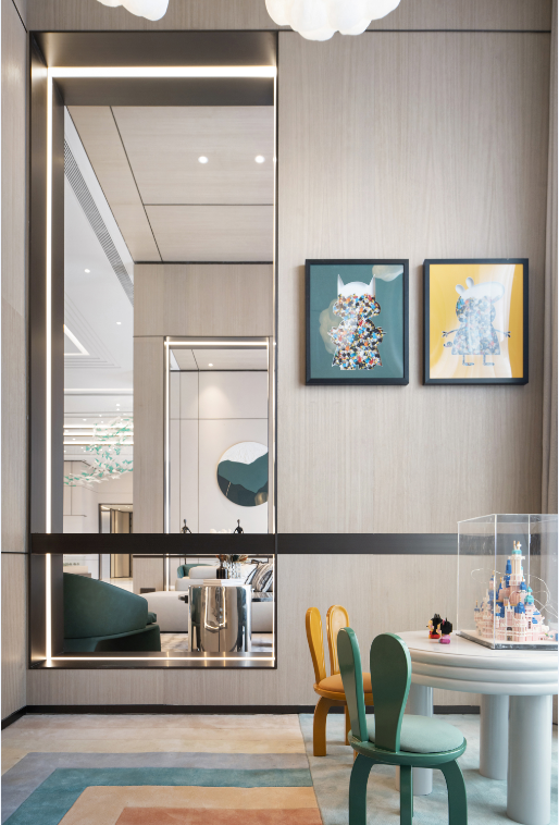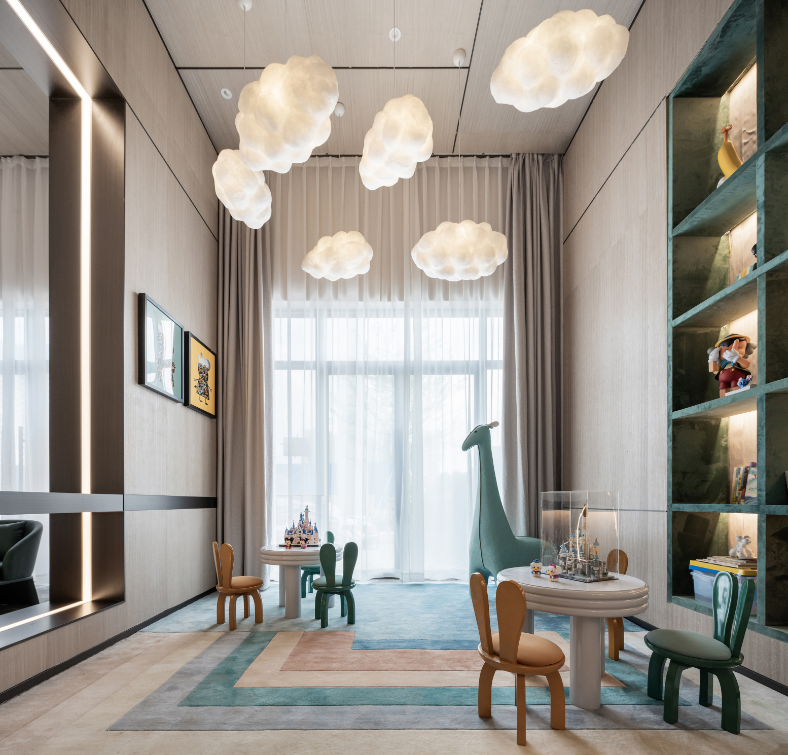 儿童区云形灯饰写尽童趣,在云端之.上,折射出空间的无限维度,以充满梦幻的视觉盛宴,共同创造轻快、舒展与喜悦的美好氛围。