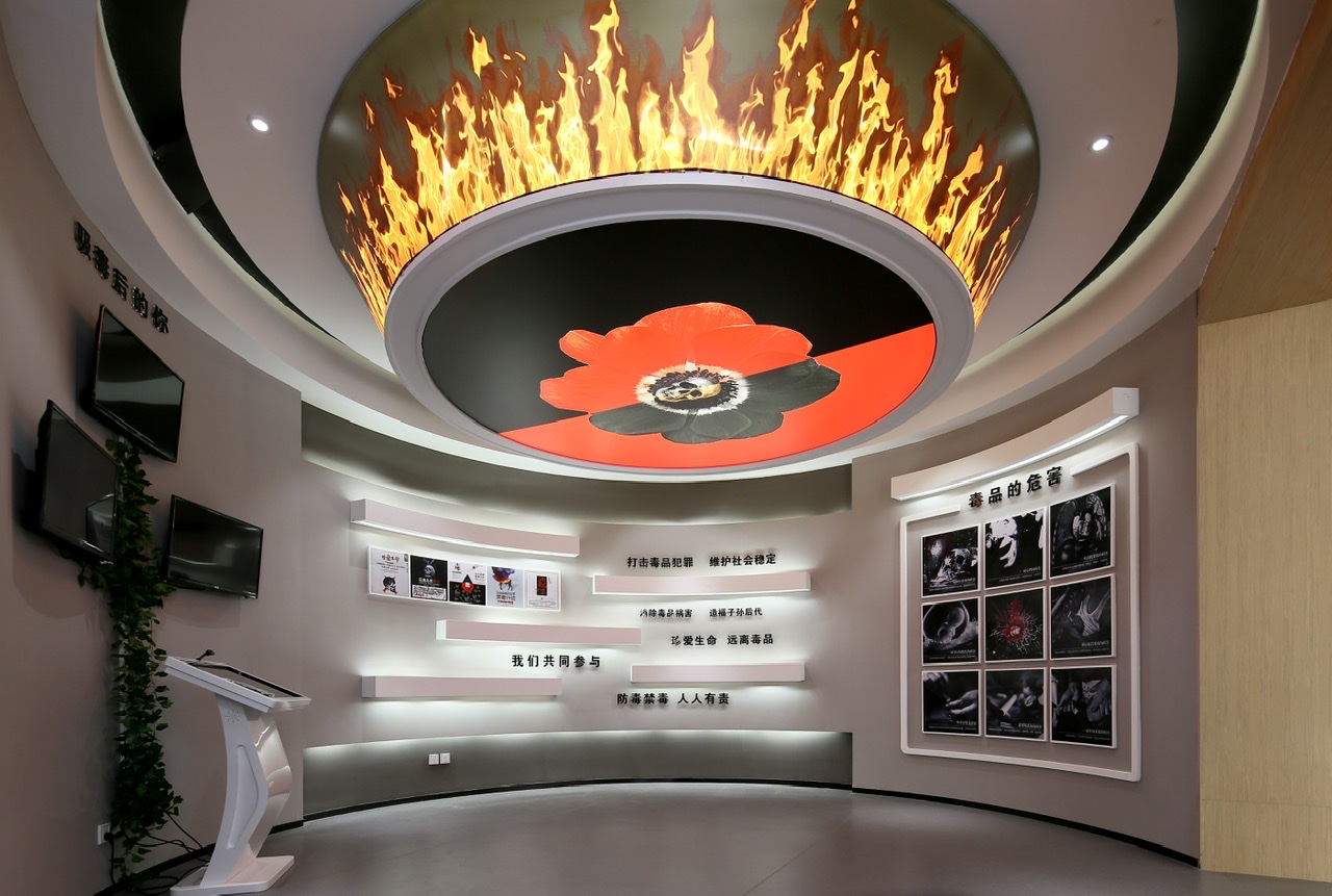 空间布局:根据毒品对人的危害,有身临其境的感觉。需要通过空间的合理变化,让参观者的行走动线既流畅,又能驻足接受教育。
