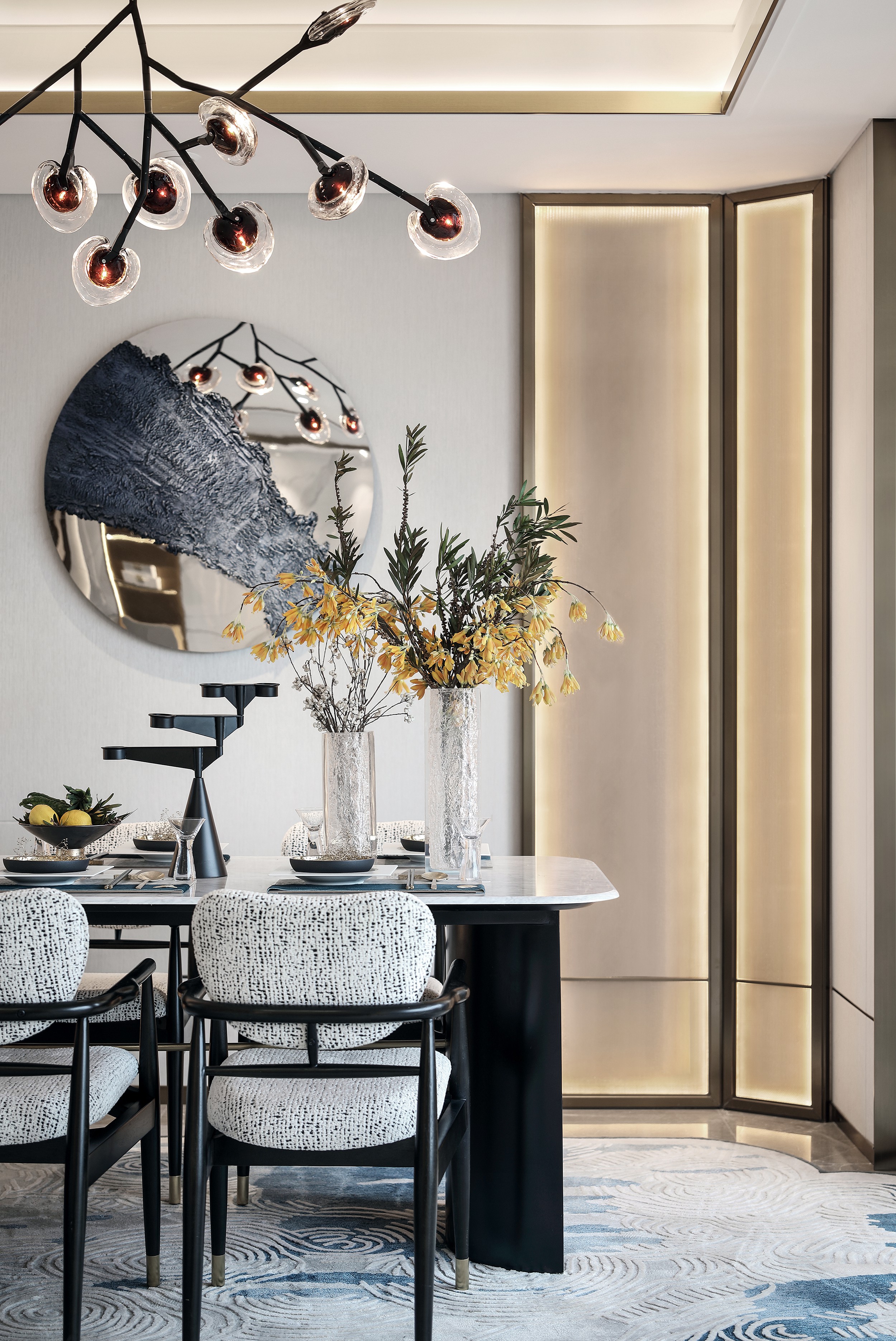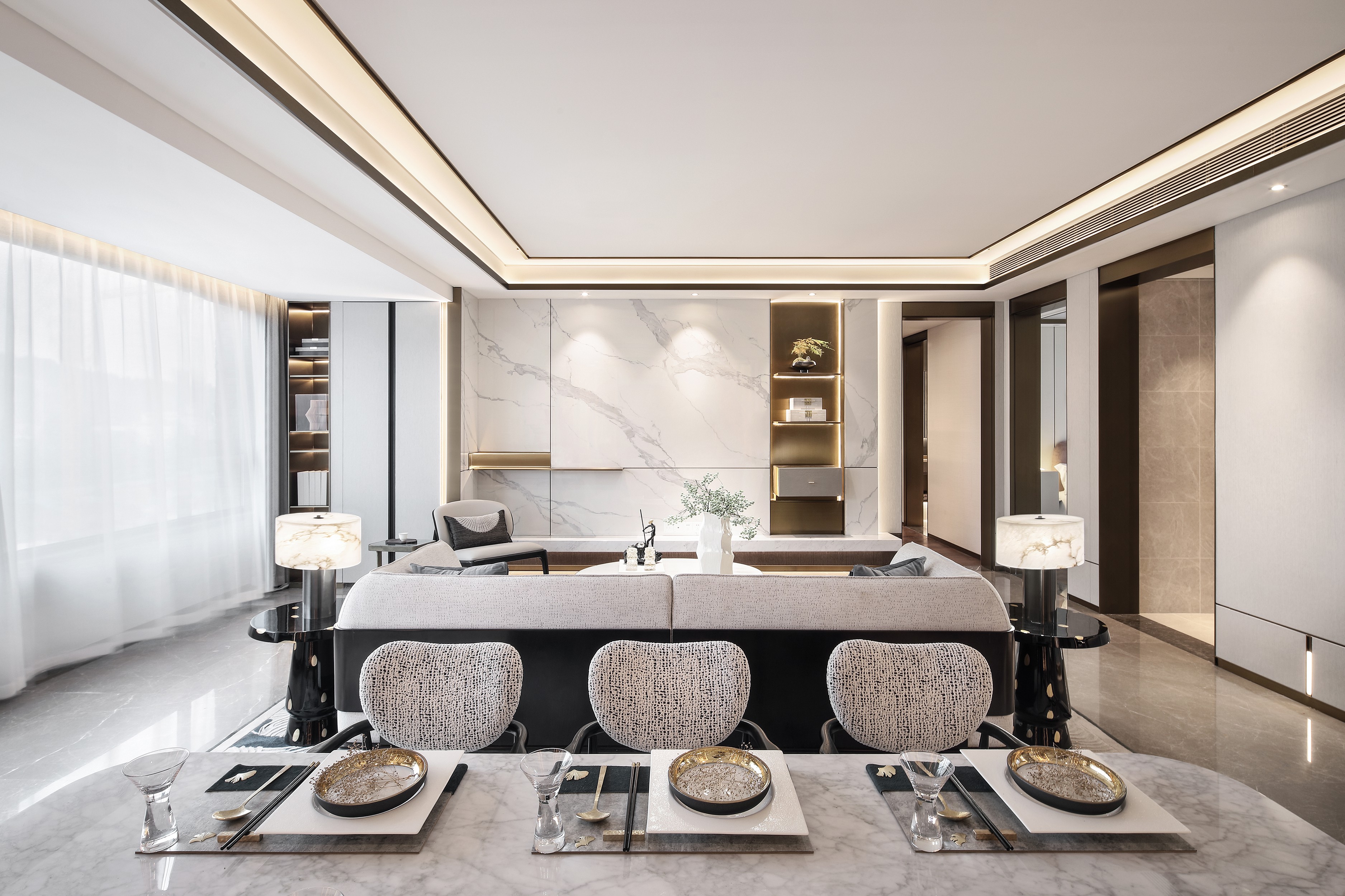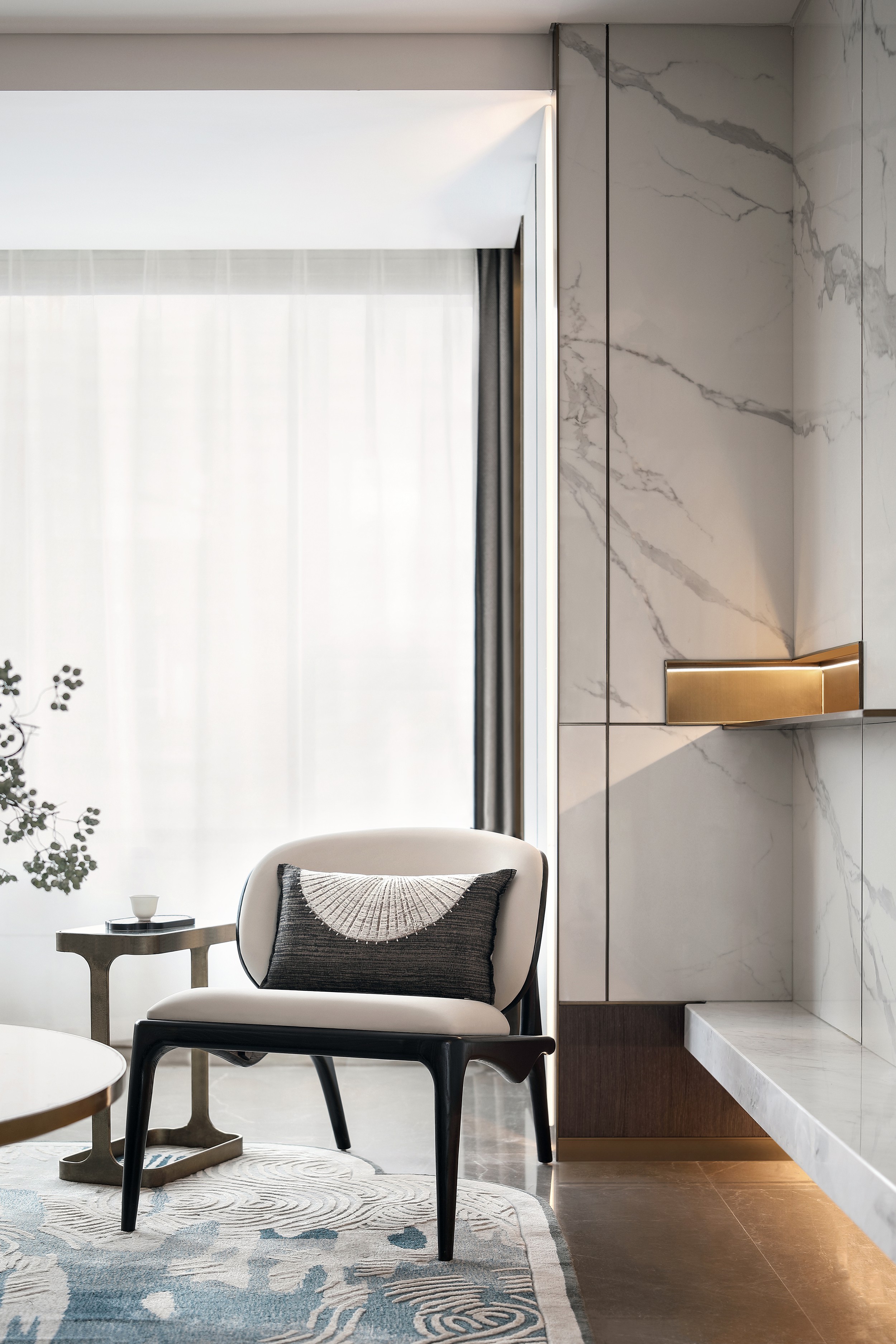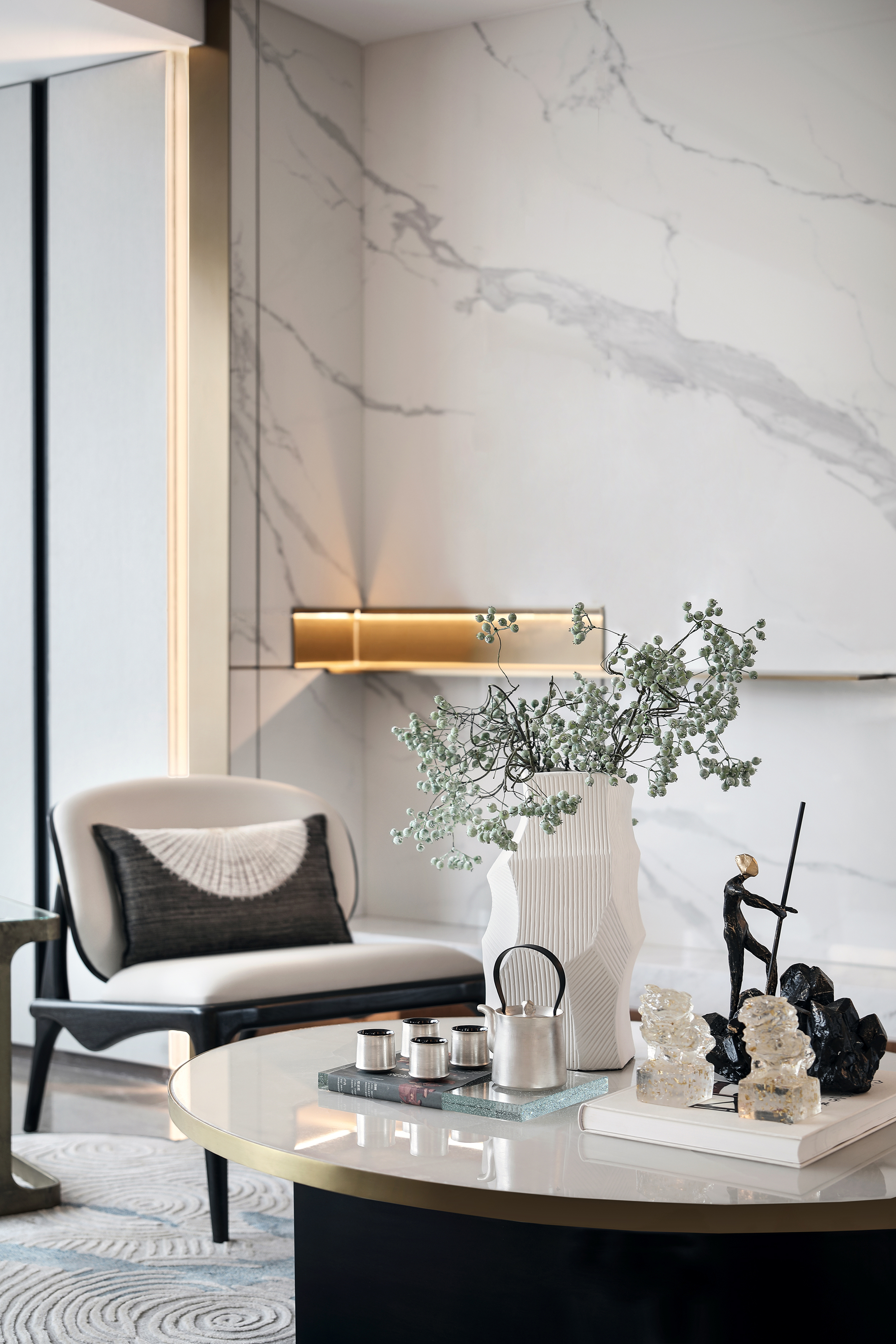 水墨晕染的舒缓沁透,大理石饰面的清硬冷萃,于矛盾中叠搭,和合静美。