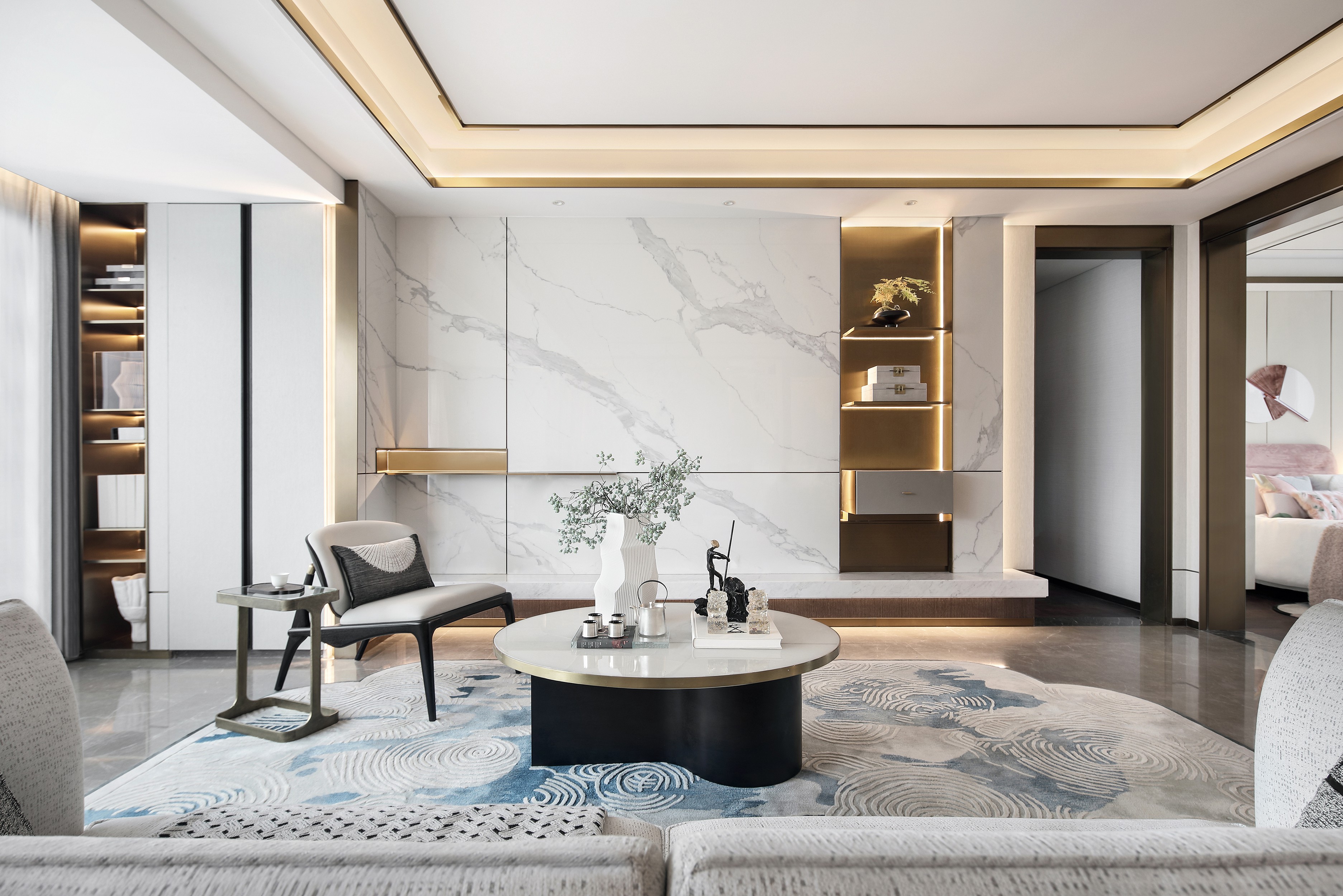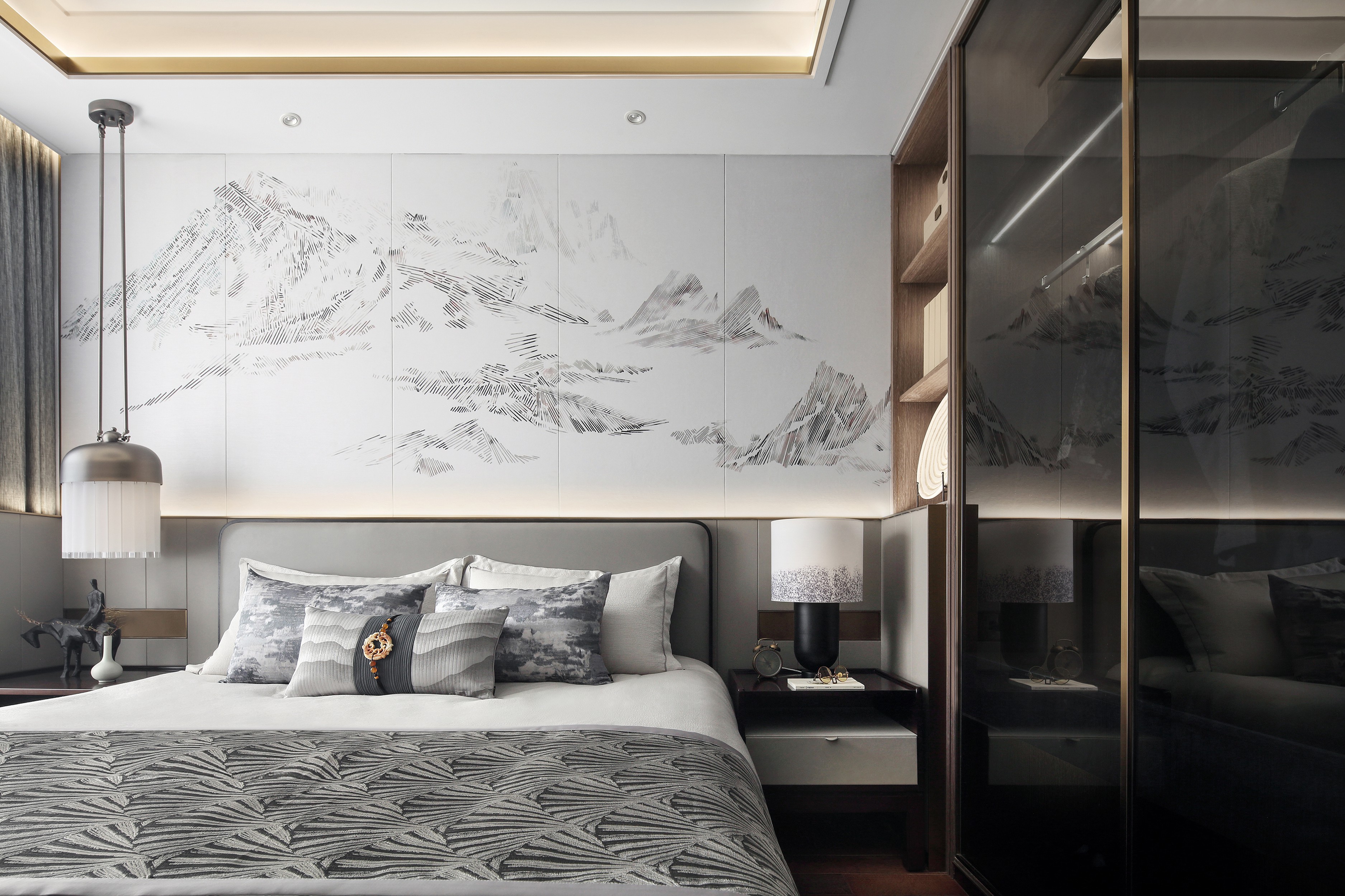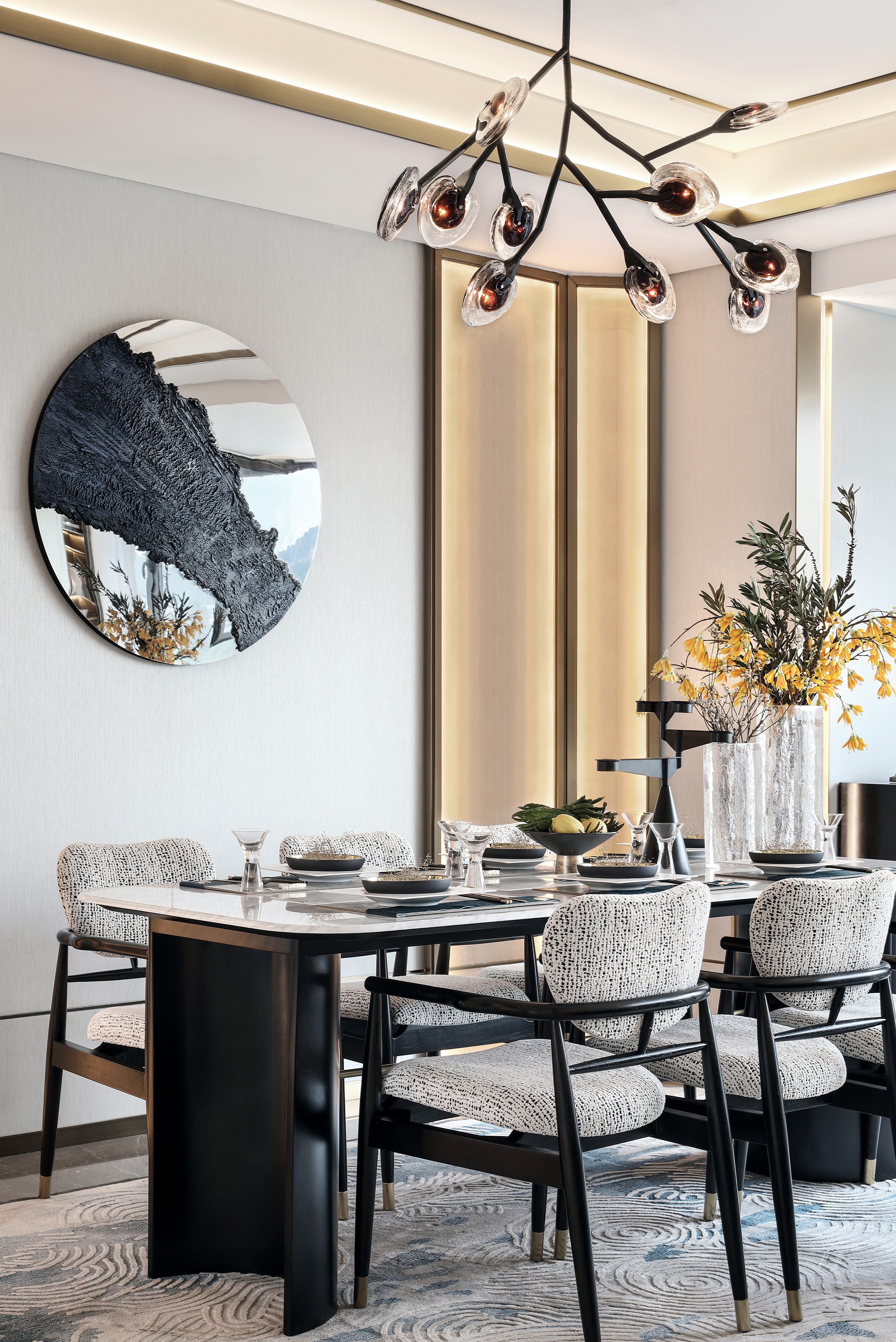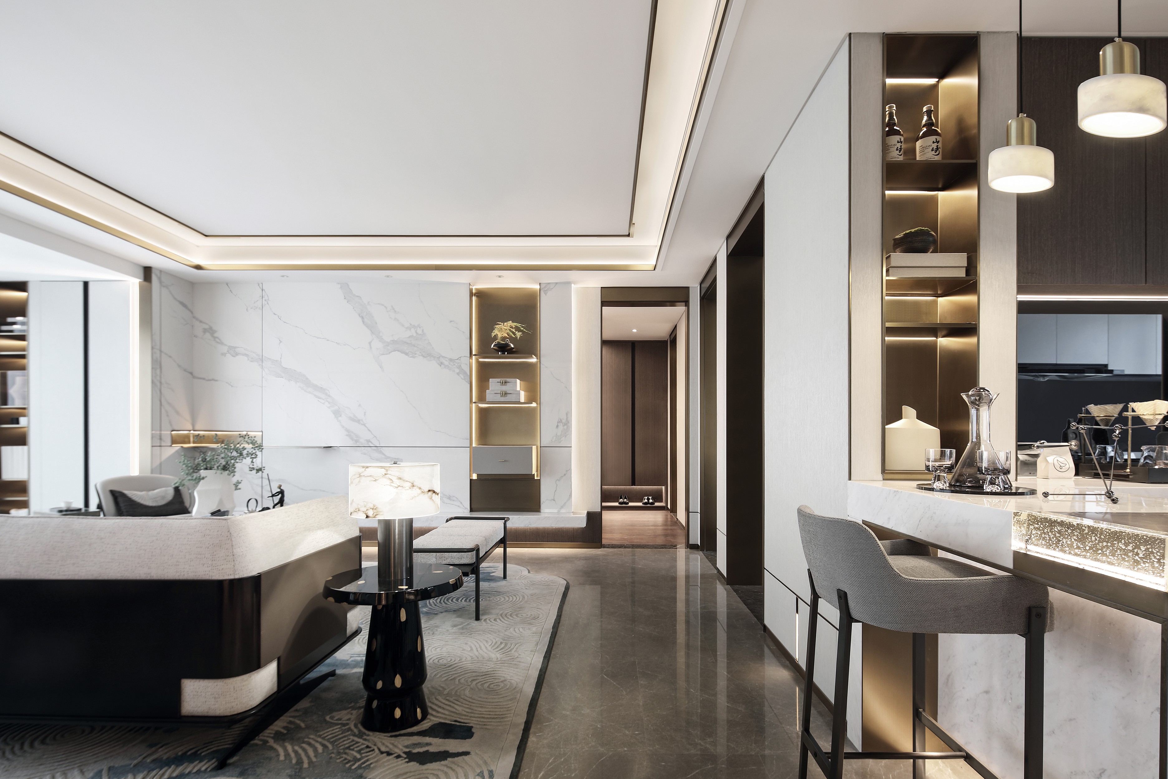 水墨晕染的舒缓沁透,大理石饰面的清硬冷萃,于矛盾中叠搭,和合静美。