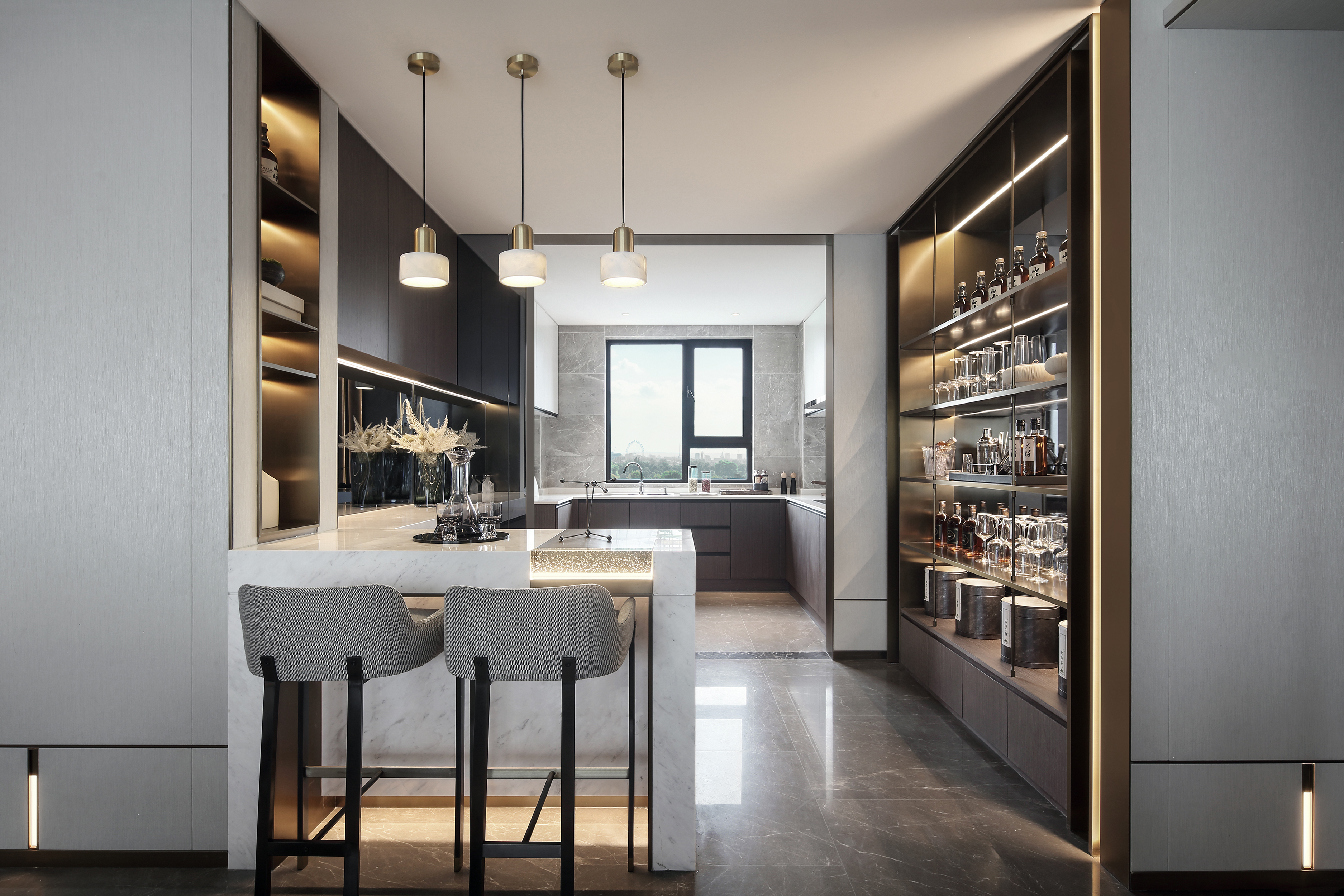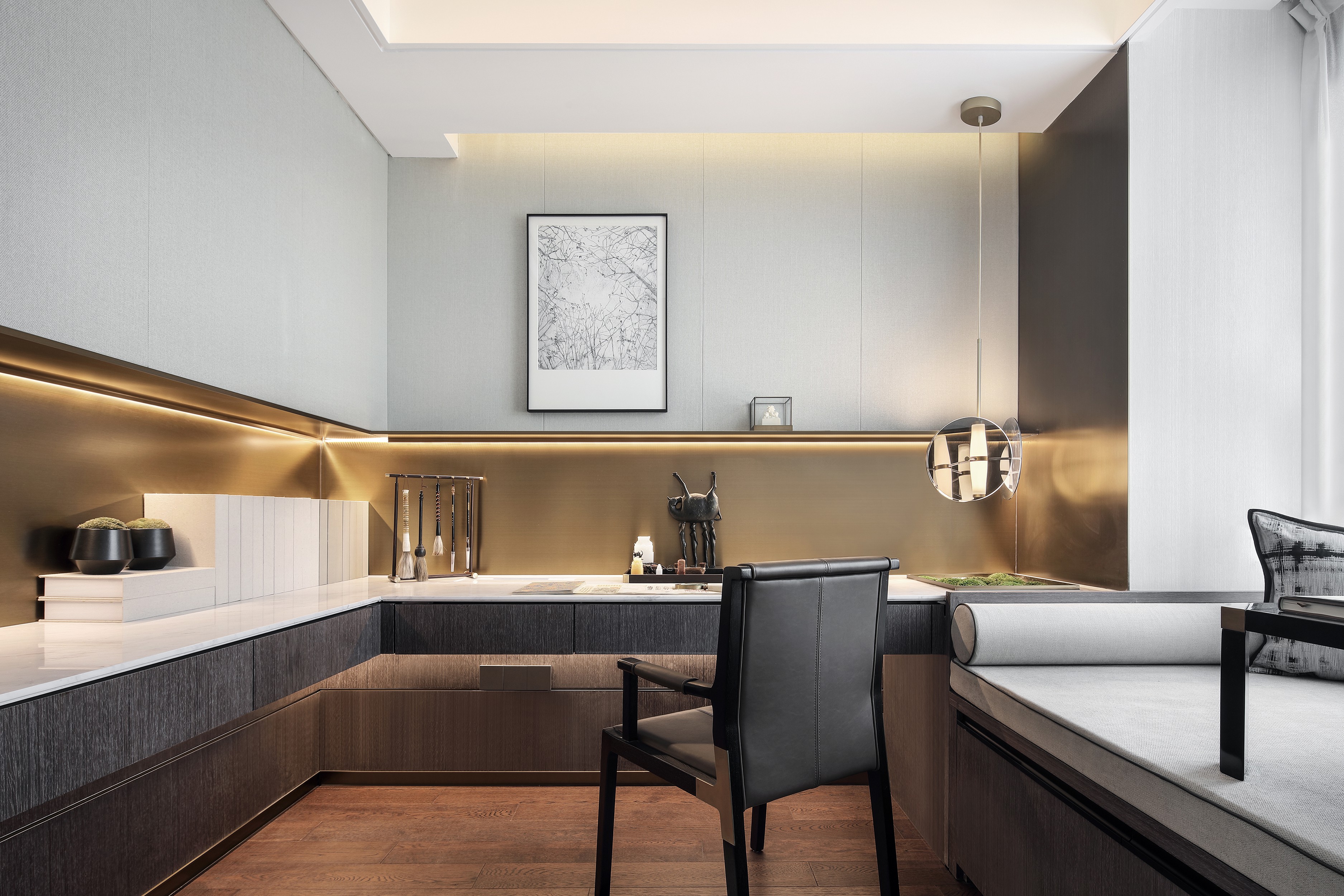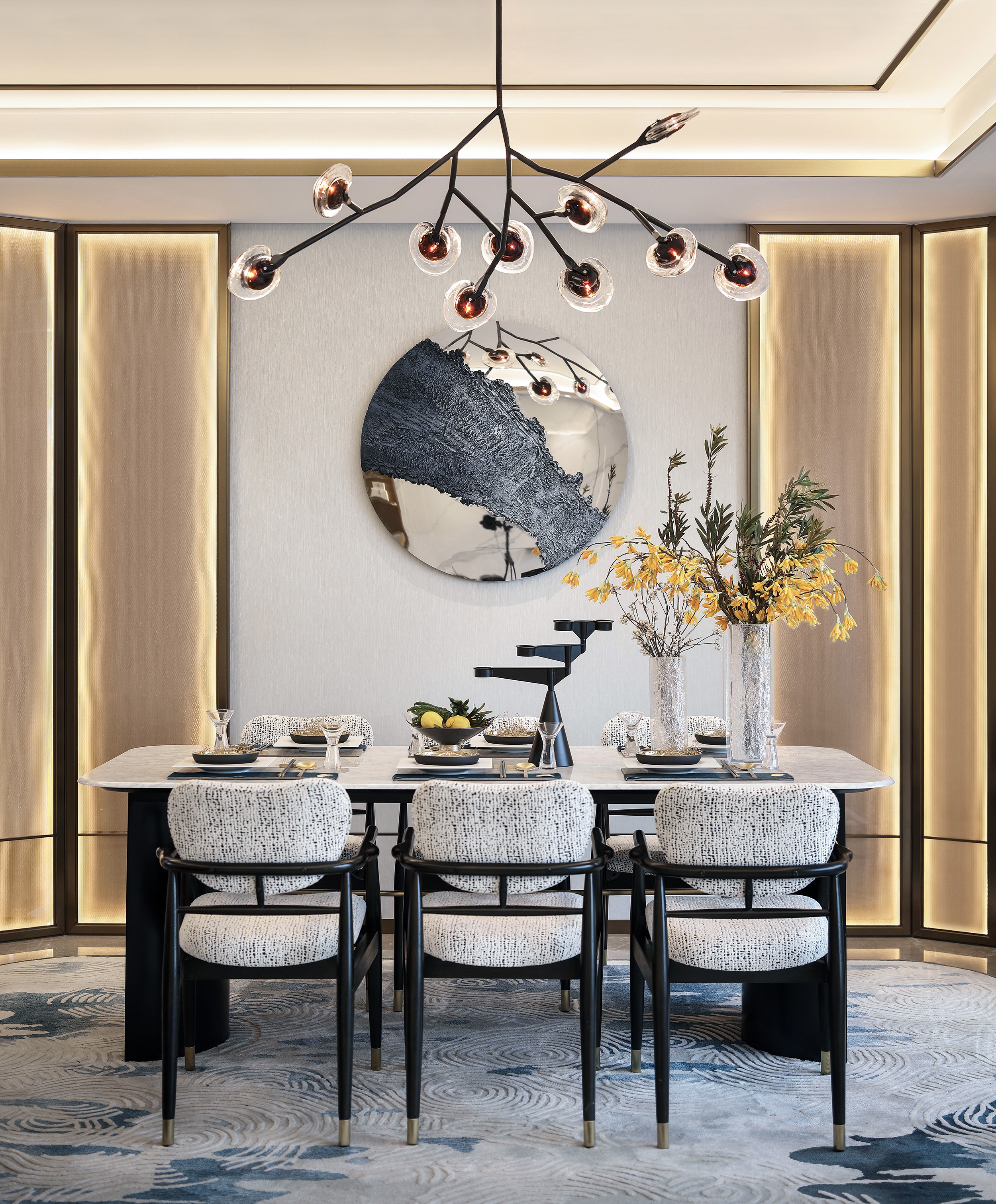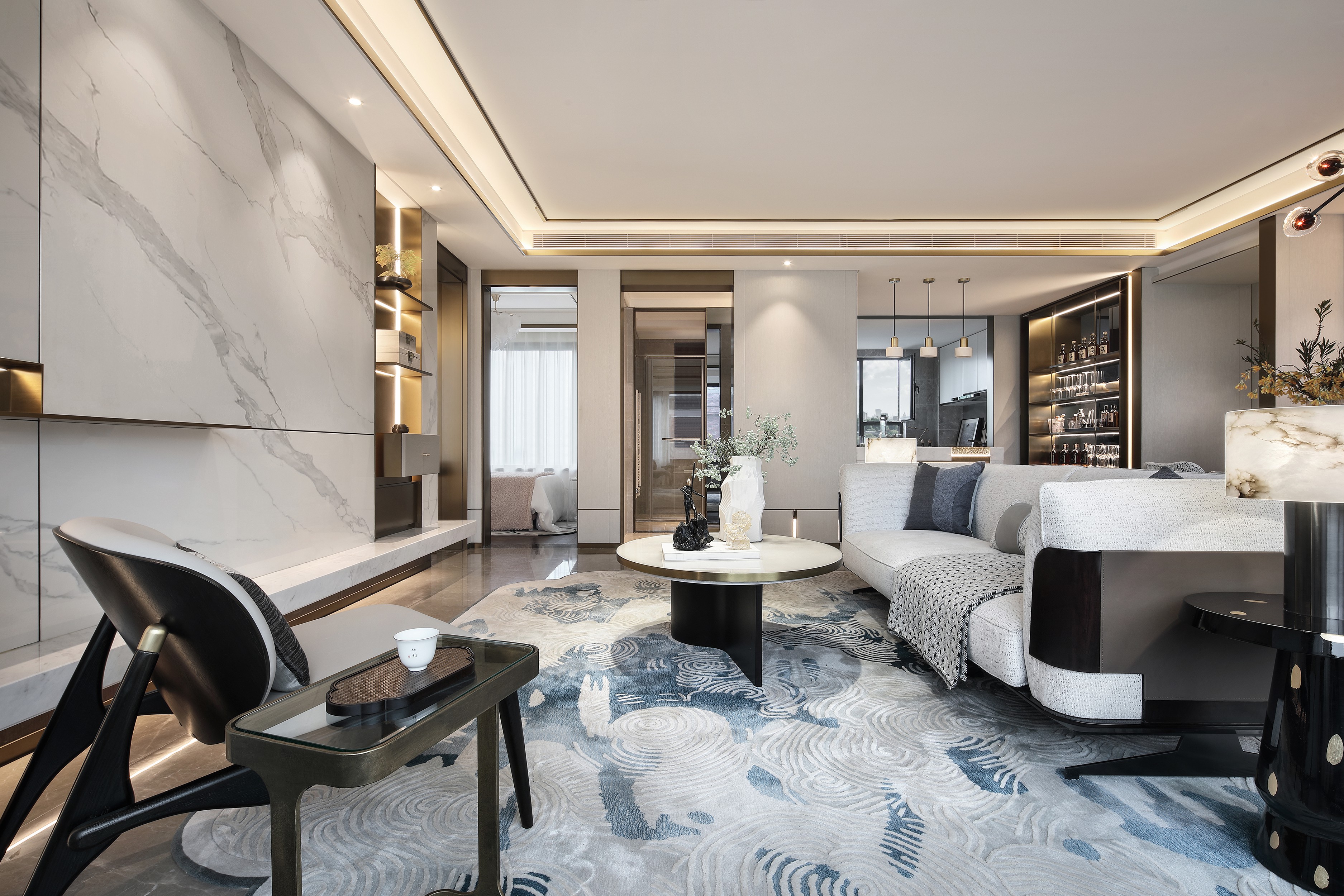 水墨晕染的舒缓沁透,大理石饰面的清硬冷萃,于矛盾中叠搭,和合静美。