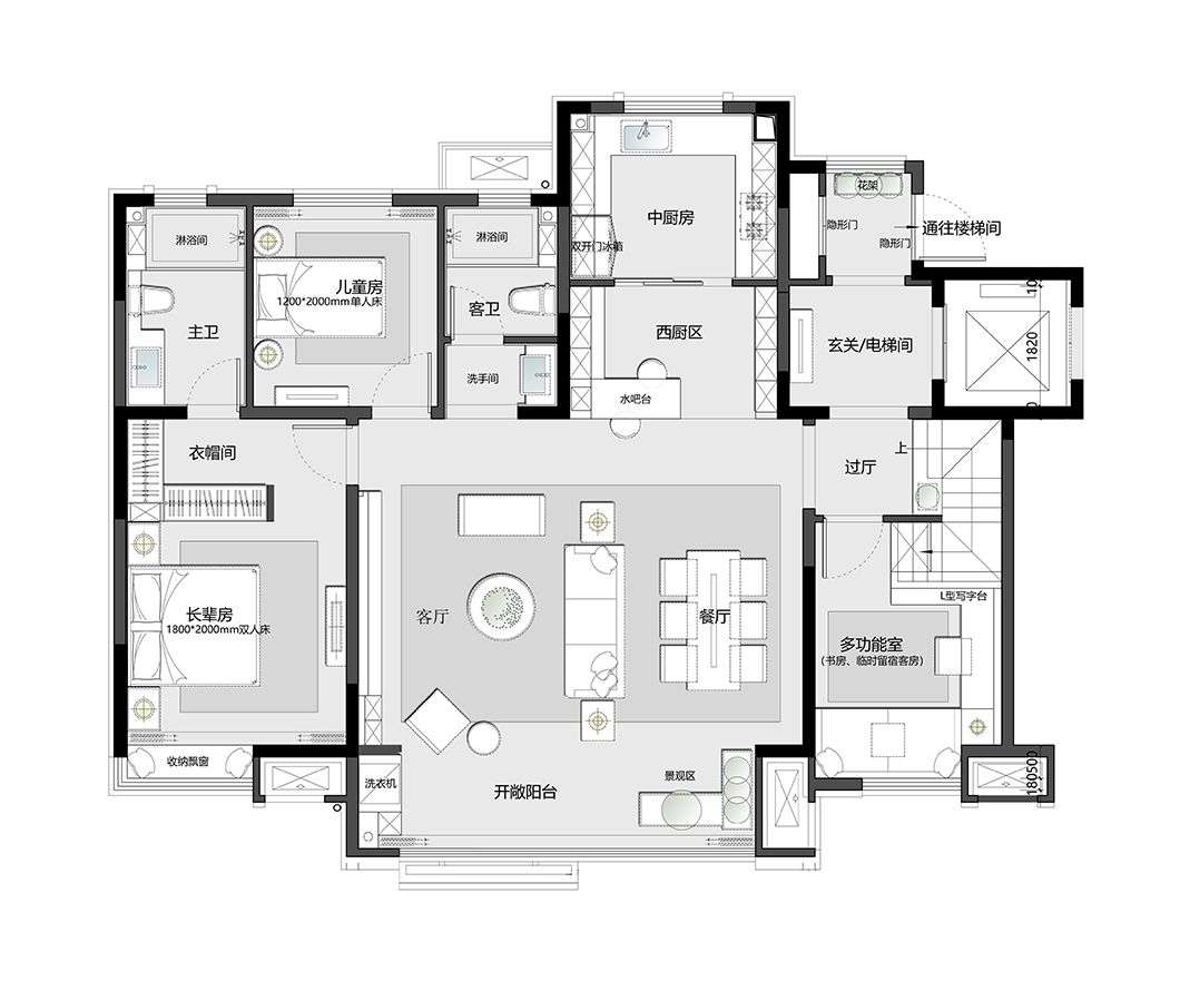 极大利用了露台空间,作为室内空间的补充延伸,增加层次感。同时进行了一系列的户型优化,提高空间使用率,使得动线更为合理。