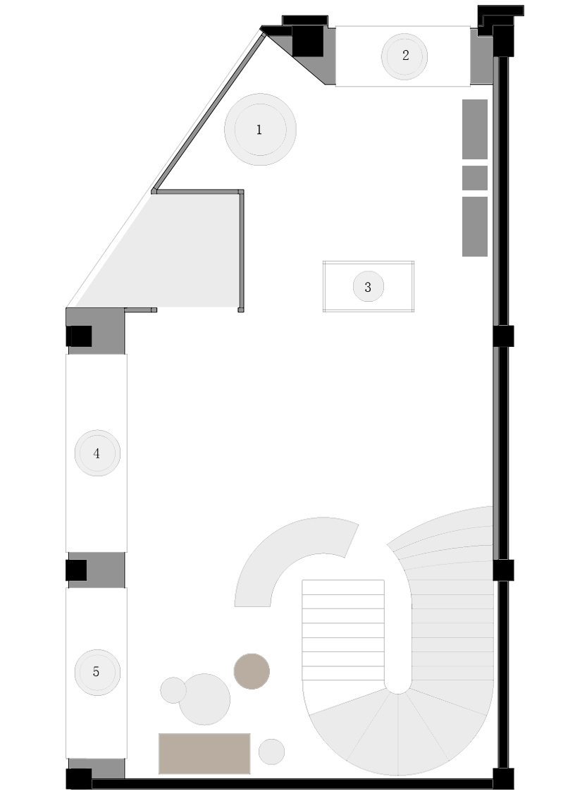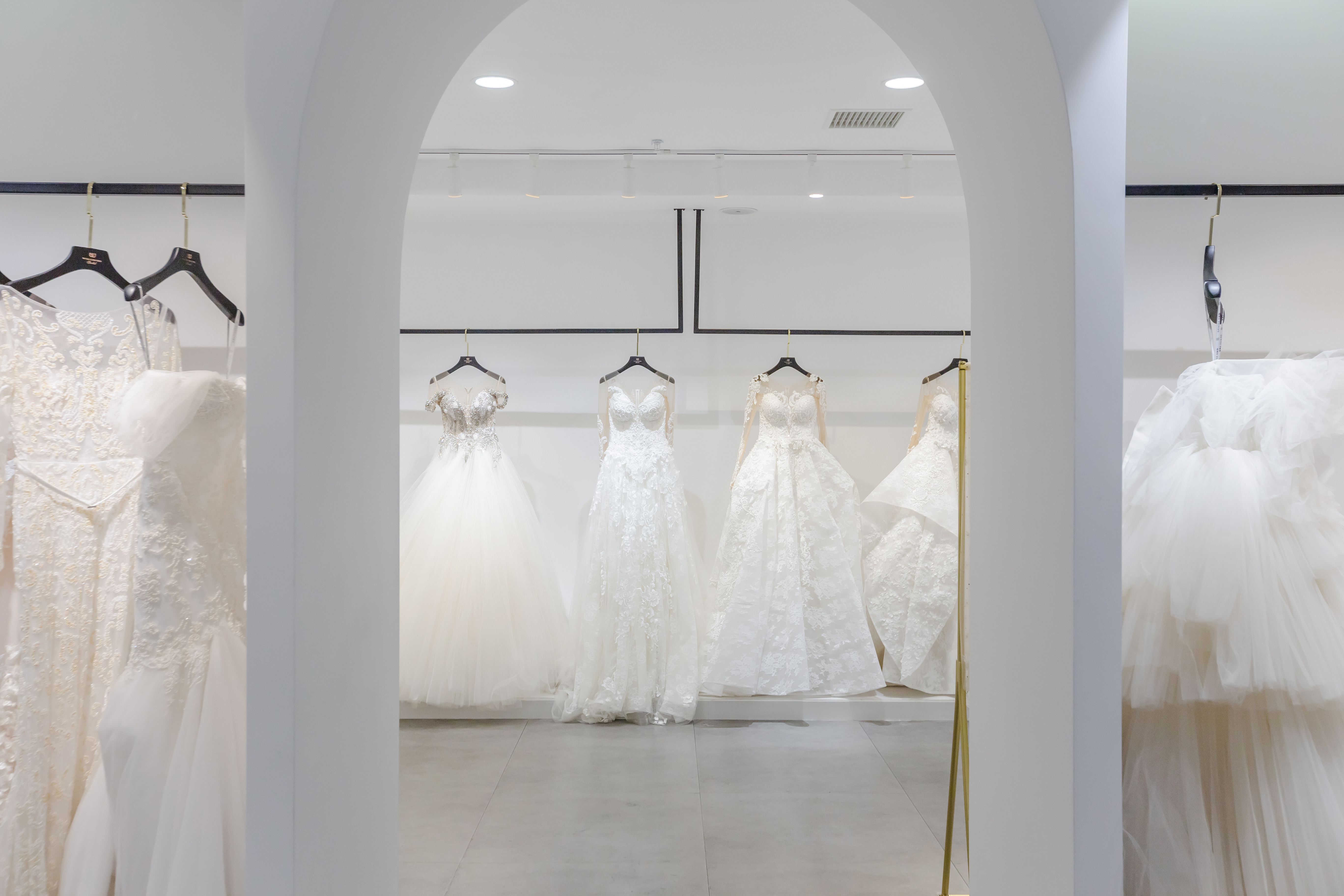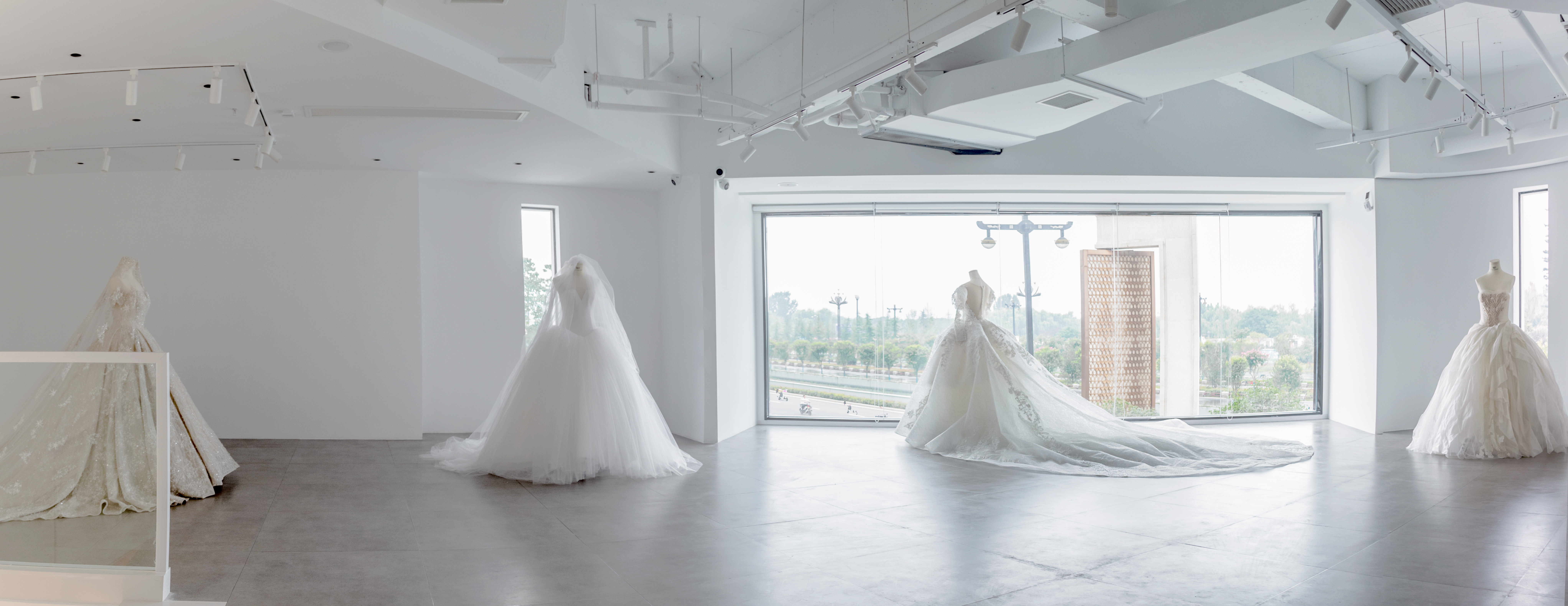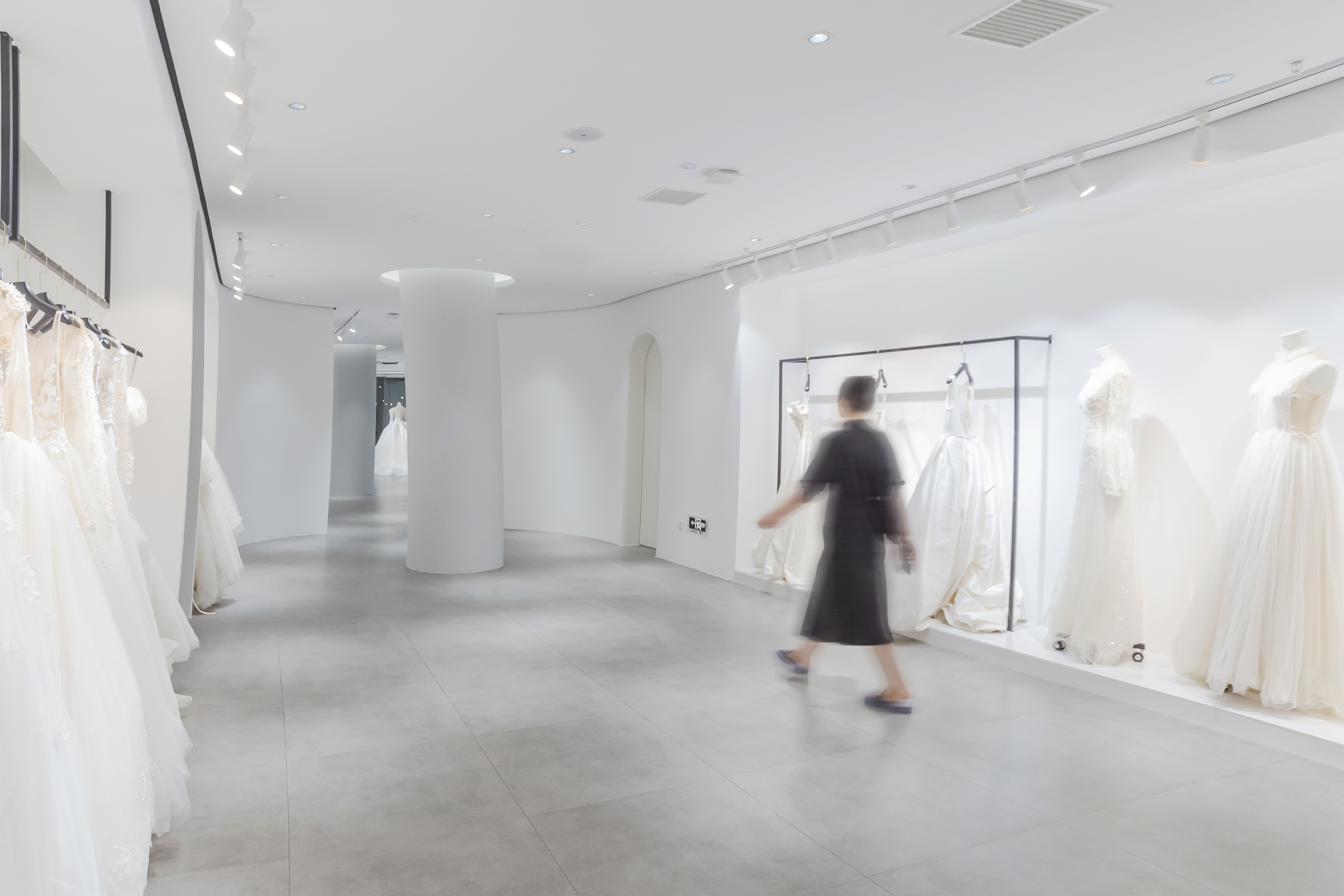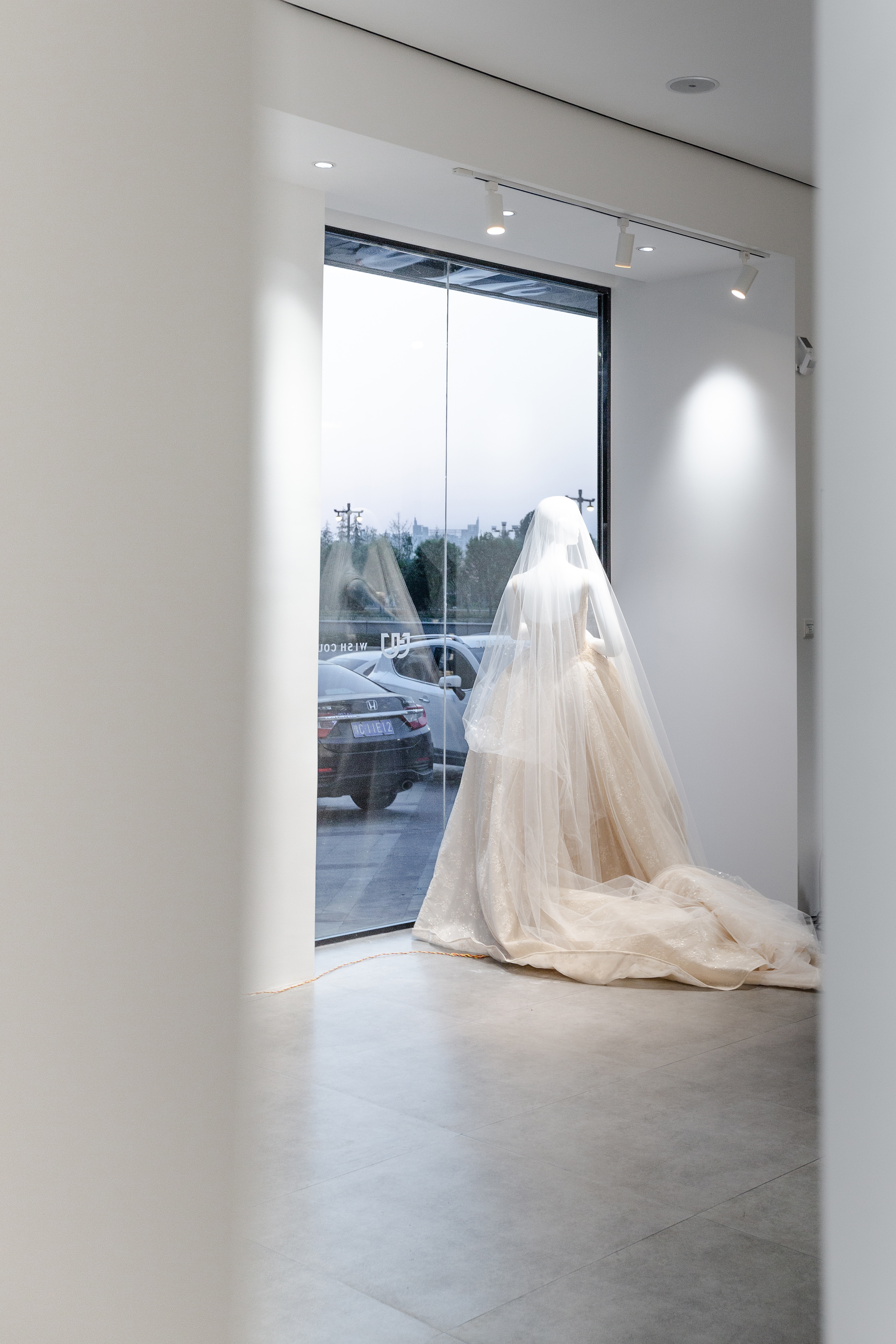 空间布局:室内空间的外用,提升了门面的空间感和延展性,外设三个box窗形空间,在展示婚纱本身的同时带来视觉的强烈冲击力。