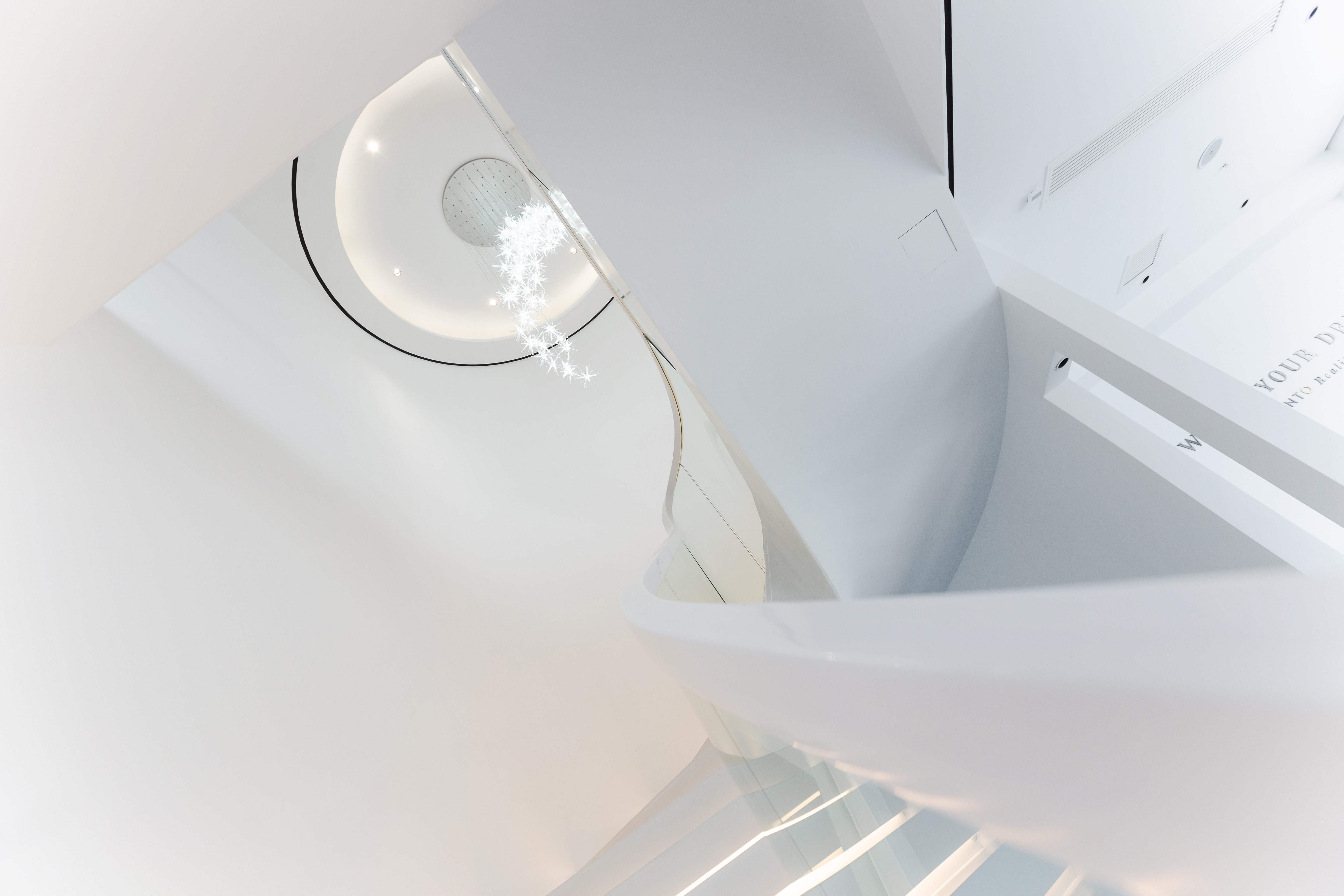 空间意境:半悬空的旋转水晶楼梯,灵动闪耀,梦幻无暇。让空间在设计的束缚之下趋于完美,这间极具梦幻和仪式感的婚纱殿堂,每一处独立的空间都是惊艳,每一处细节都经得起时间的沉淀,就像是一件精致奢华的婚纱,满足你对幸福的所有幻想。