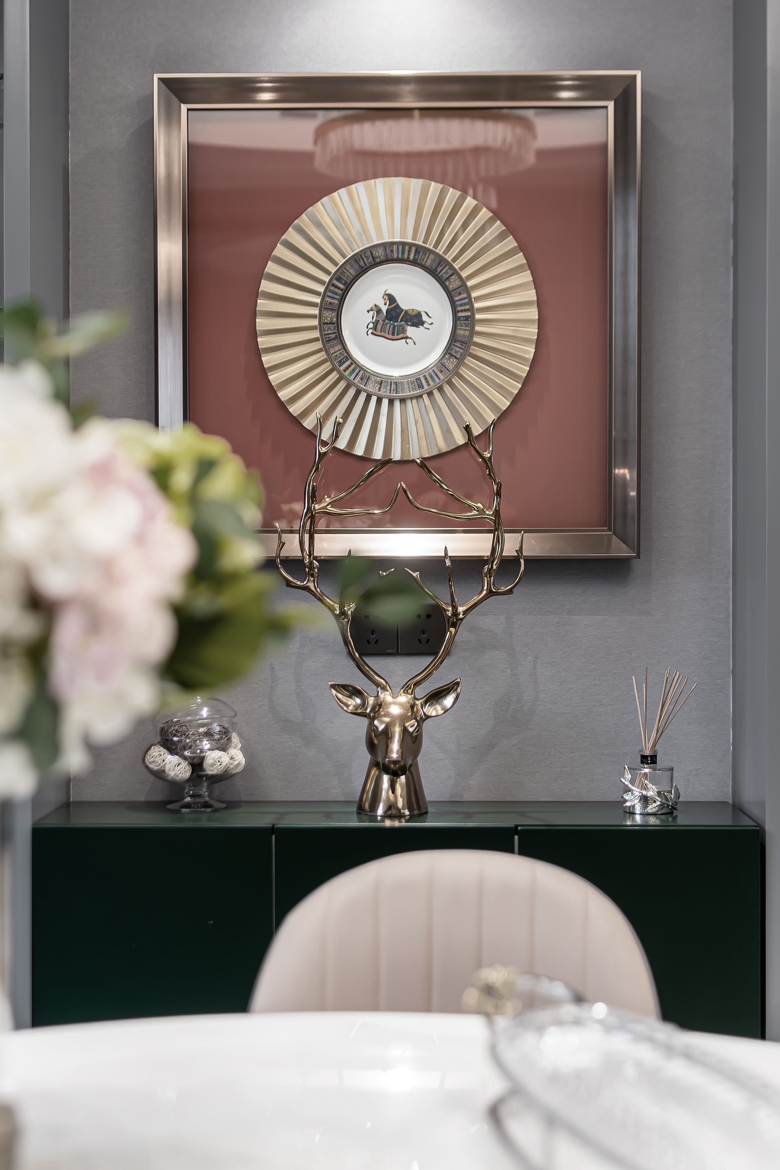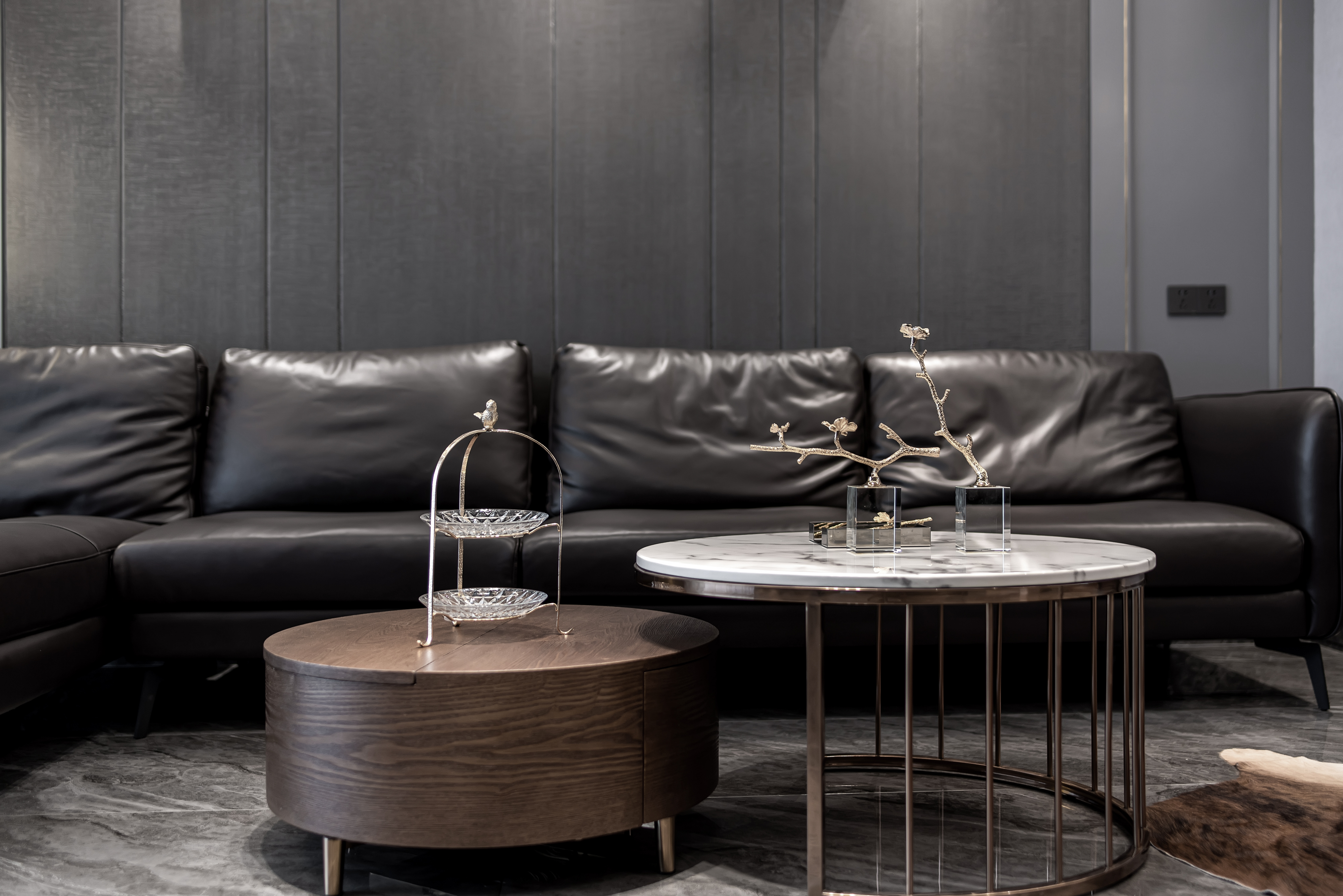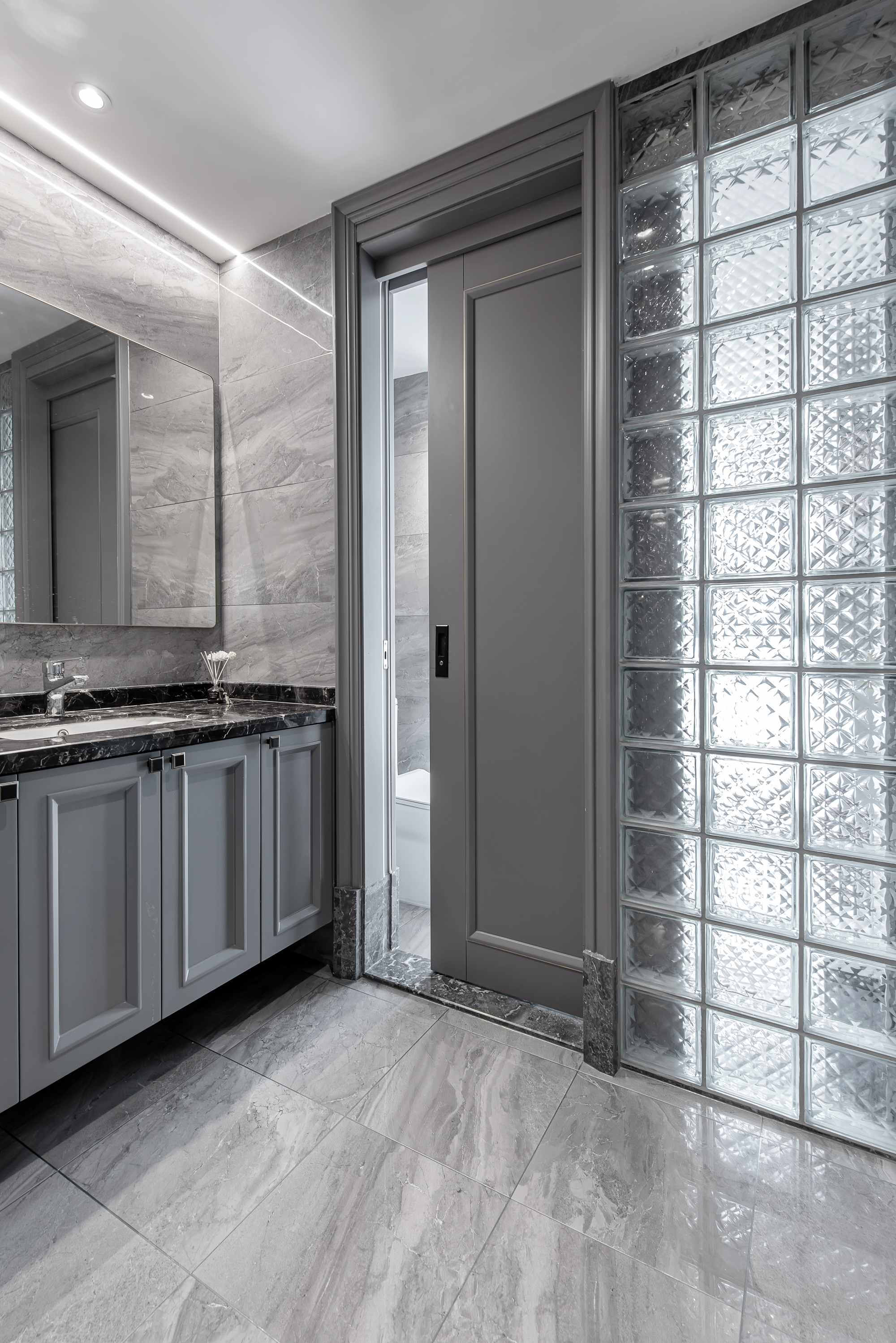 设计选材:设计选材主要材石材、金属、布艺为主,局布应用了玻璃砖作自然光线引流.