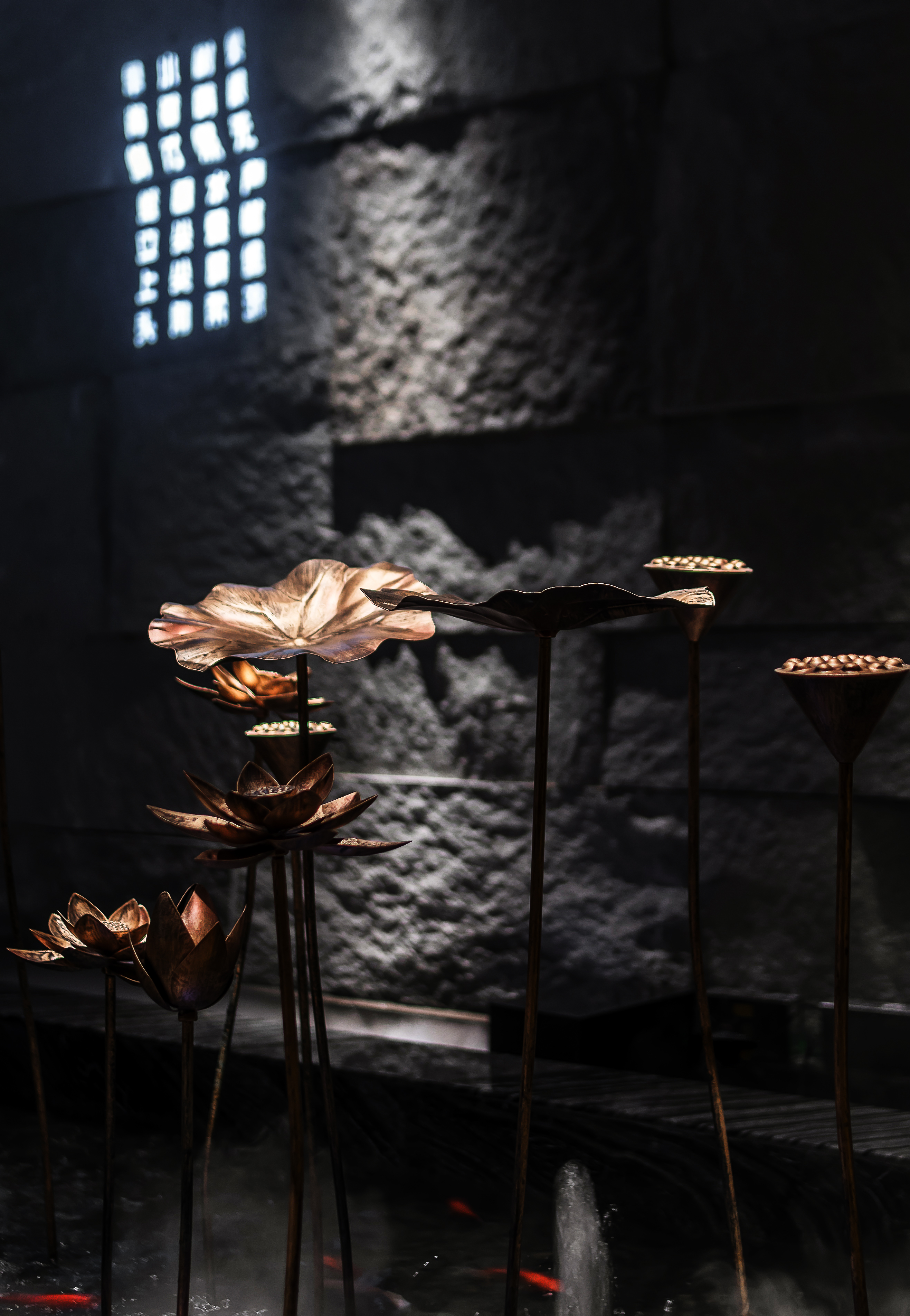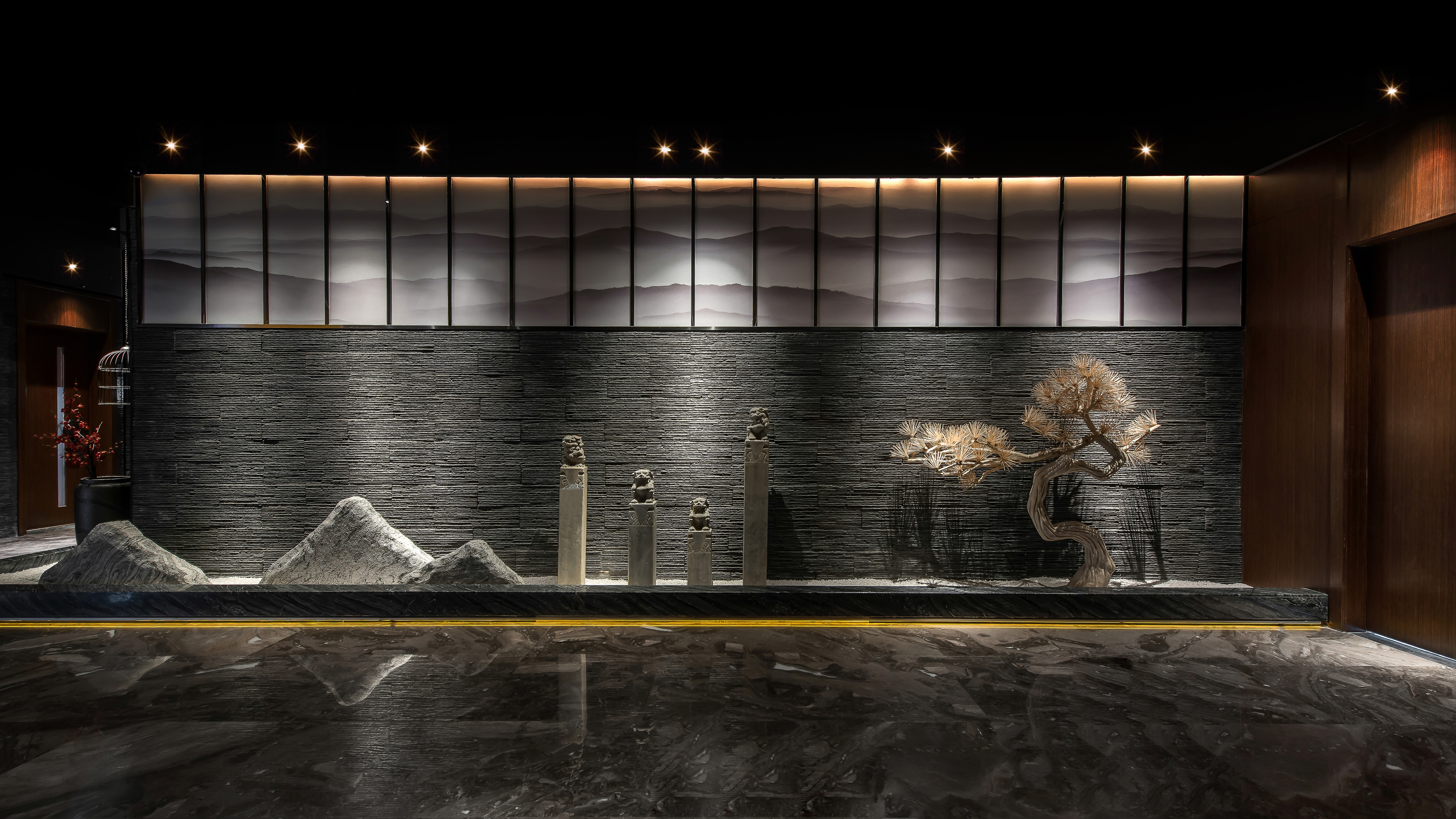 设计选材:整个空间以-文化砖、流水石、青瓦、干竹、山石等设计材质,质感鲜明,再通过特有的灯光氛围渲染,形成了空间的对位穿插。给人以平缓、松弛的视觉享受,在地文化的运用,使本案的文化底蕴得到了提纲掣领的展现,同时增添了空间的灵性与协调。