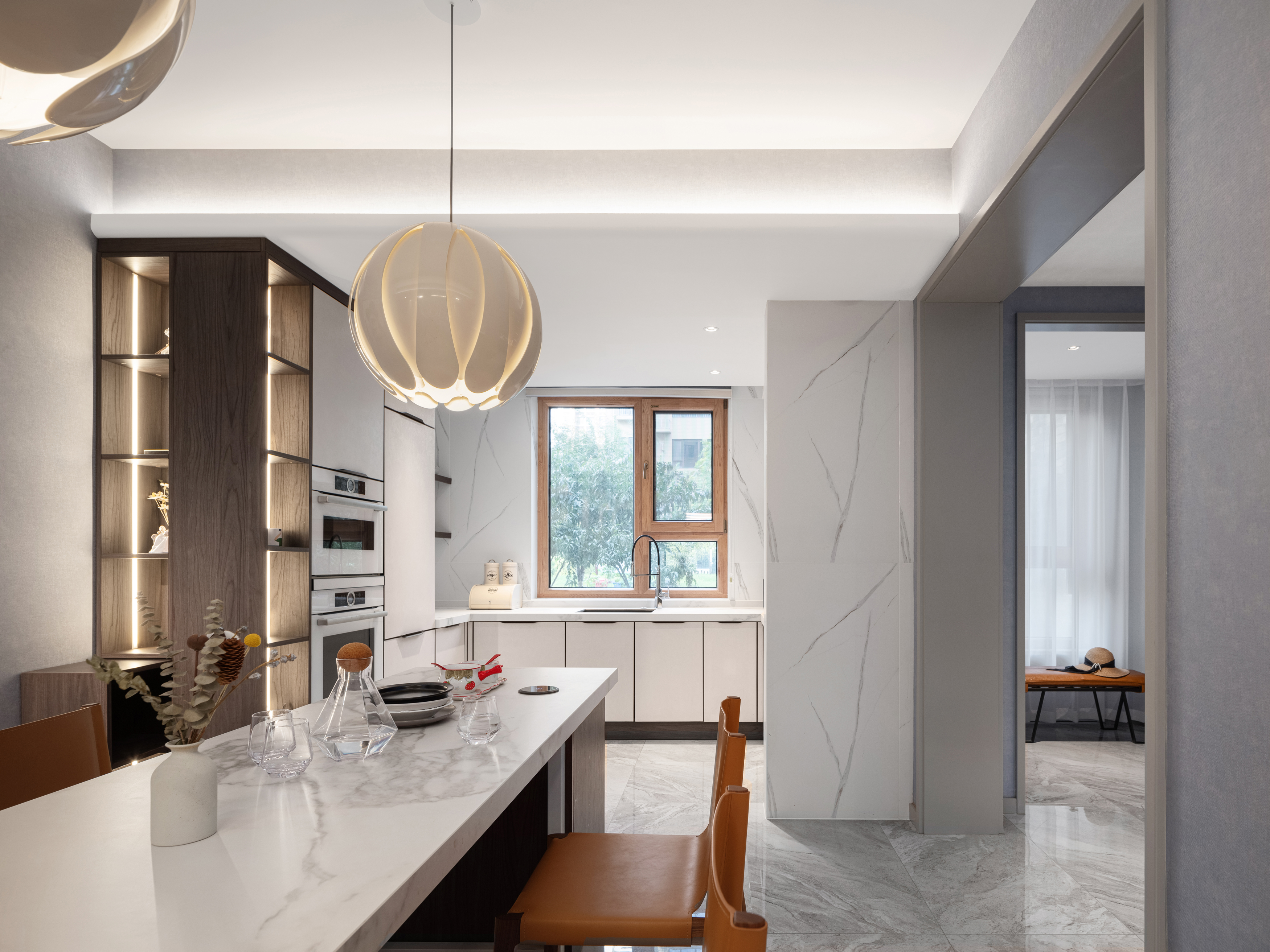 空间布局:相对开放式厨房,一家人开开心心地一边聊天一边准备饭菜,厨房俨然成为了我们家的真正的重点。