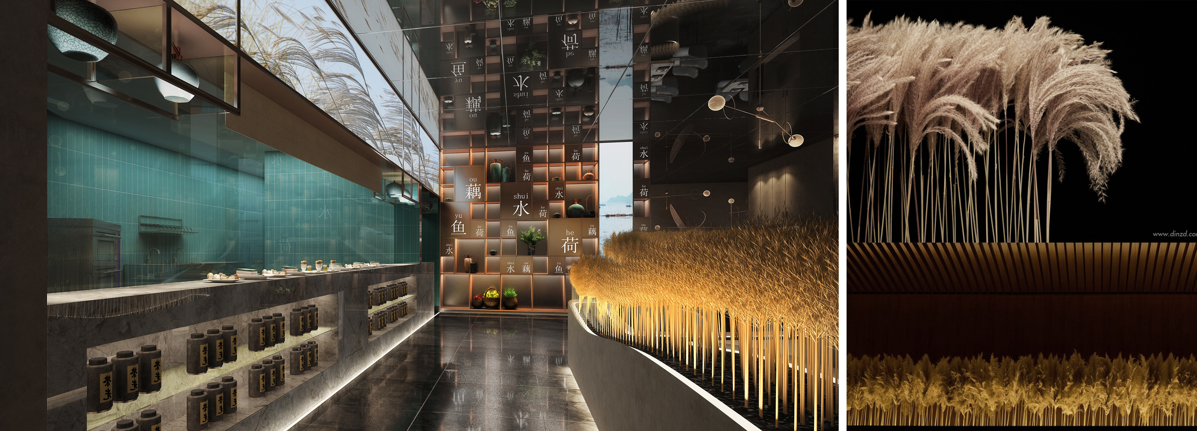 空间意境:提到白洋淀场景,惯性思维会想到的是传统的渔船、房子、街道等写实的场景。但是本项目想从另外一个角度来展现白洋淀,让人们有一种全新的场景体验