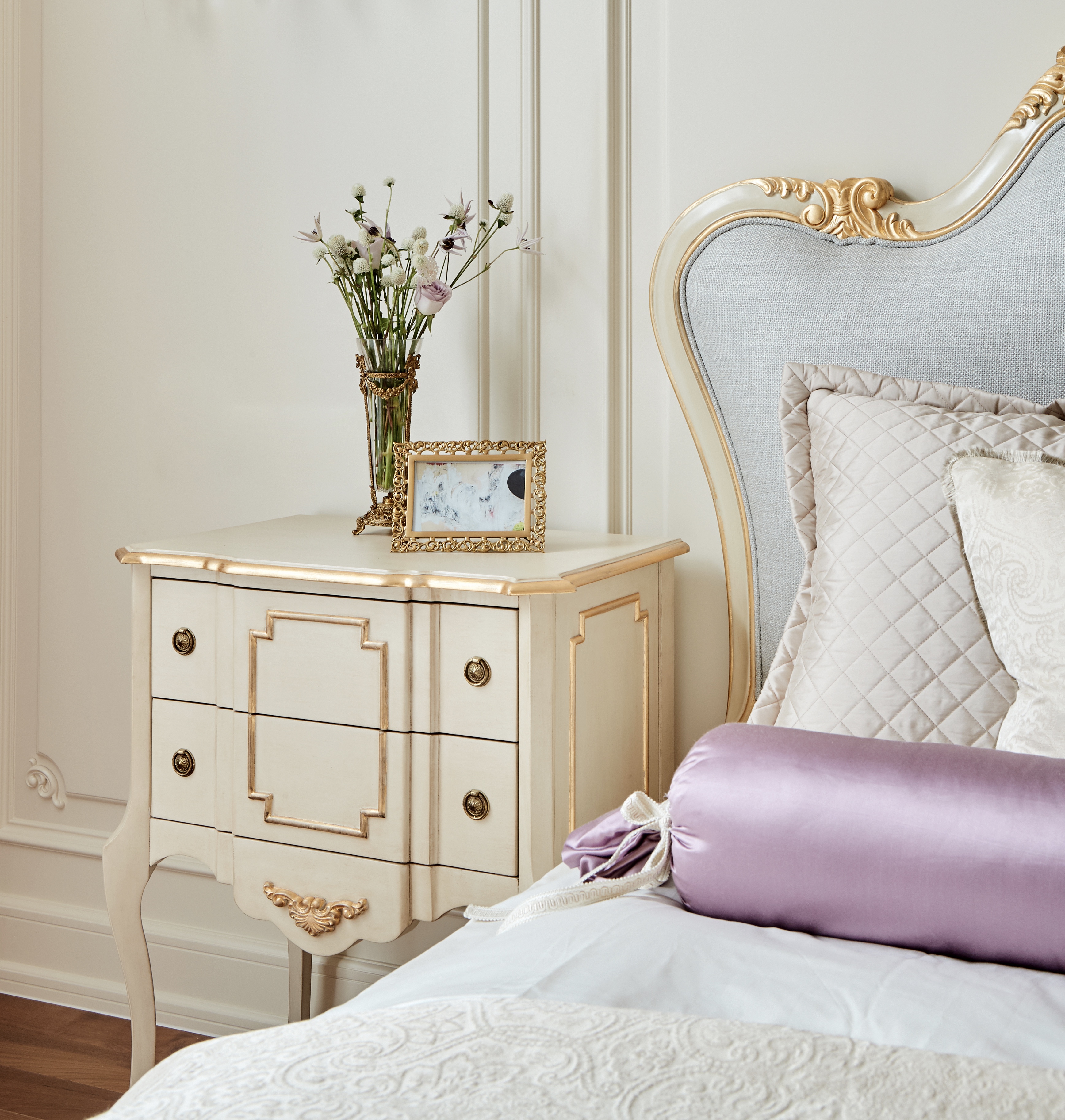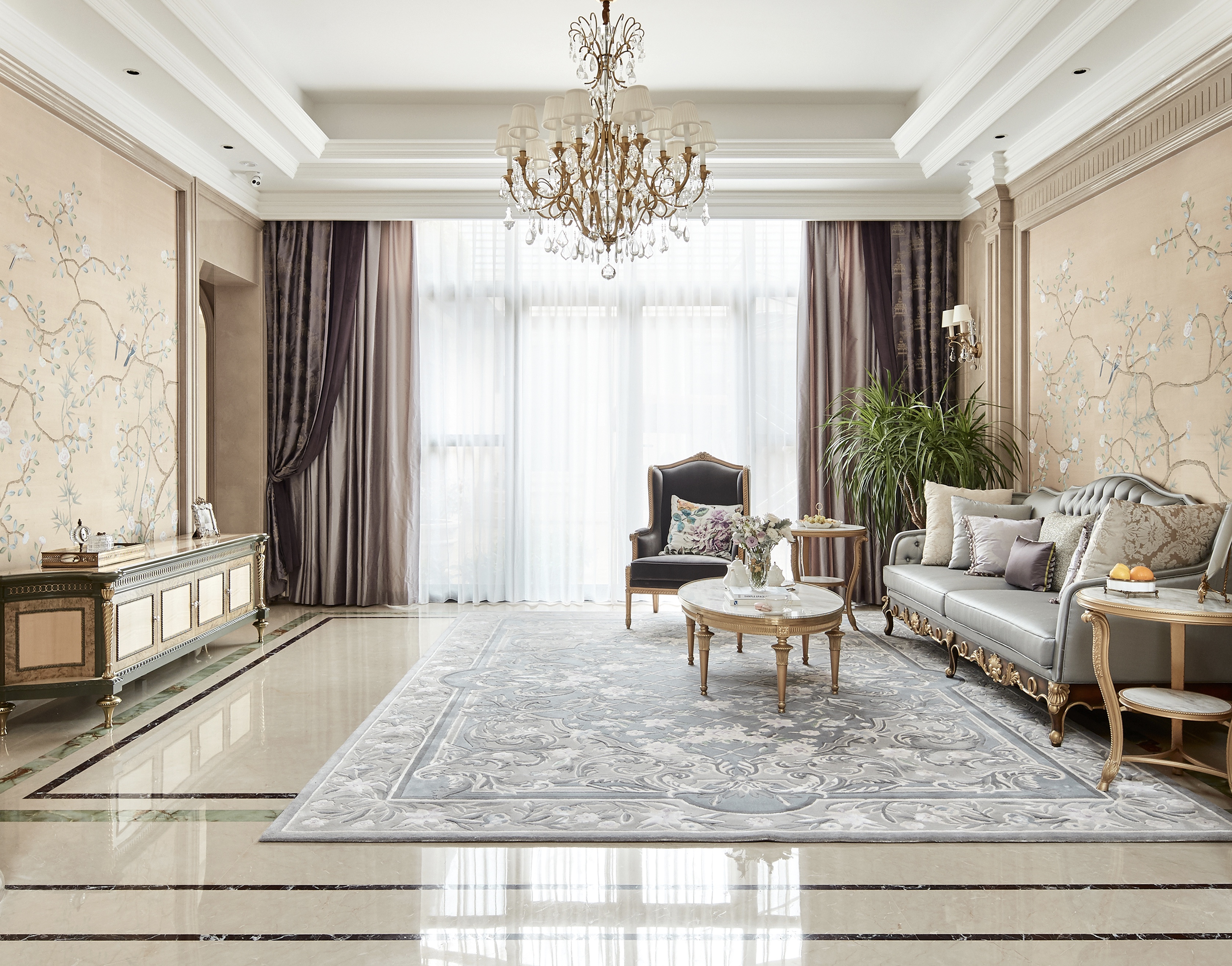 设计选材:多采用石材或者仿石材装饰,细节处理上运用法式廊柱、雕花、线条,制作工艺考究。摒弃了传统法式风格的繁复线条和装饰,以雕刻、镀金、嵌木、镶嵌陶瓷及金属等装饰方法为主。