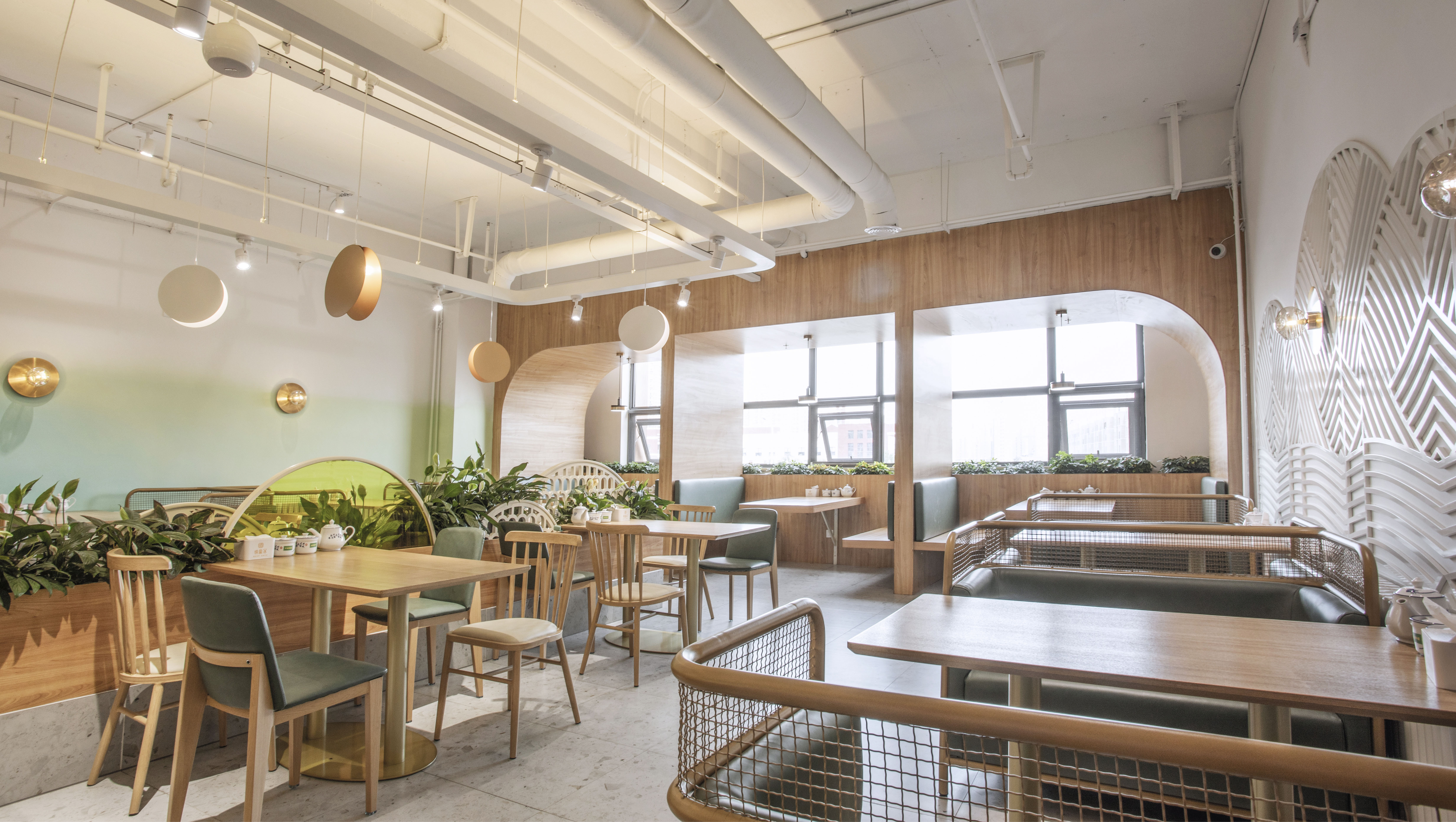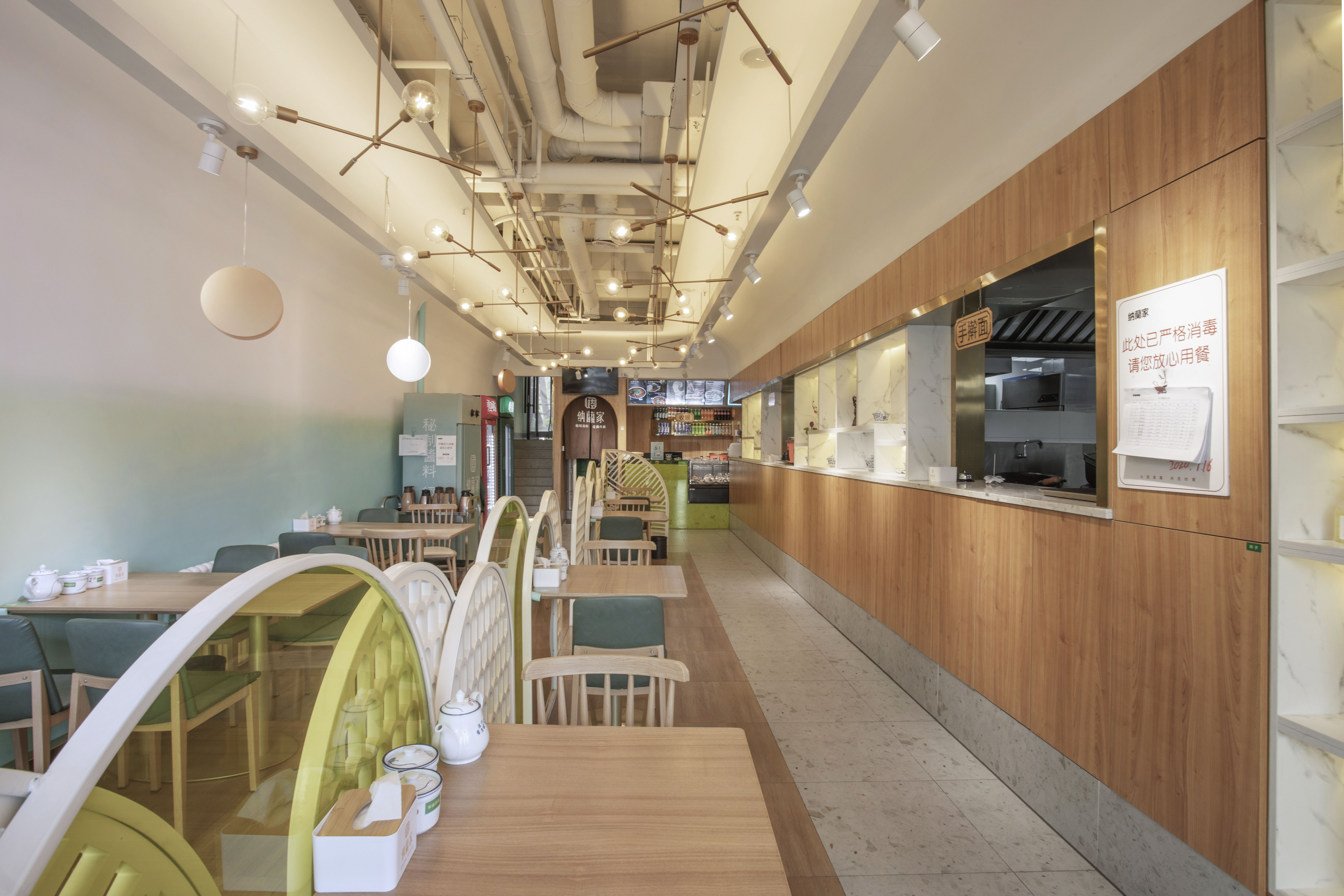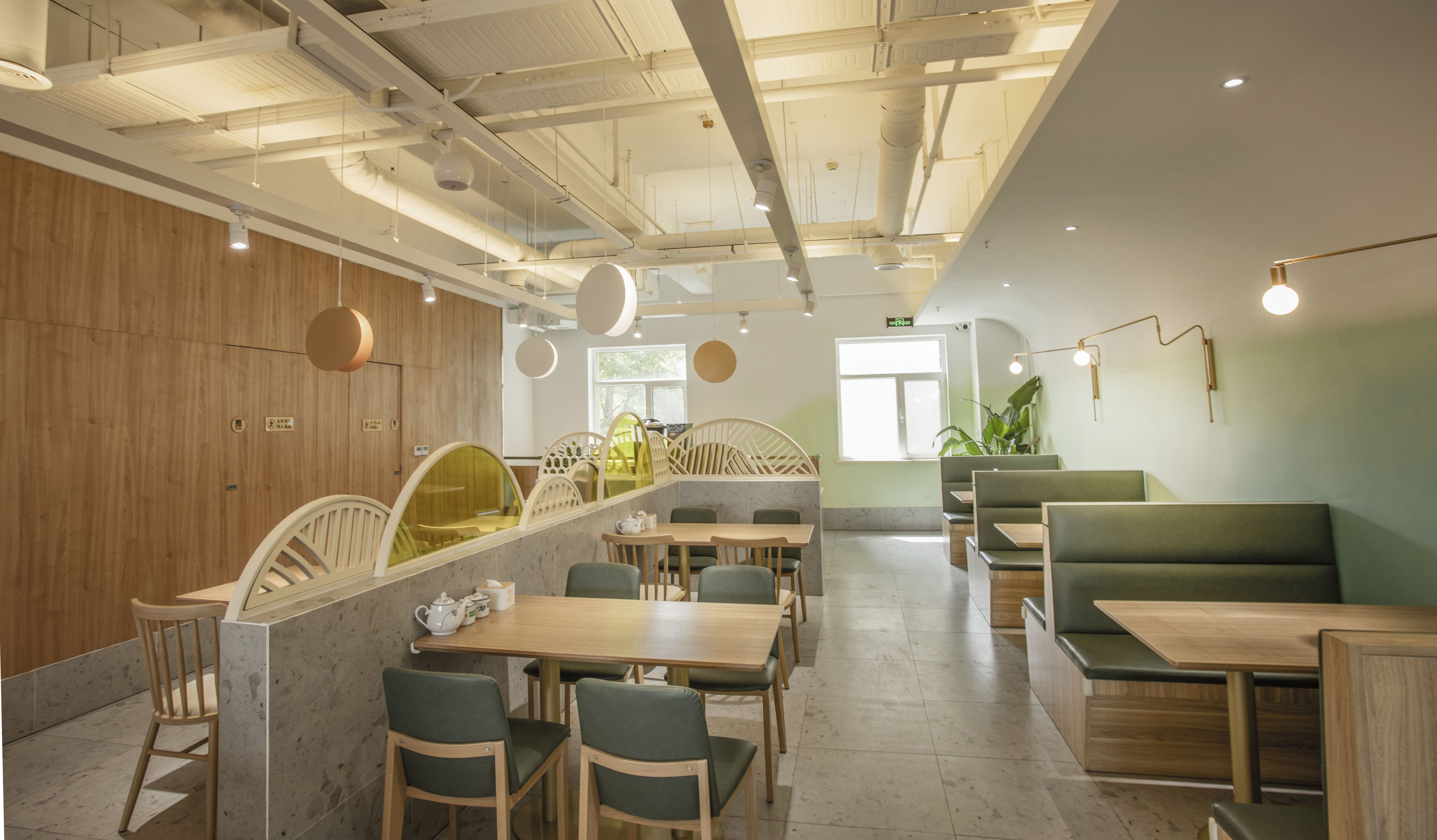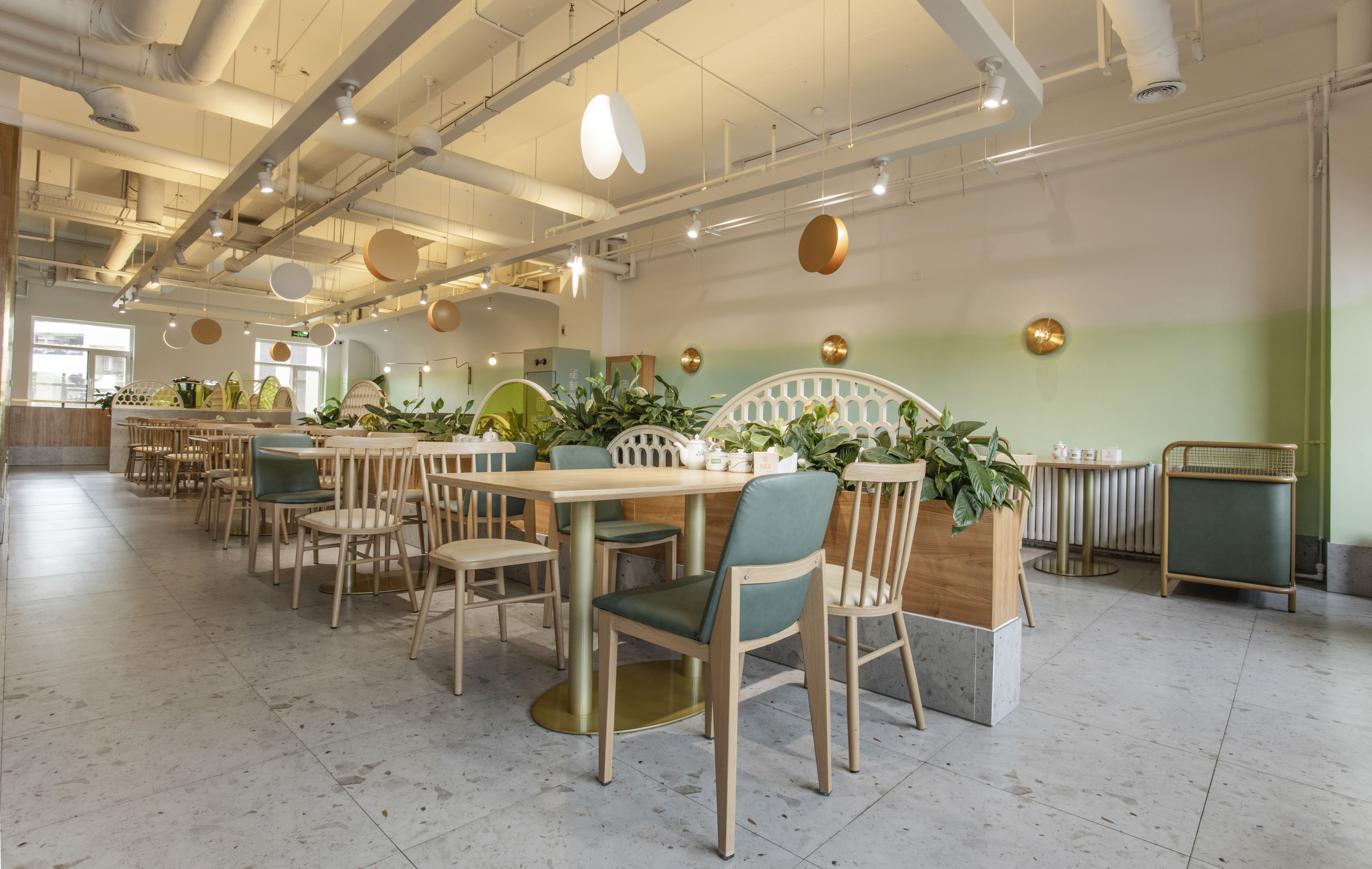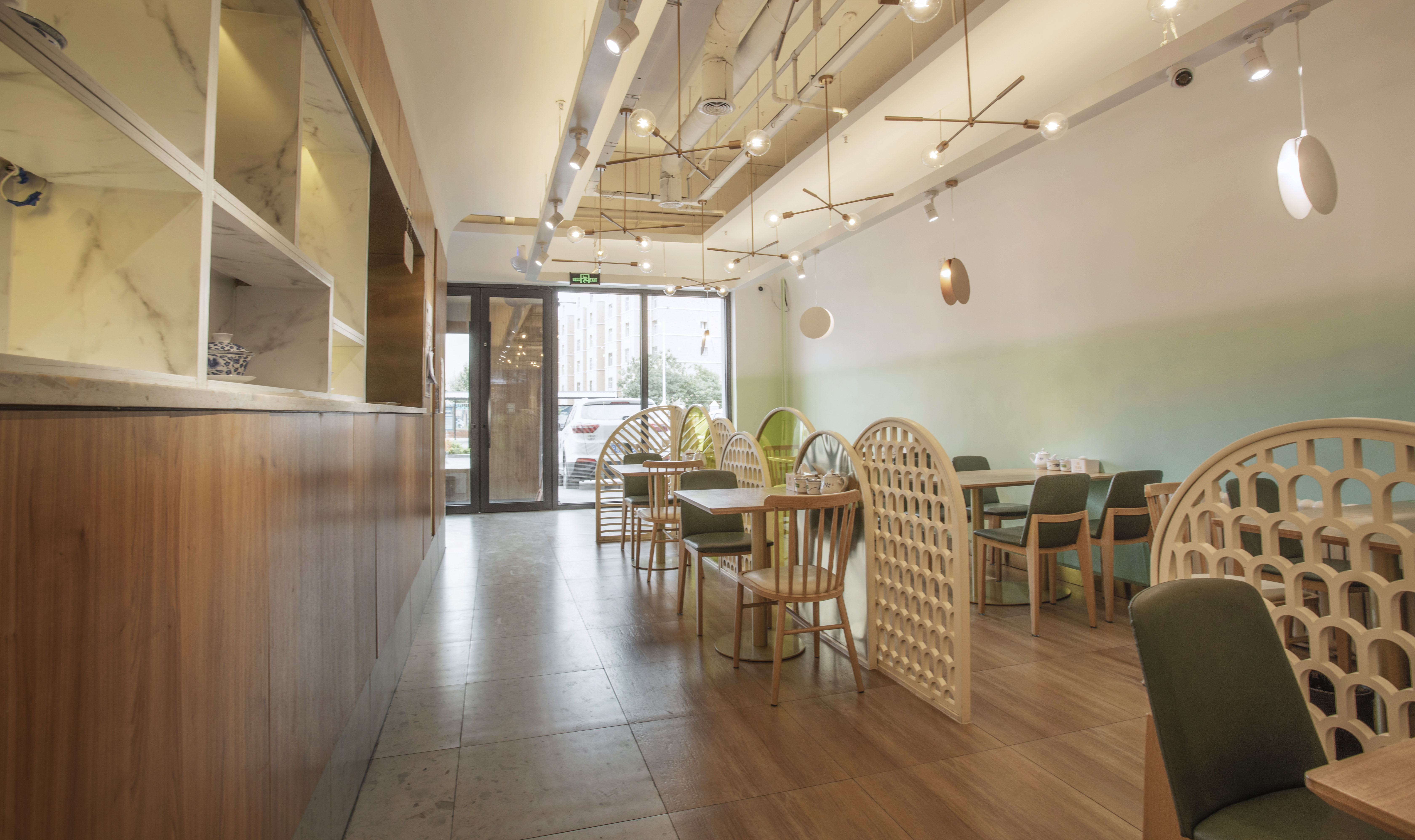 项目定位:此店主营清真美食,推开纳兰家的大门,入眼便是明亮柔和绿与白。象征着绿洲与白月光为主色调,让客人即刻被沙漠绿洲般温柔的氛围包裹。