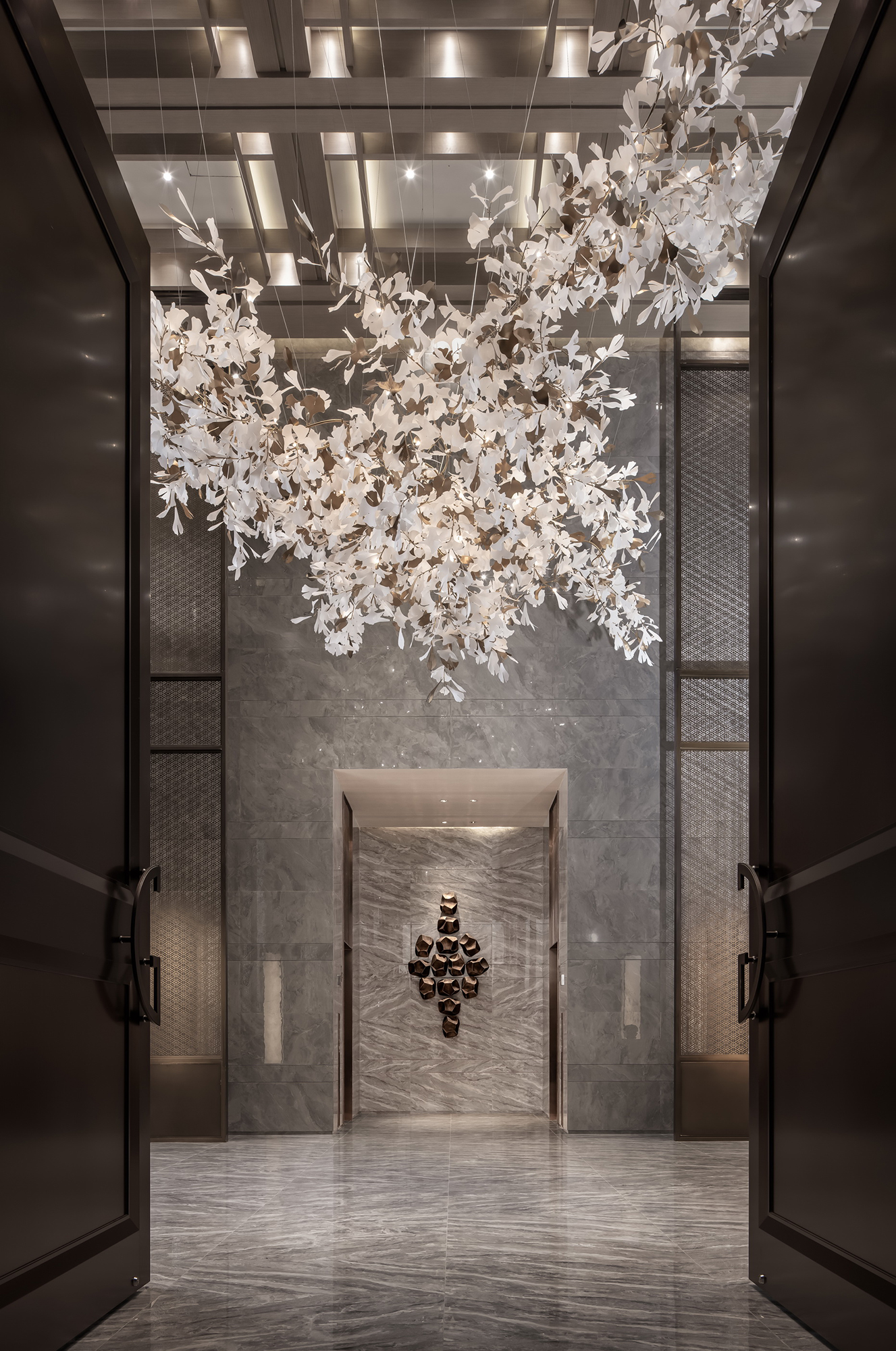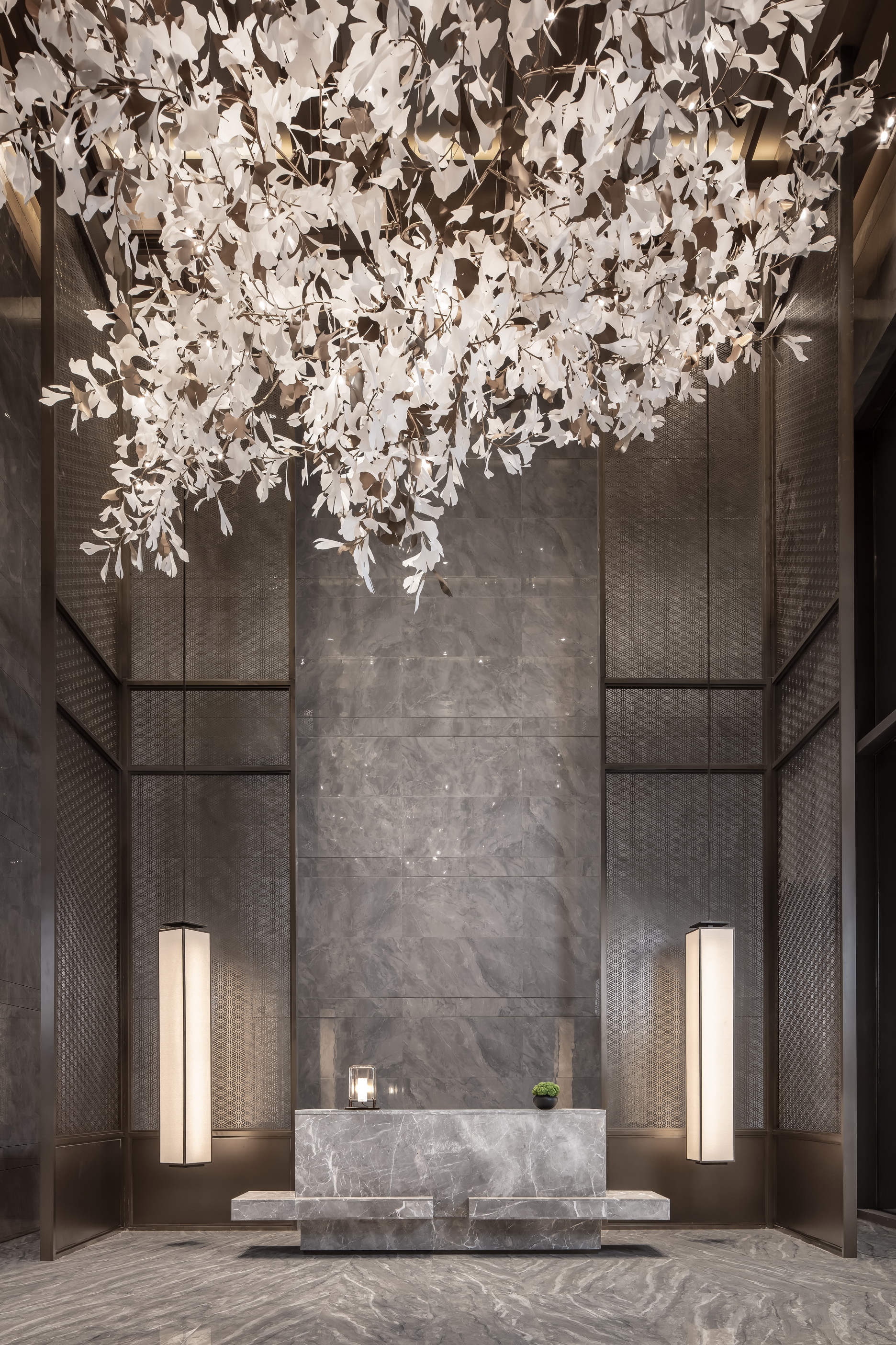 如沐春风,心旷神怡 行走于空间中的全新体验 空间由柔和的中性色展现,通过雕塑的形态、装饰灯的搭配、大理石的质感、简洁的线条、色彩的运用……一系列与空间相得益彰却又饱含诗意。光一寸一寸地落于空间,神秘感与序列感也由此产生。
