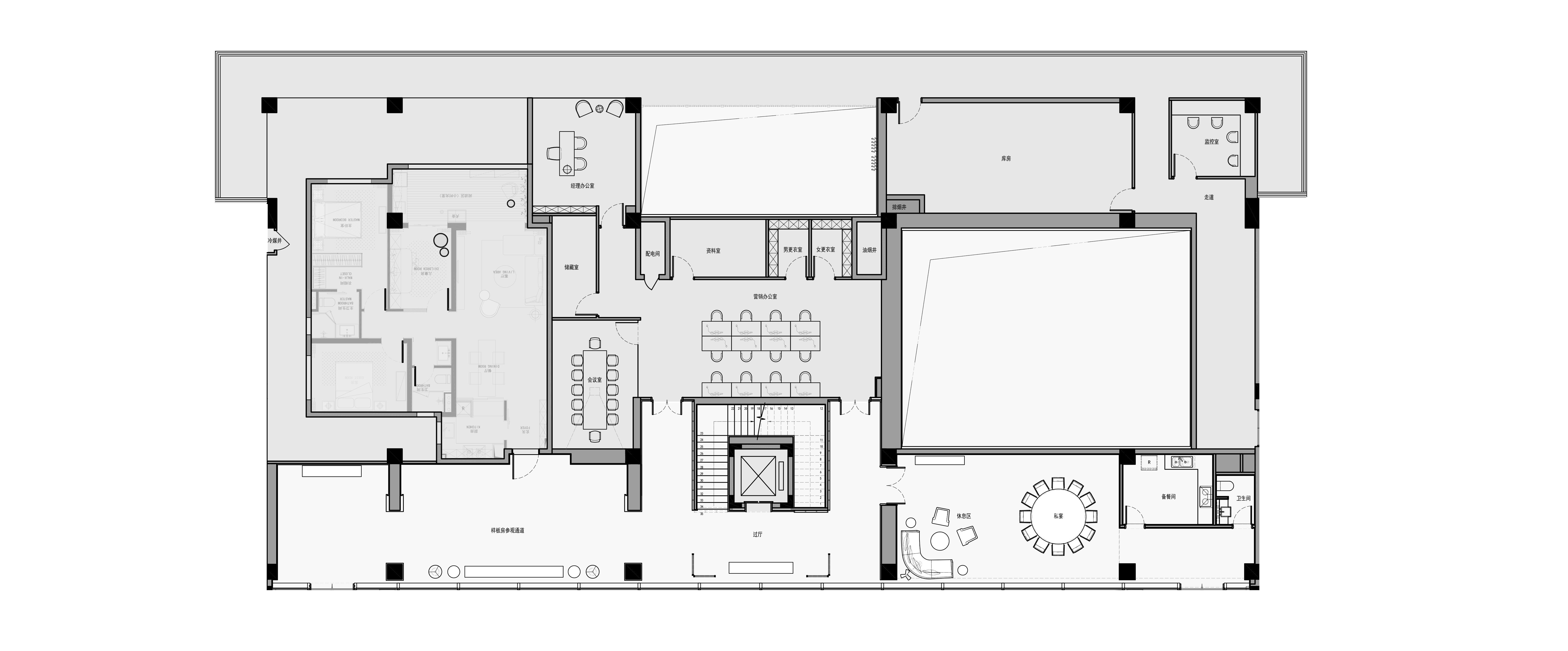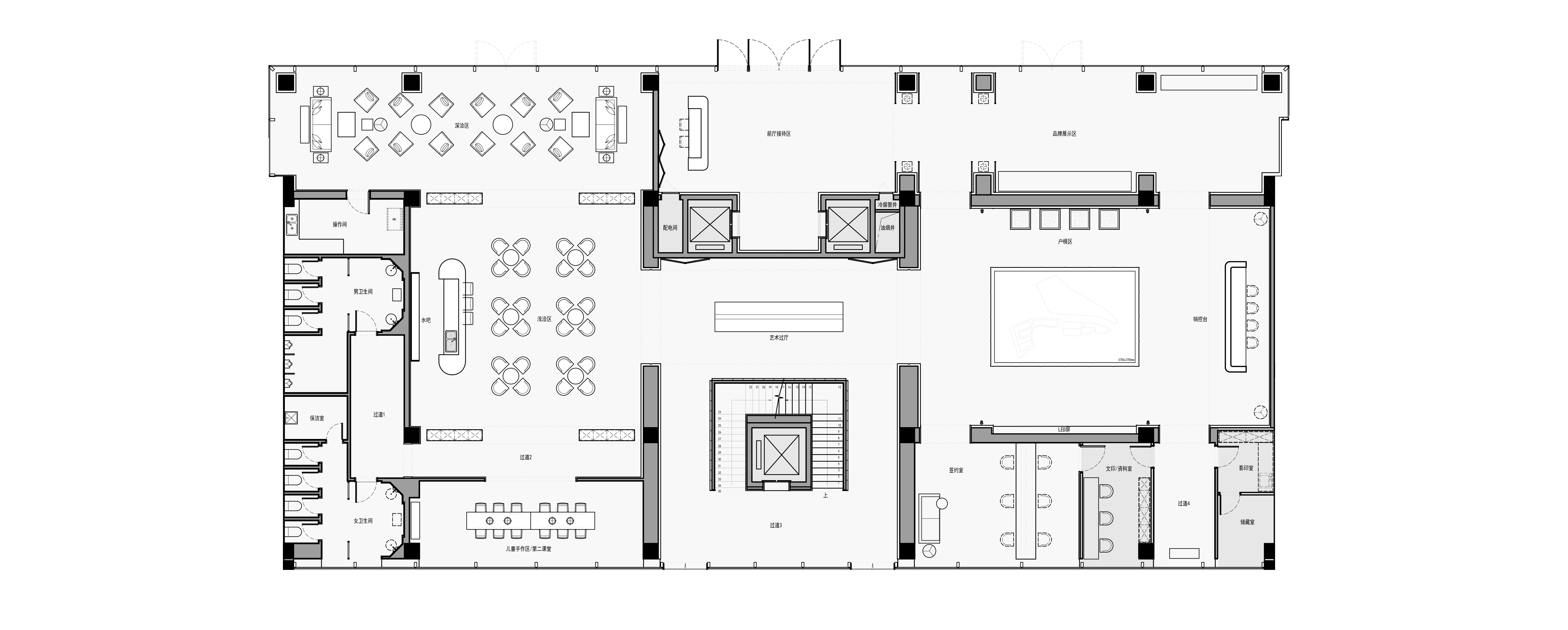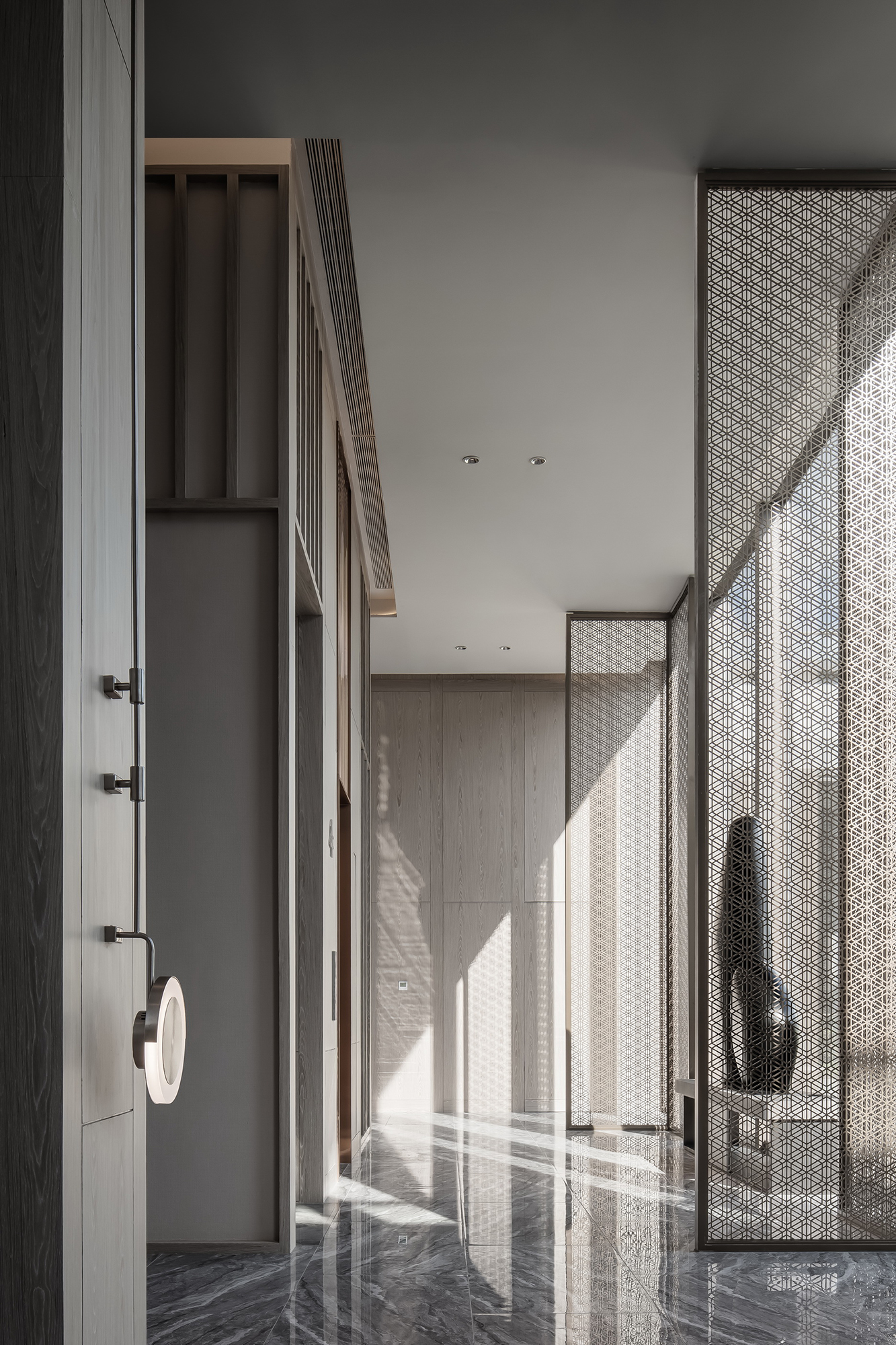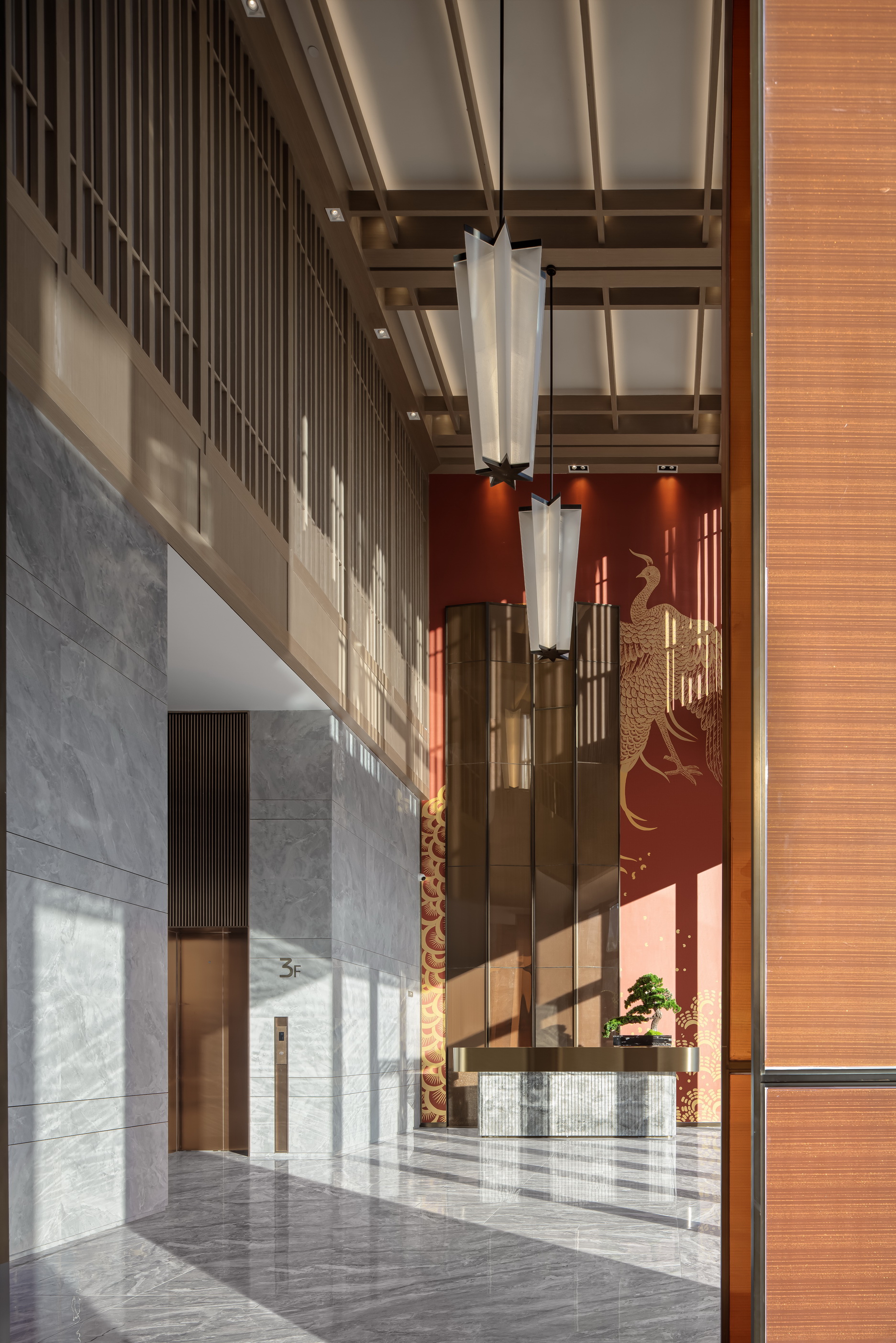 横平竖直的线条,既融合了中国传统文化的韵味,又与现代建筑风格相融,整体空间通透,空间内大面积的落地玻璃有着强烈的视觉冲击,沉浸其中,细细品味城市肌理与空间中的联系。
