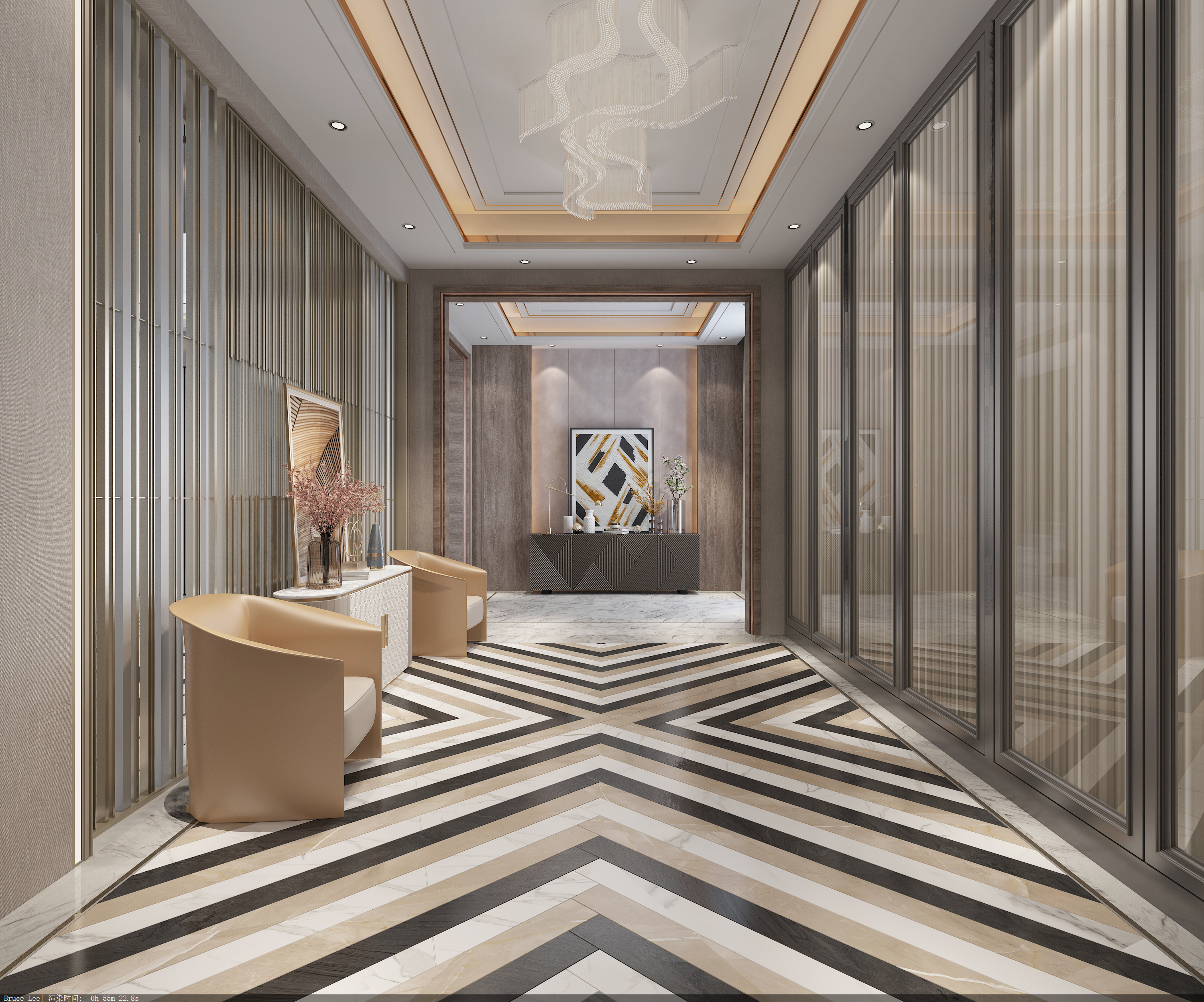 在古典元素的基础上,应用现代色彩元素的处理手法,让空间在时空中穿梭