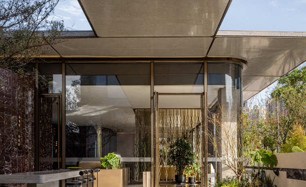 设计选材:WED中熙设计也一直热衷于探索各种新式材料在室内空间的表现,采用应用在高科技产品的氧化铝板材质,让柱子整体的视觉感变轻,也带来了更强的质感和科技感。大理石材、铝金属不同质感拼接、重叠、碰撞,让空间产生微妙的细节变化又相互融合,让空间变得更有冲突感和层次感。