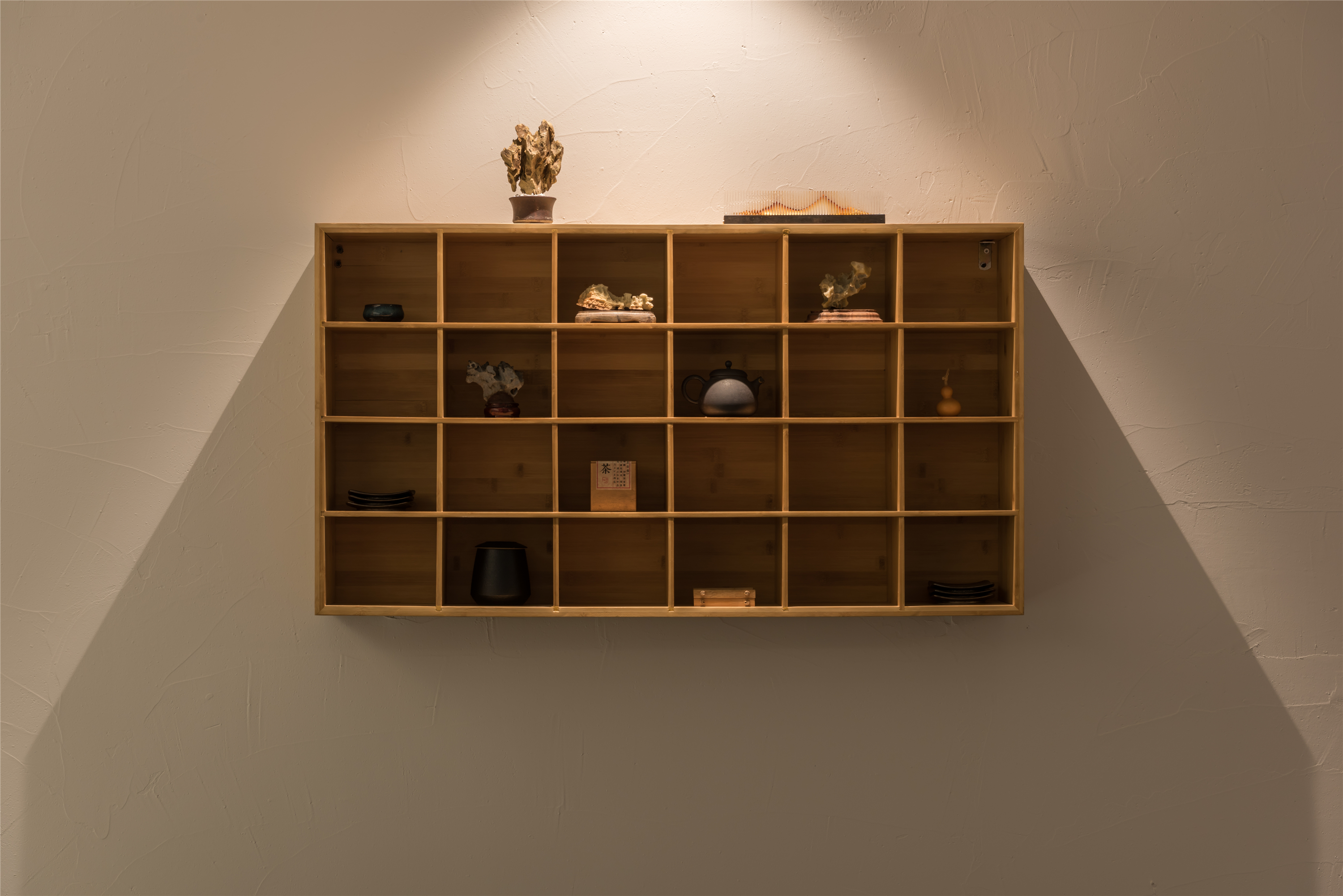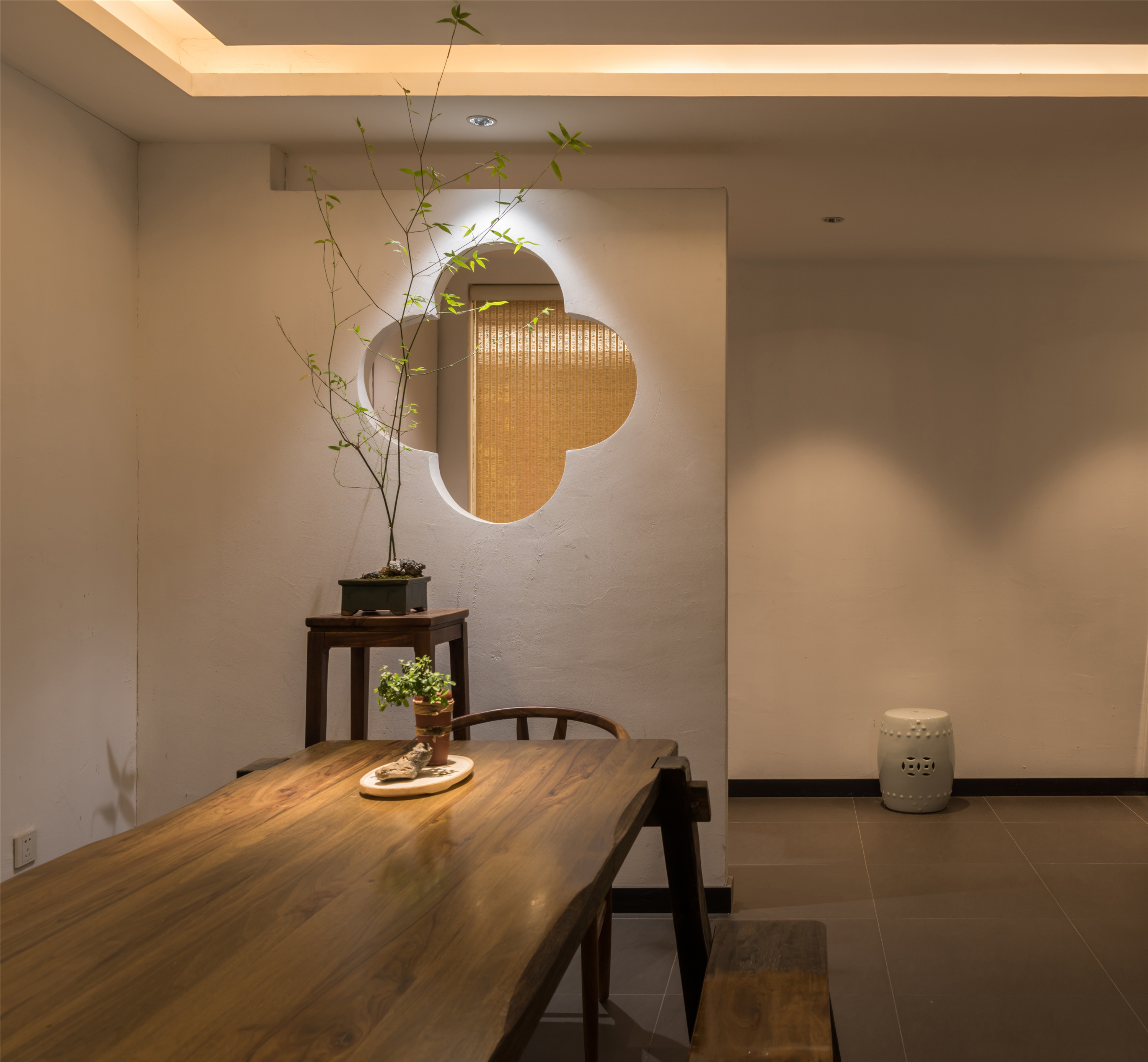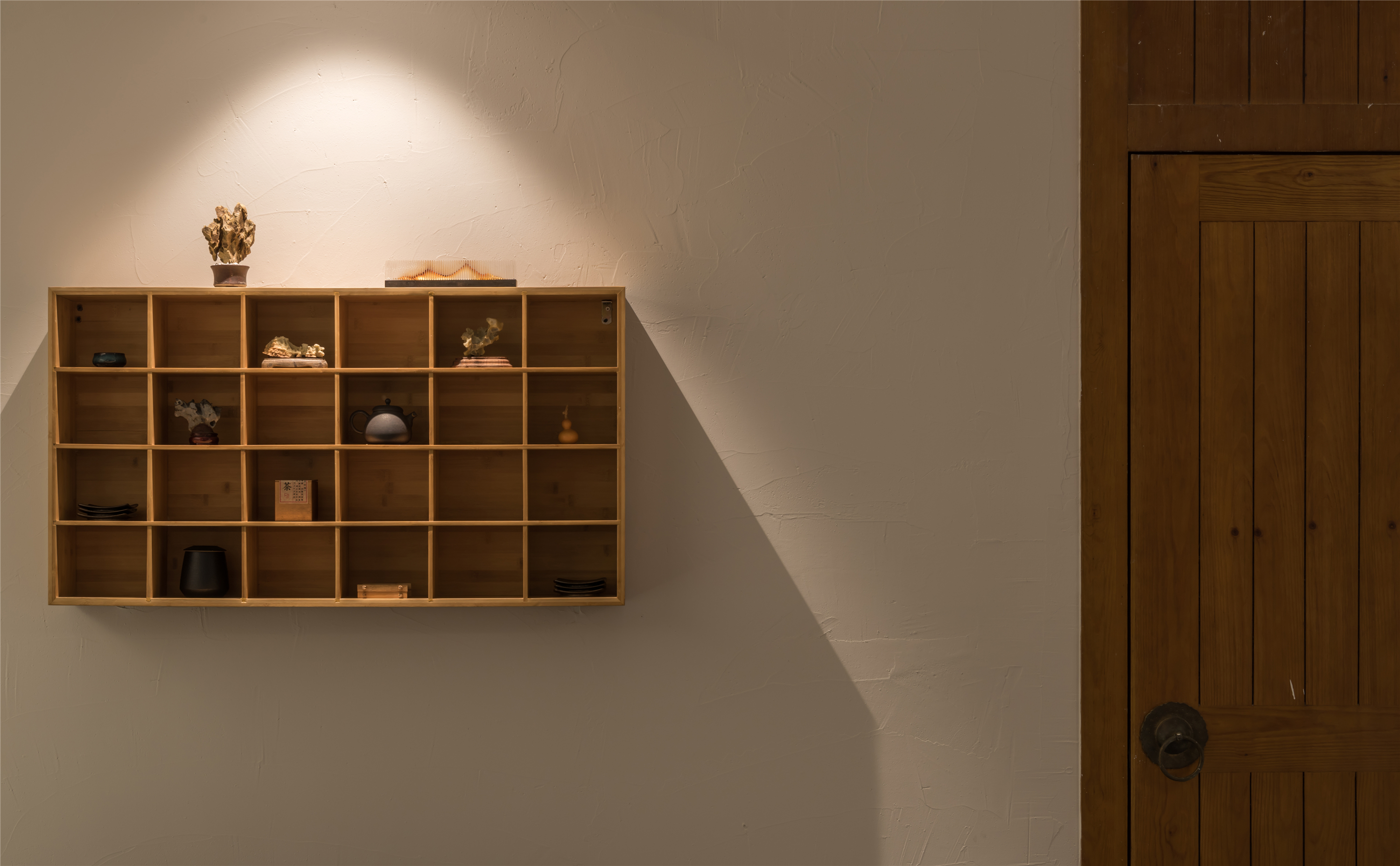 空间意境:美,不存在于物体之中,而存在于物与物产生的阴翳的波纹和明暗之中。世上的万事万物都有他自己存在的价值,都有他自己小宇宙,我们只要给他一个属于他的舞台就好。一个花插,一盆盆景,一个博古架,一副古画,我们只要给他一个属于他们自己的光就好,他们自然会向大家表达他们的美。一种玄幽的审美意境。