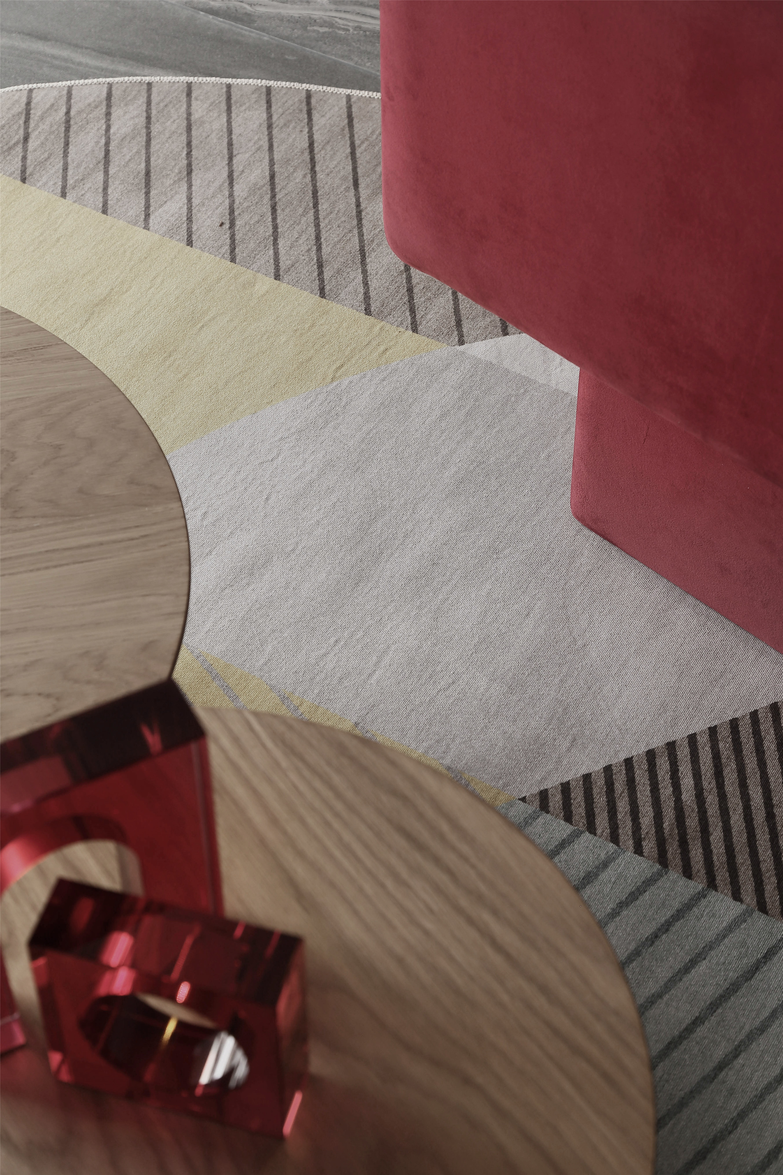 黄色茶几又与地毯装饰画的黄色呼应,这里的红色与黄色又与餐厅色彩呼应。