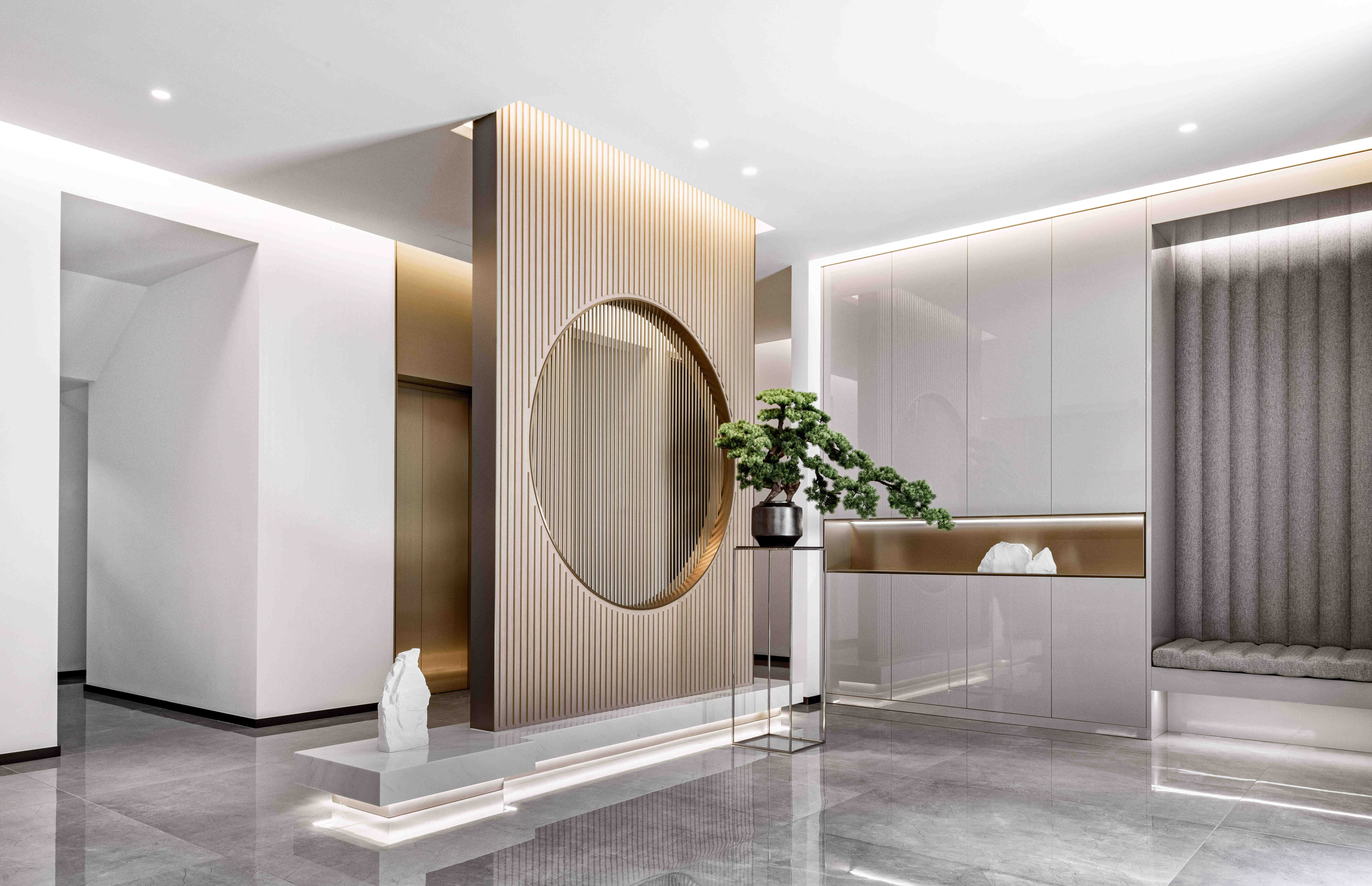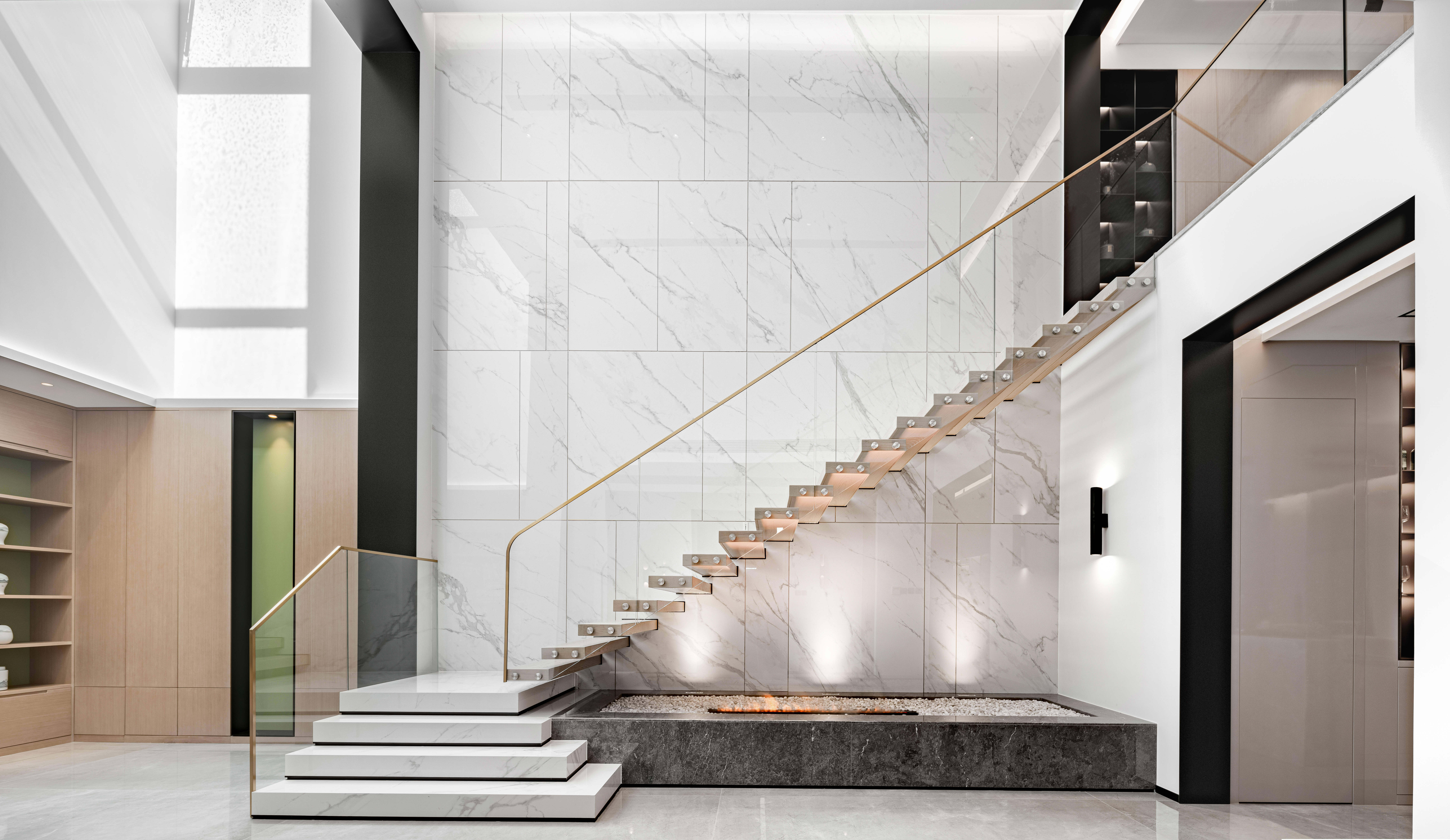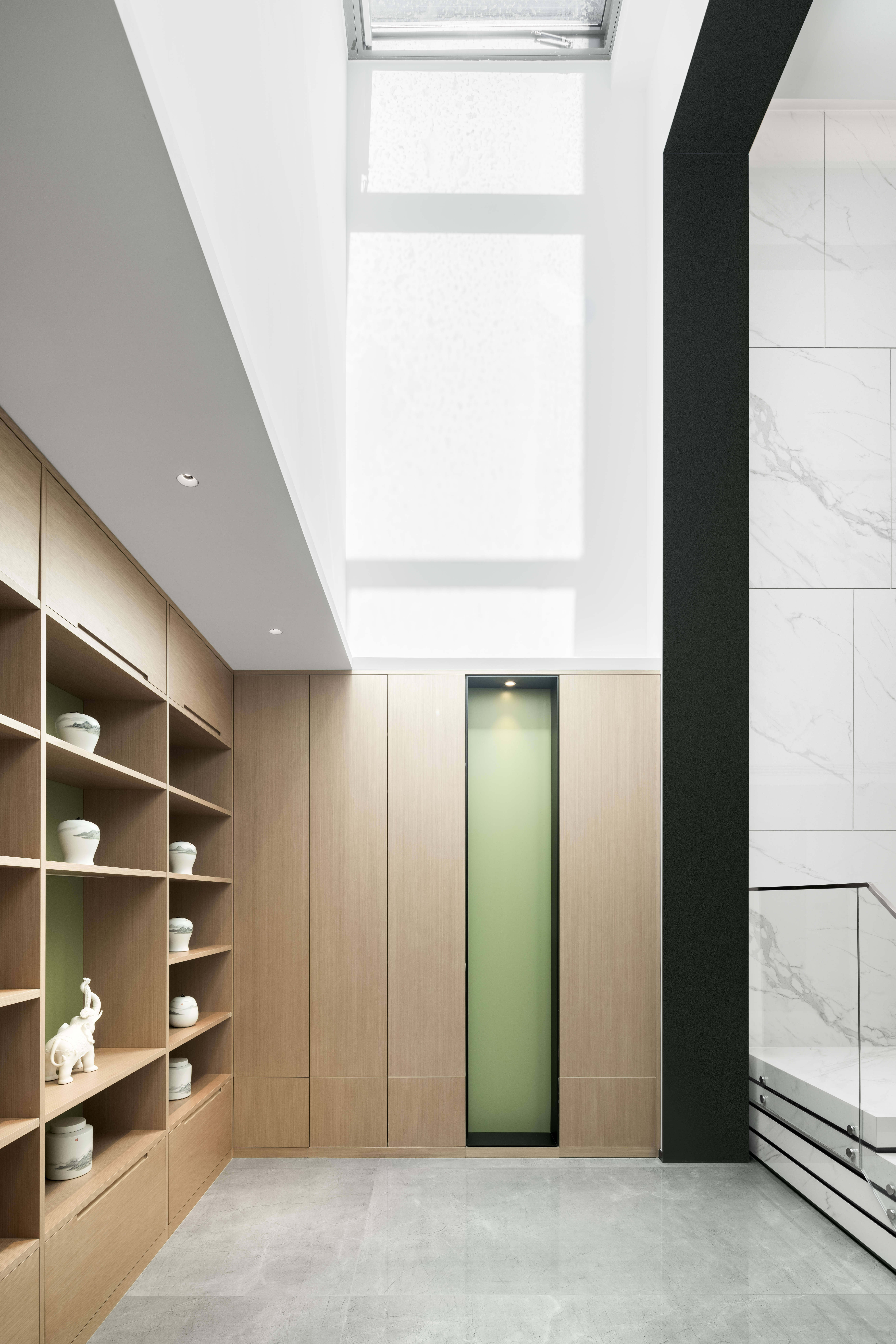 东方极简美学 这栋上下5层、近750㎡的私宅,结构宏伟,内部线条明朗,色彩透露出亲和友善。凝视墙面的大理石纹理、松树的角度、台阶的高度,感受设计师用造物的精神去打造一个空间。将六口人的舒适宜居建立在高度的秩序感中,这种精心的编排设计,为居住集体创造出一种自由感和空间尺度,美从细节中浮现出来,剩下的只需要适度的装饰即可。