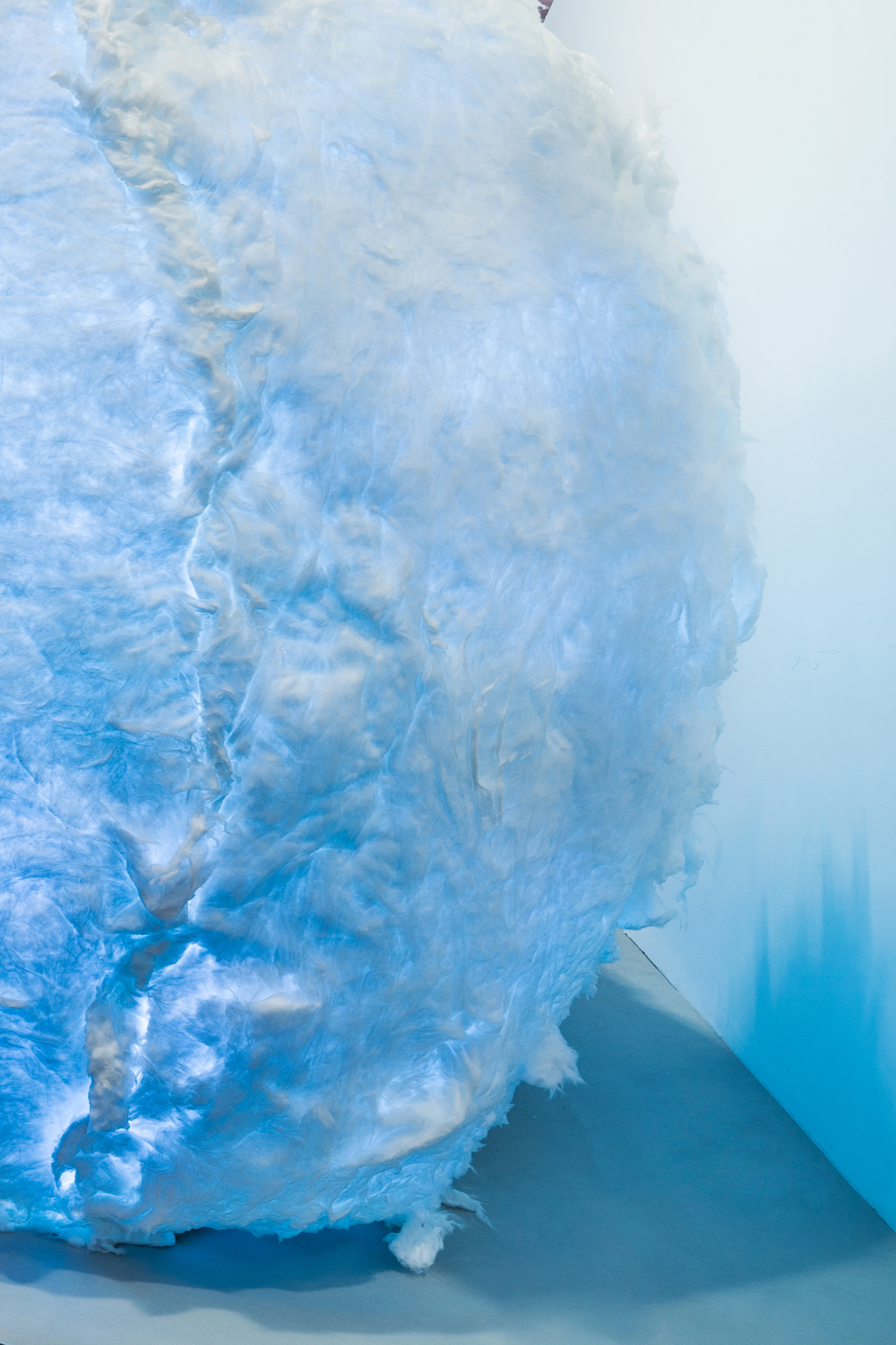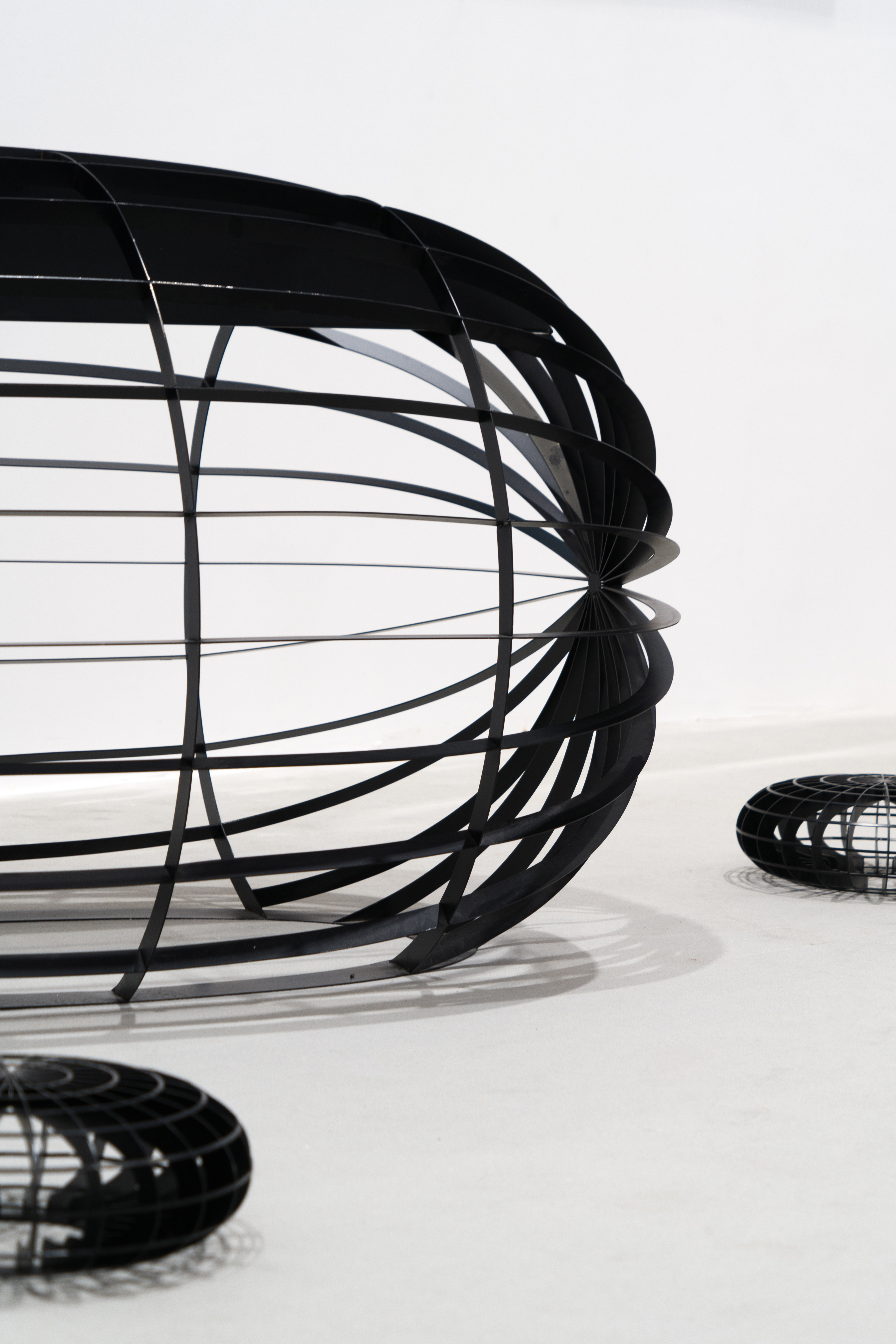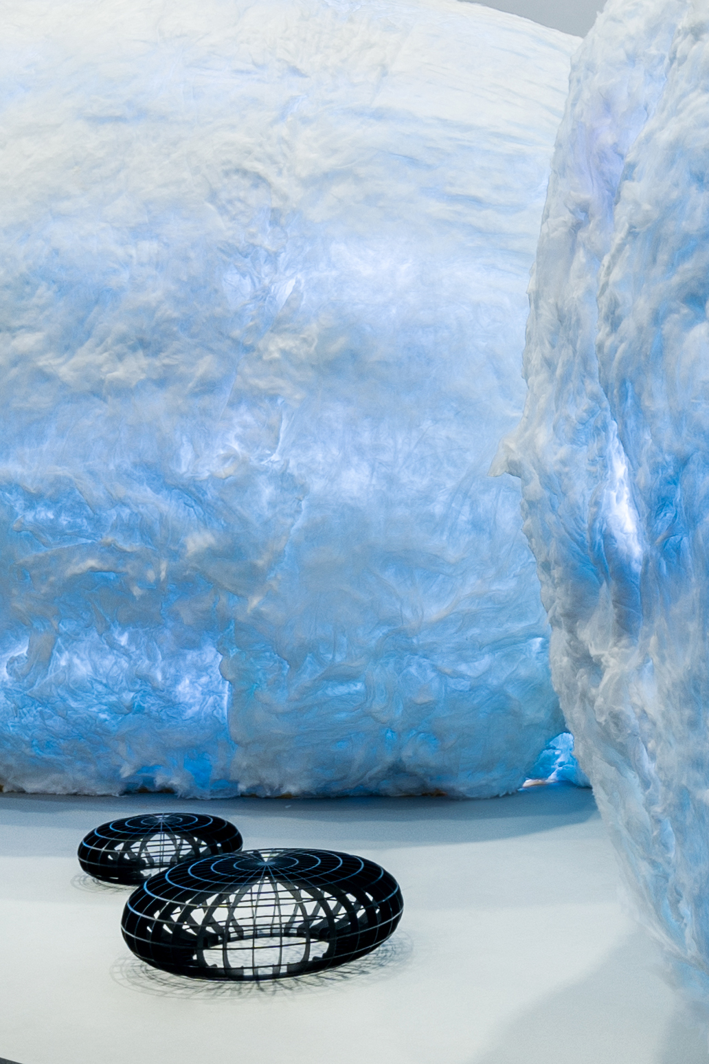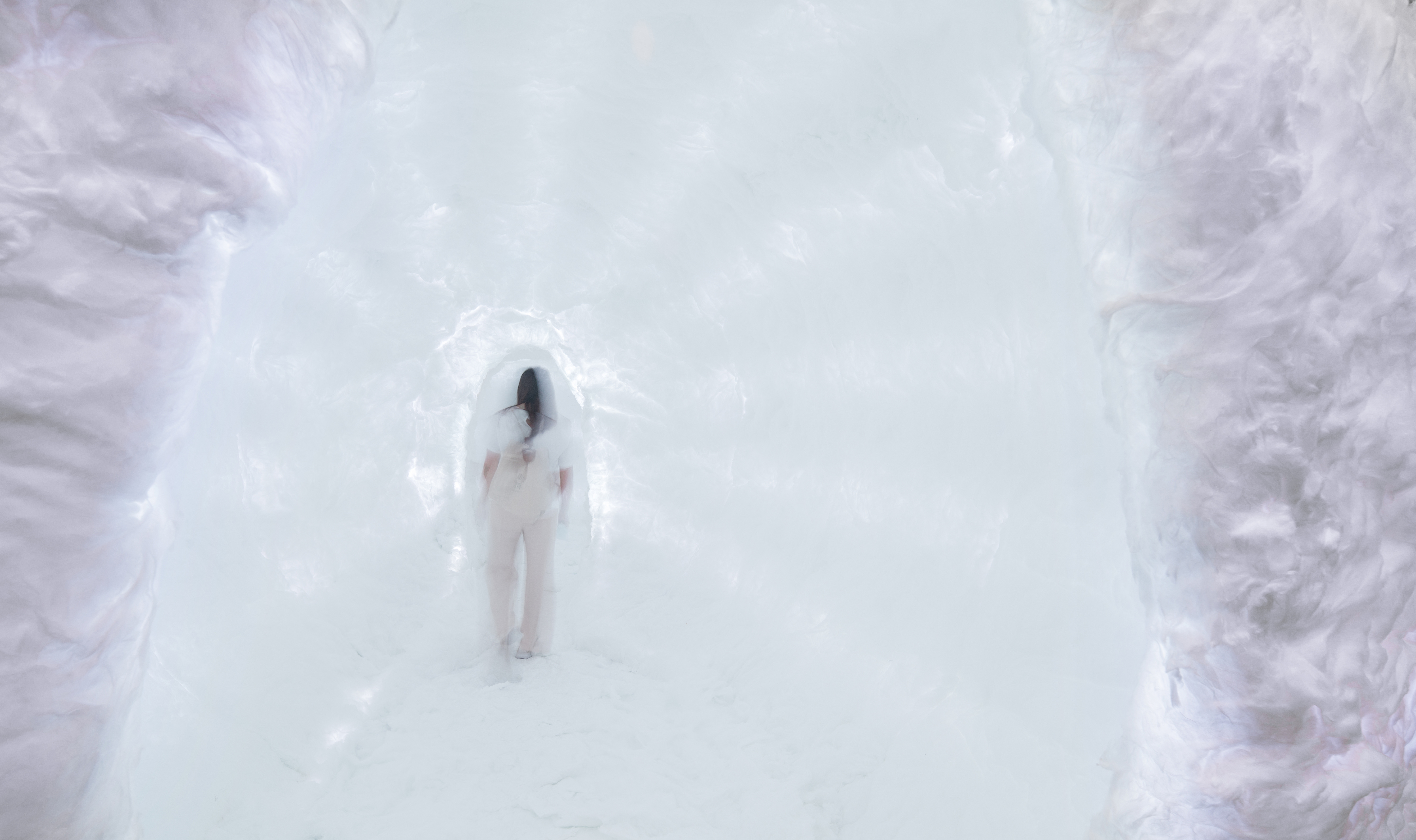 空间布局:整个作品由两个相连的巨大“蚕茧”组成,两茧相通,并有出入口,方便人进入“茧”中体验。
