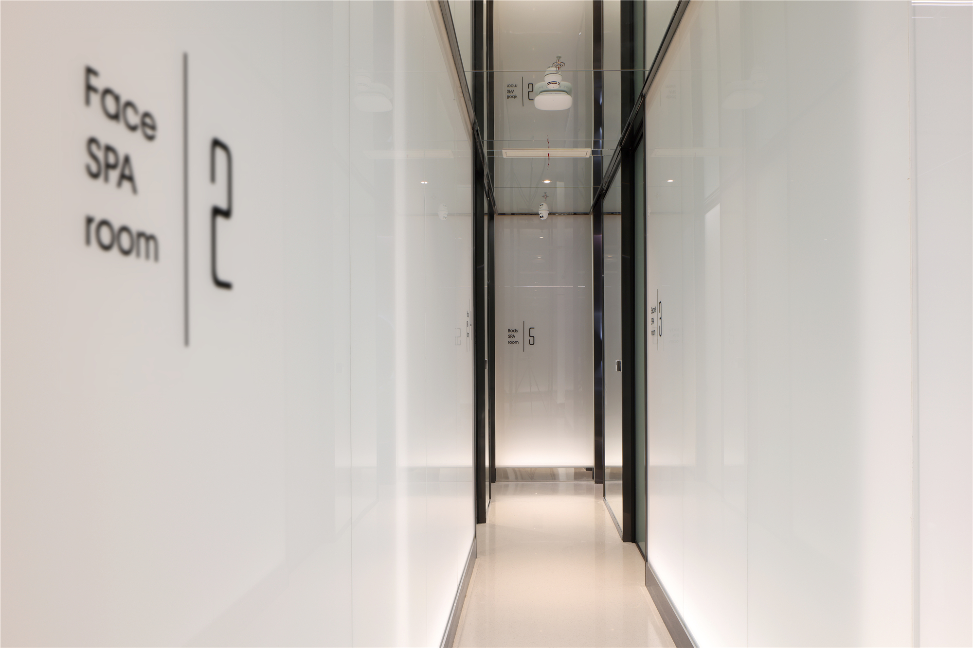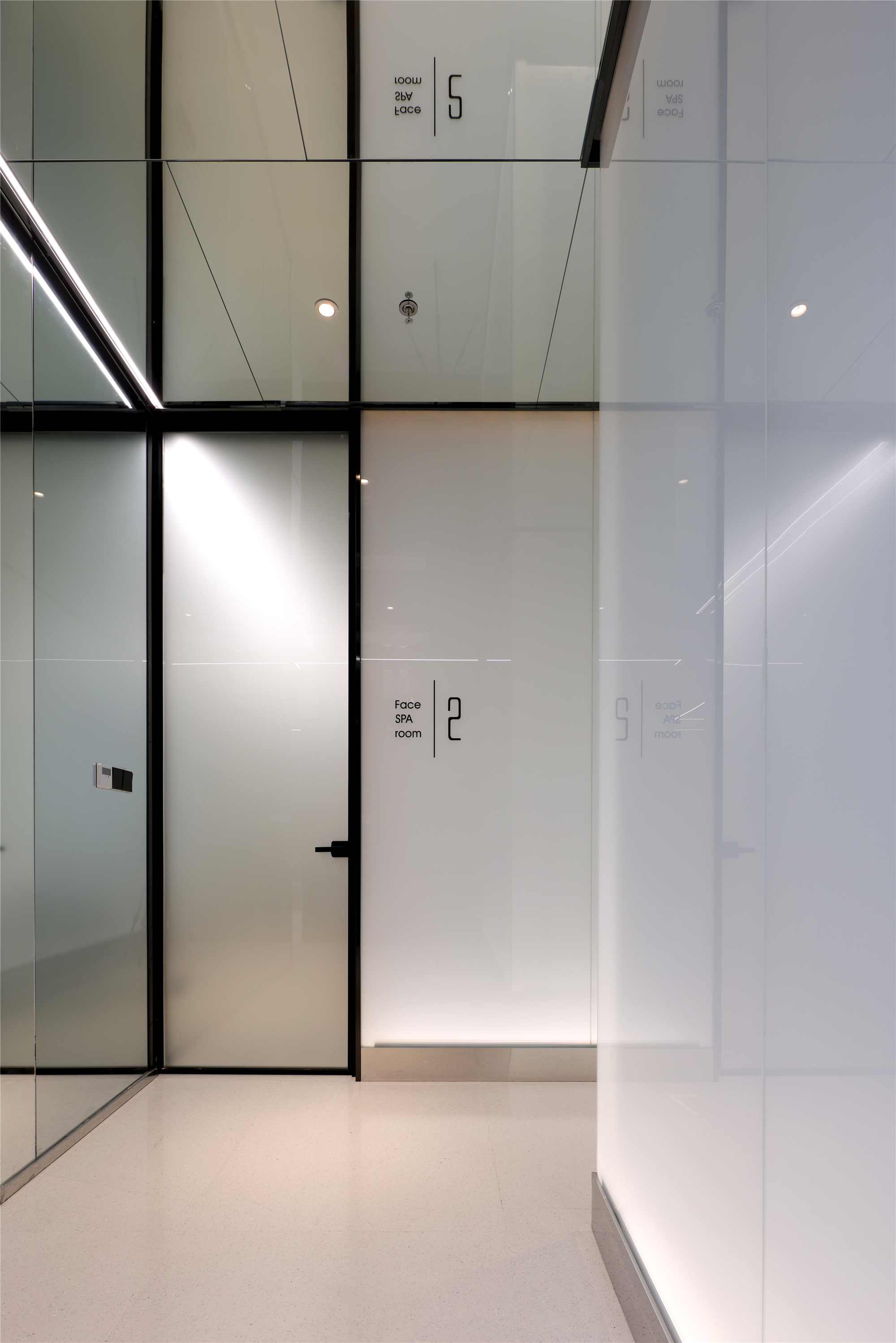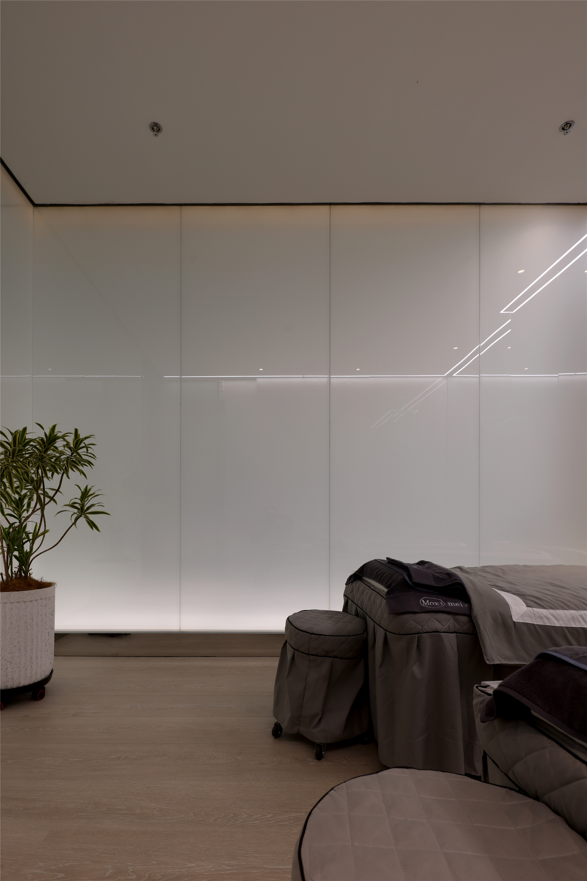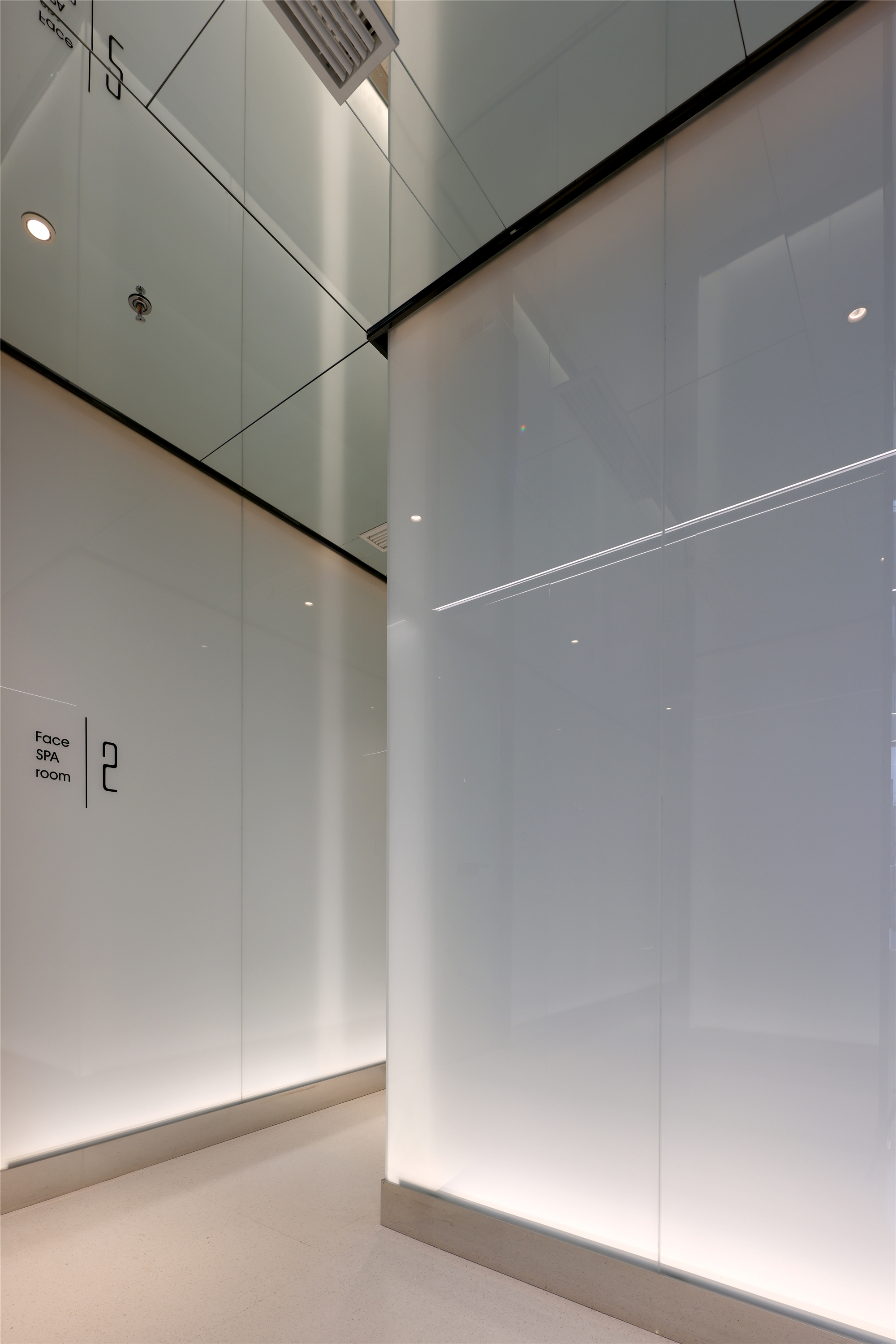 用户体验:走廊及VIP室使用了白色烤漆玻璃,底下微微泛出的白光,让整个空间更仙更静更显净!