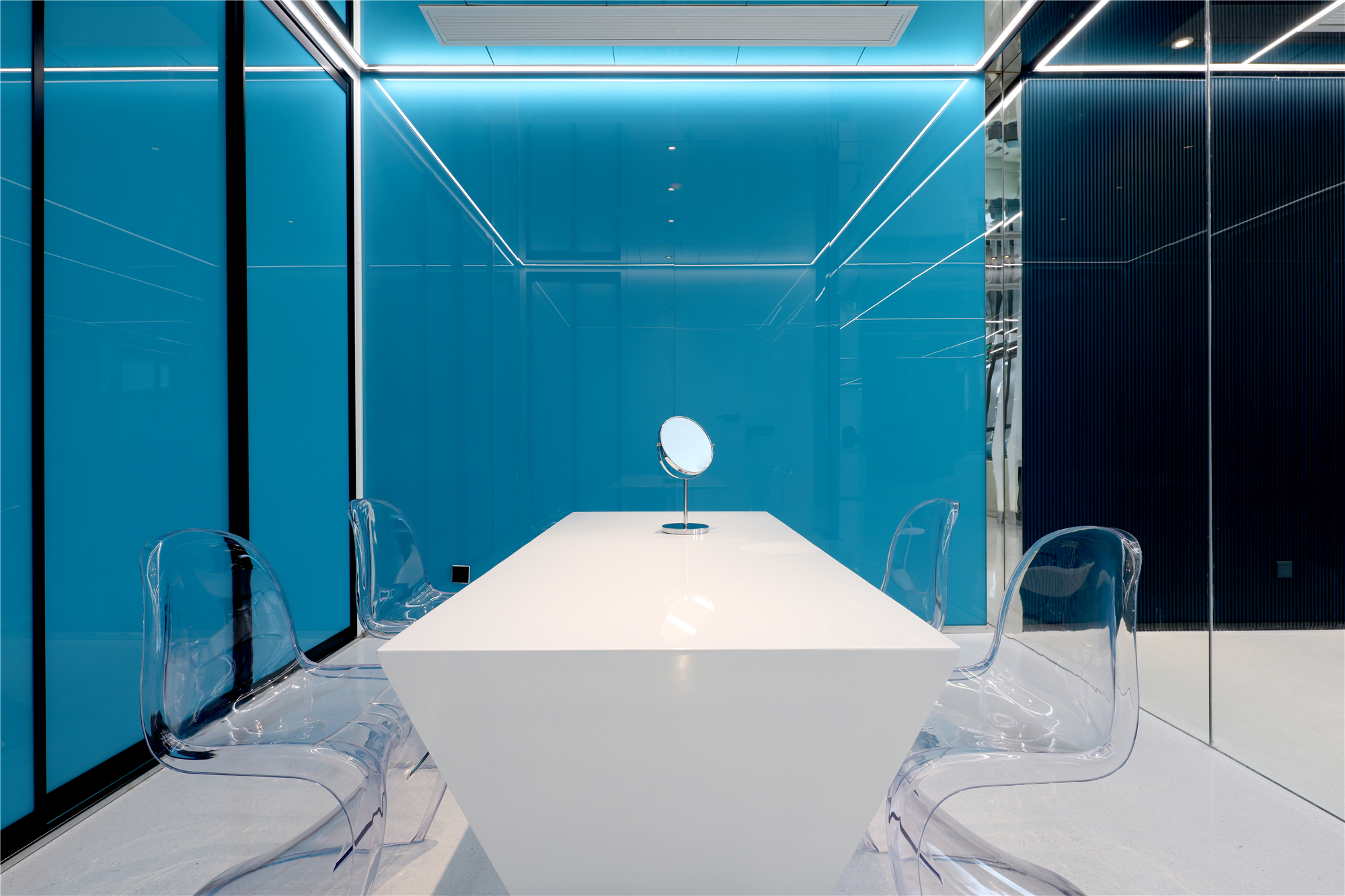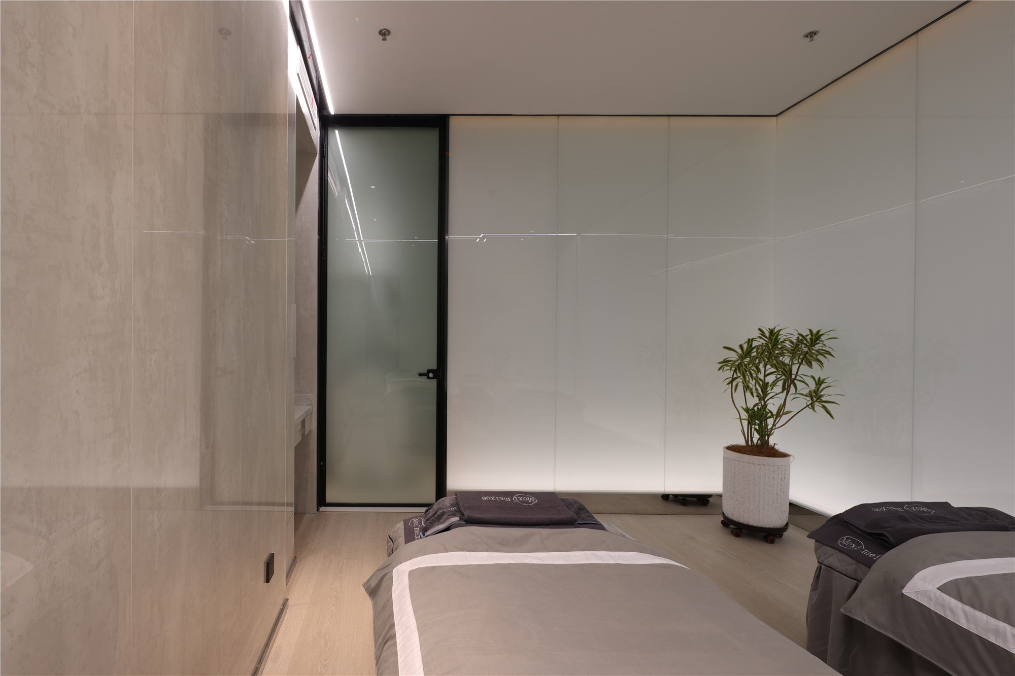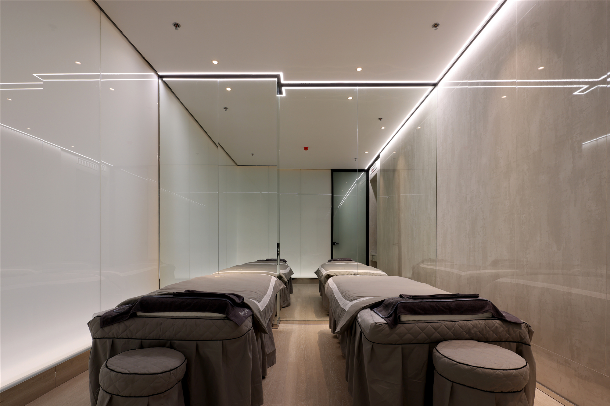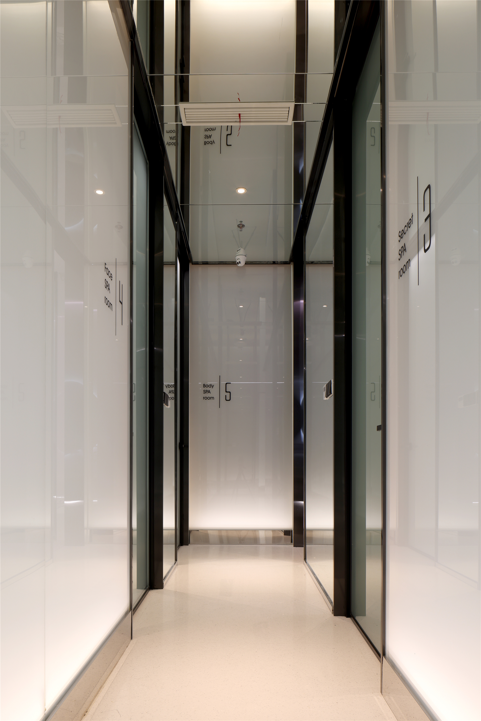 用户体验:走廊及VIP室使用了白色烤漆玻璃,底下微微泛出的白光,让整个空间更仙更静更显净!