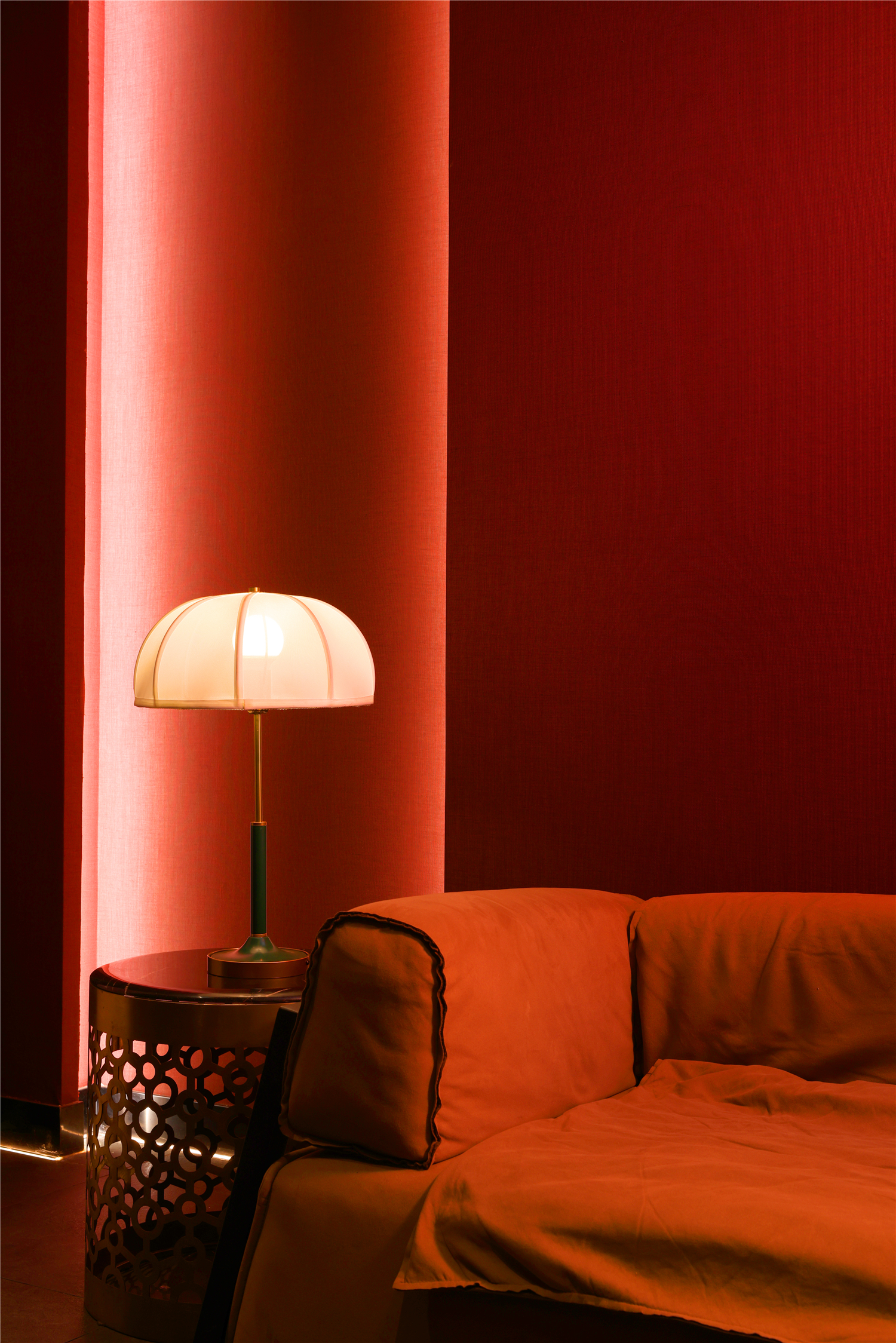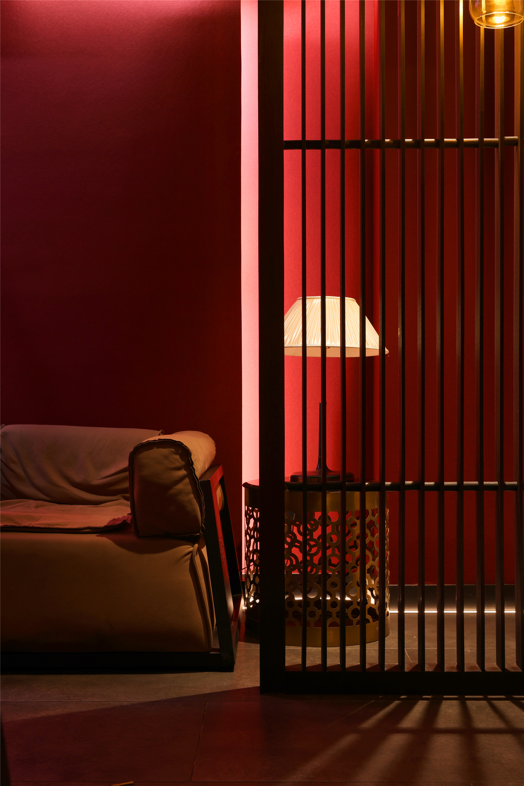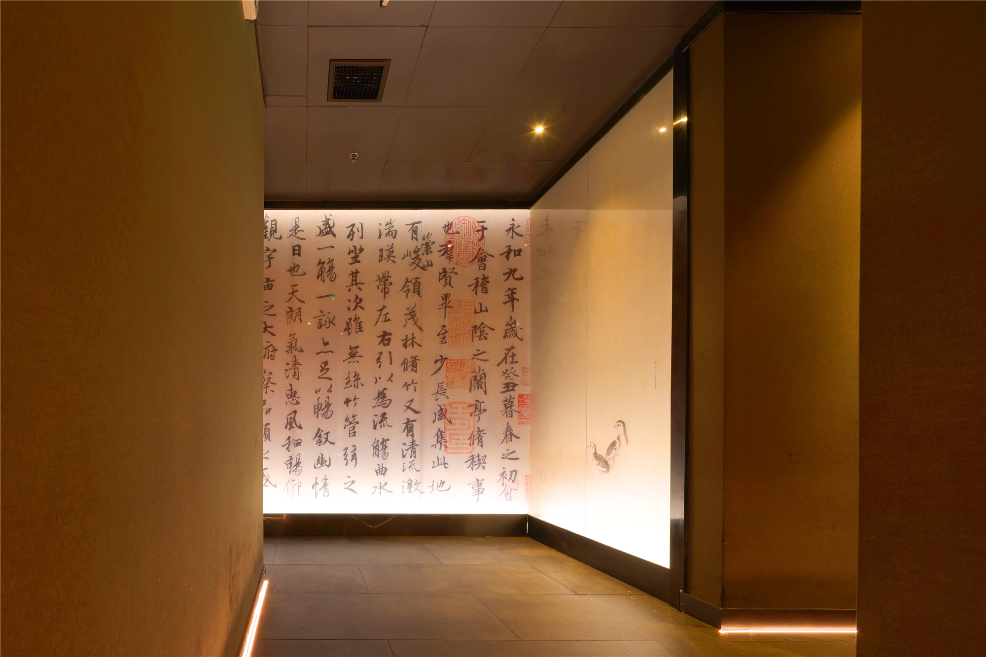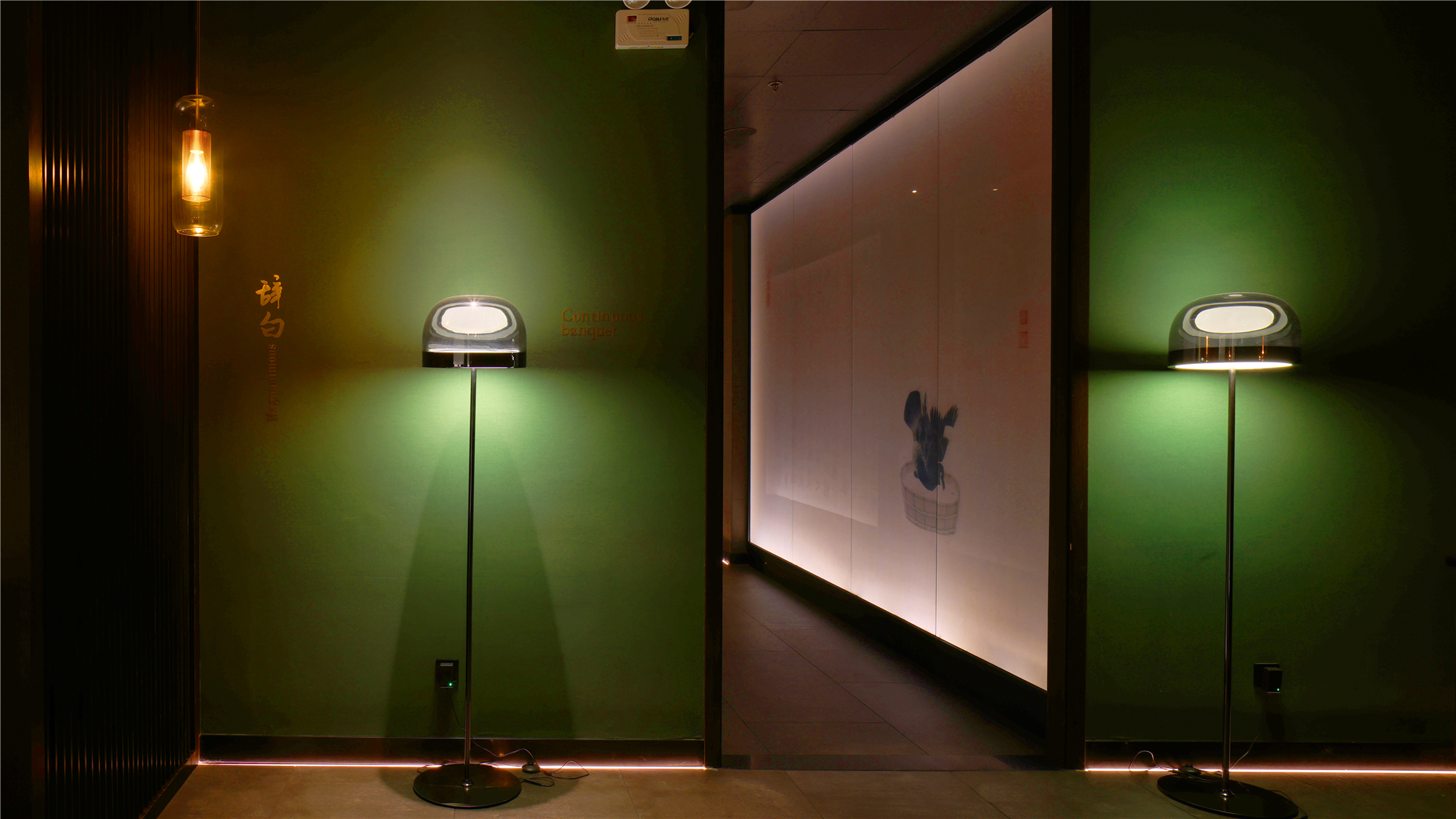 空间布局:区别于一般酒店包厢的富丽堂皇和明亮,我们刻意压暗了色调,让空间宁静雅致,灯光集中在餐桌中心,在就餐过程中形成一种烛光氛围,让菜品质感更好,通过智能化手段,餐厅灯光根据客人就餐的过程分区切换,让客人体验到一种被悉心款待的仪式感每个包厢都分成就餐和休闲2个功能区,特别是最大的包厢,更是具备了戏台的效果,休闲区可以品茶,鉴赏交流书画,扬州清曲評话弹词表演雅集,可以让闲雅懂生活的扬州人在享受美食的同时进行文化社交。