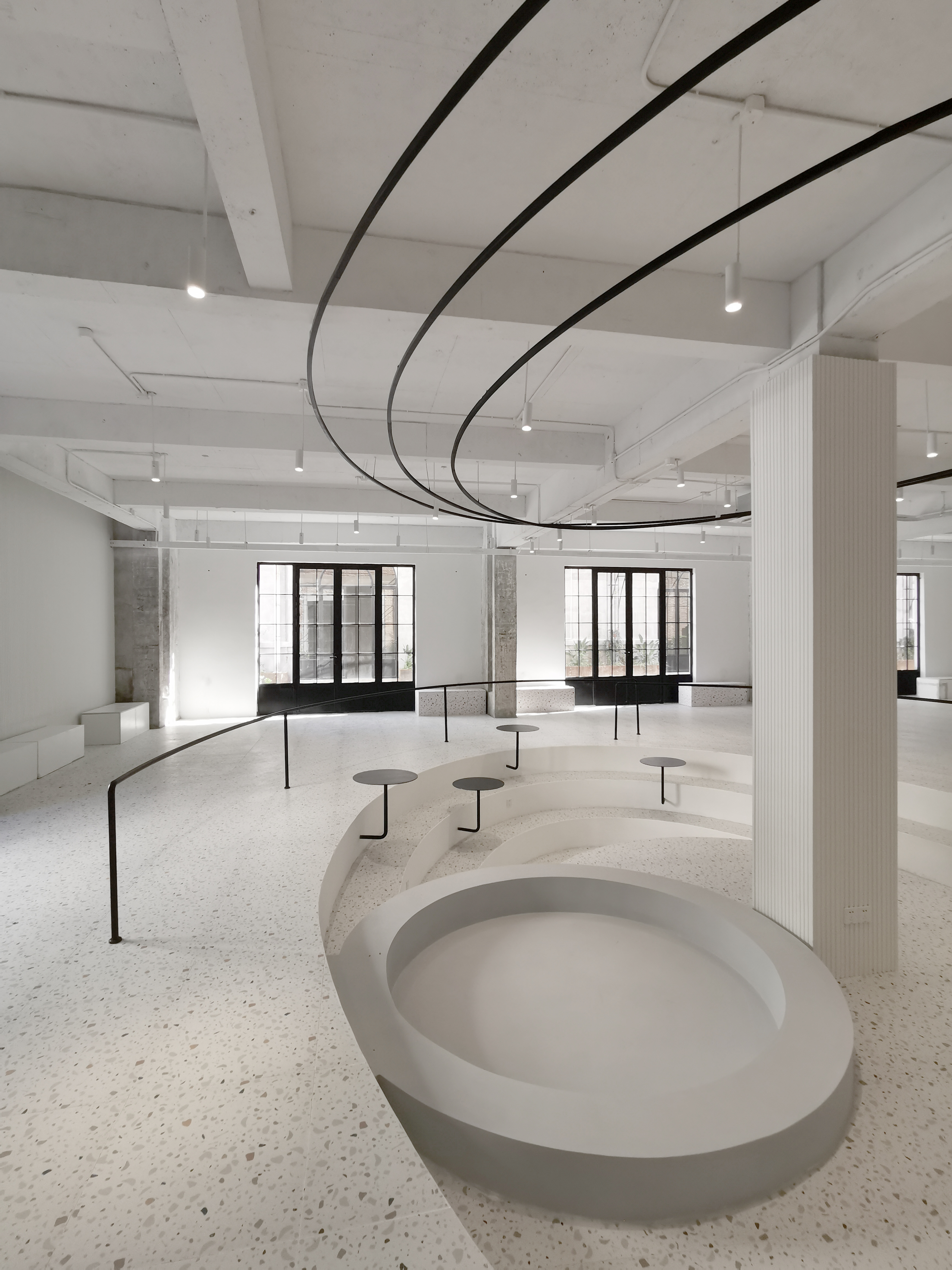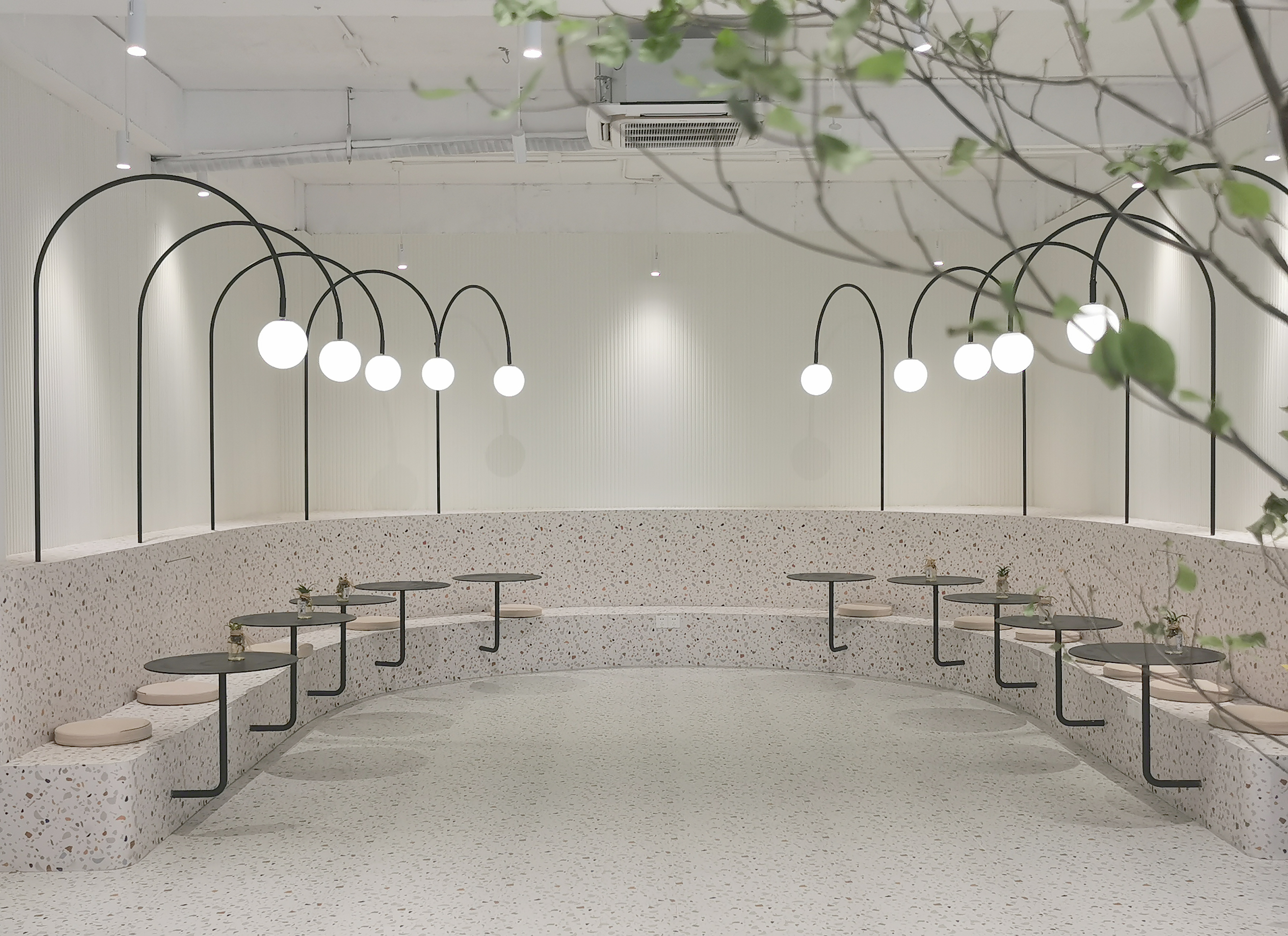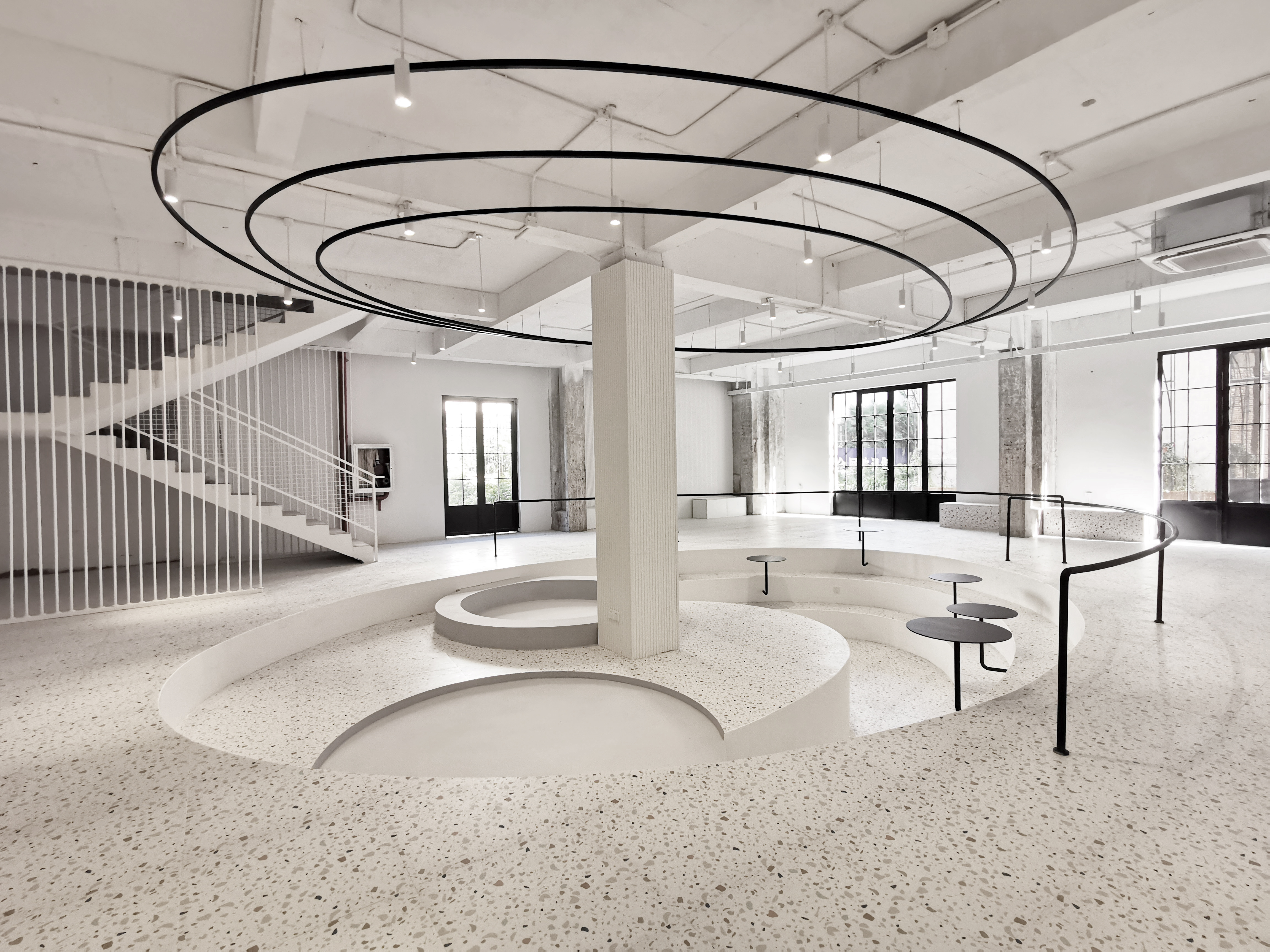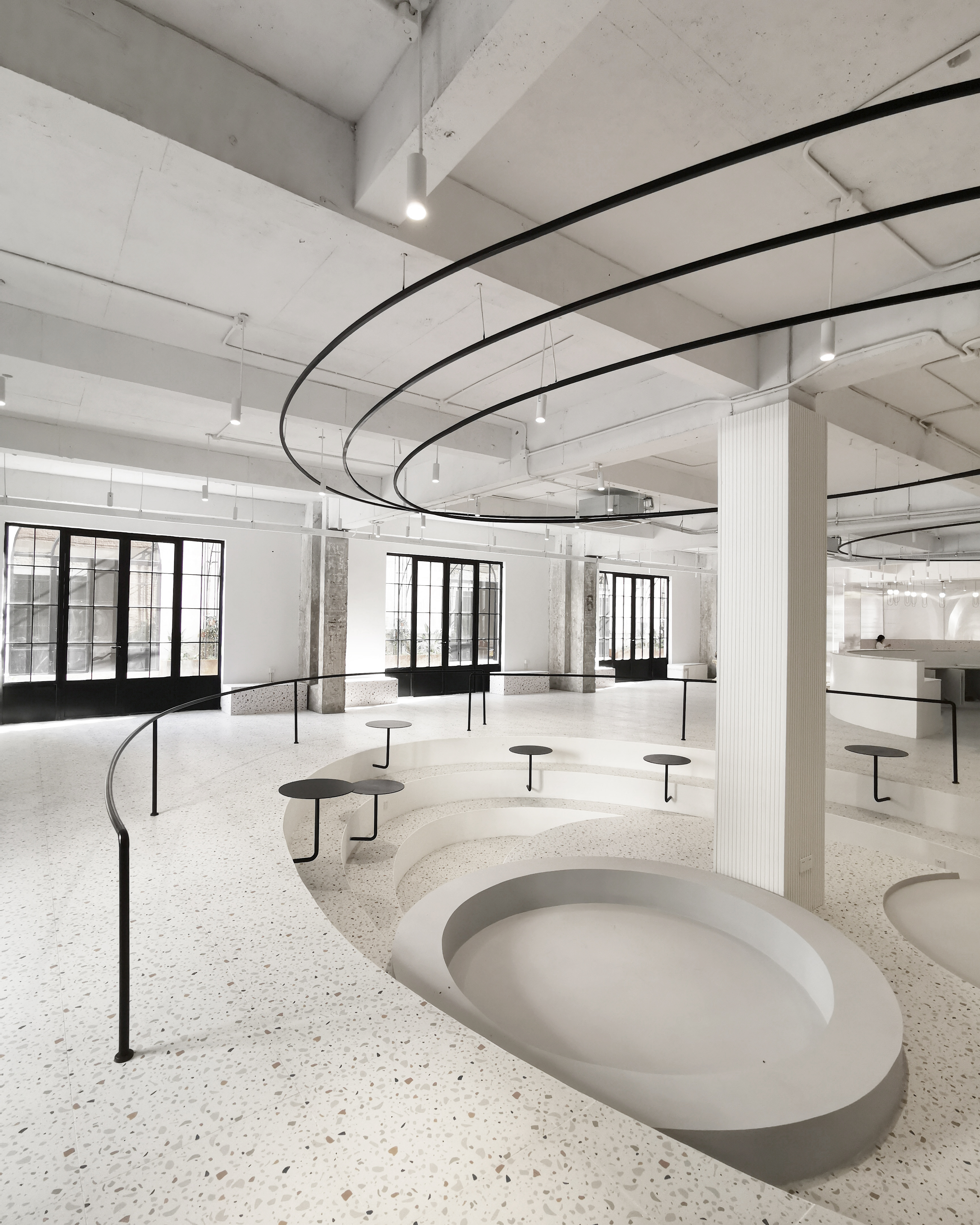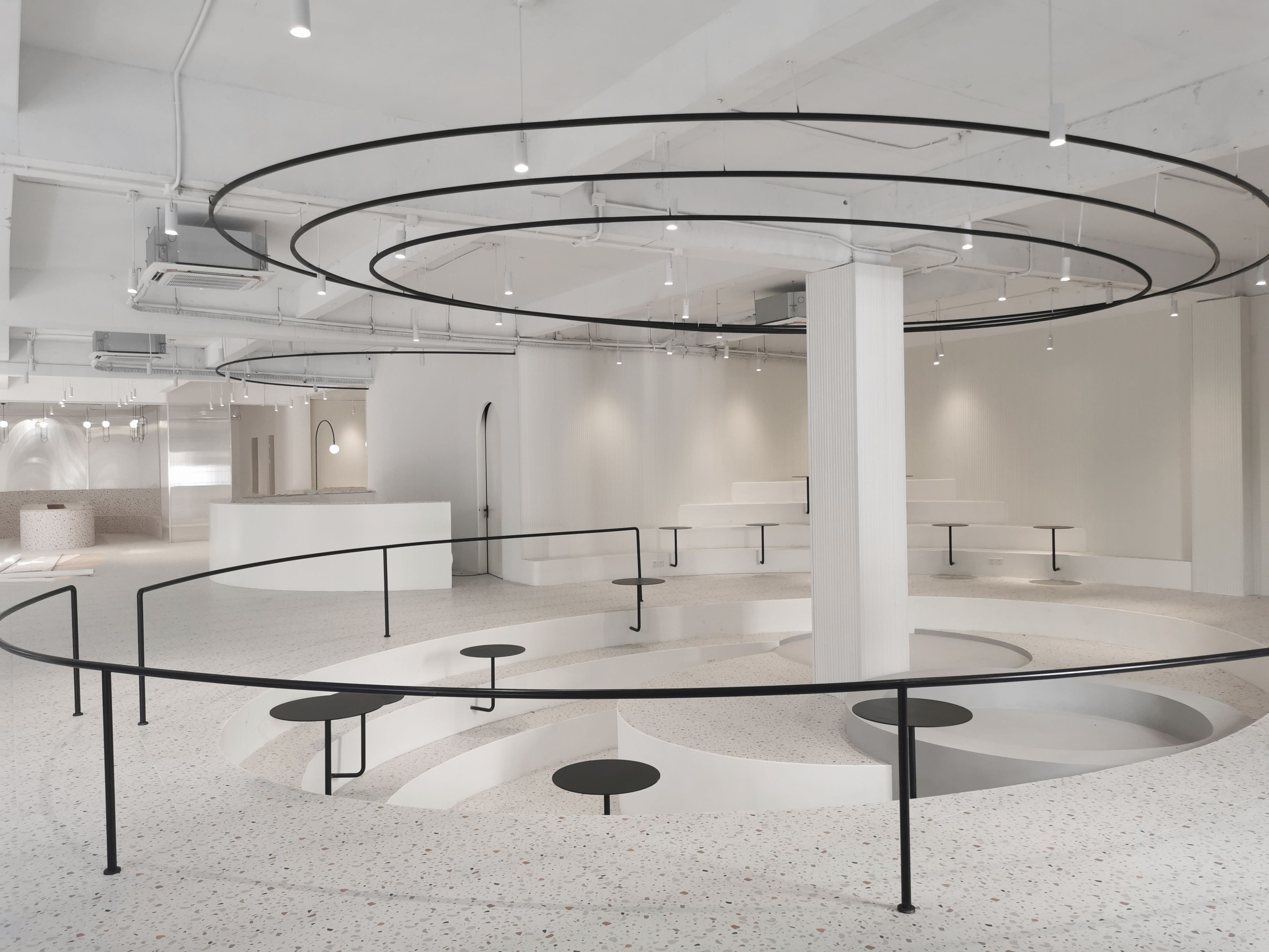 PINWAY咖啡馆是附属于整个4000平方的PINWAY时尚教学校,提供花艺,咖啡,软装设计等教学。对如此复合空间,设计师对这200平方的咖啡馆,提出的概念是提供一张创作的白纸。以白色基调,黑色线为流动的笔墨,让空间流动。
