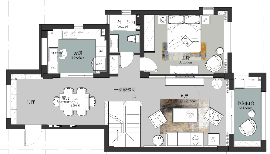空间意境:房子是经典的顶层加阁楼,360度全风景户型,原有户型主卫门洞位置不合理,我们再改变主卧门洞的同时把卫生间门洞位置往南移,规避了过道底端见房门,卫生间门的风水问题。厨房深度偏短,把北阳台打通,扩到餐厅,让就餐空间变得更大。原门厅处房间功能规划不清晰。我们通过进门鞋帽柜及书柜的双向柜代替隔墙,节省空间的同时,各出对应的房间,参加功能。
