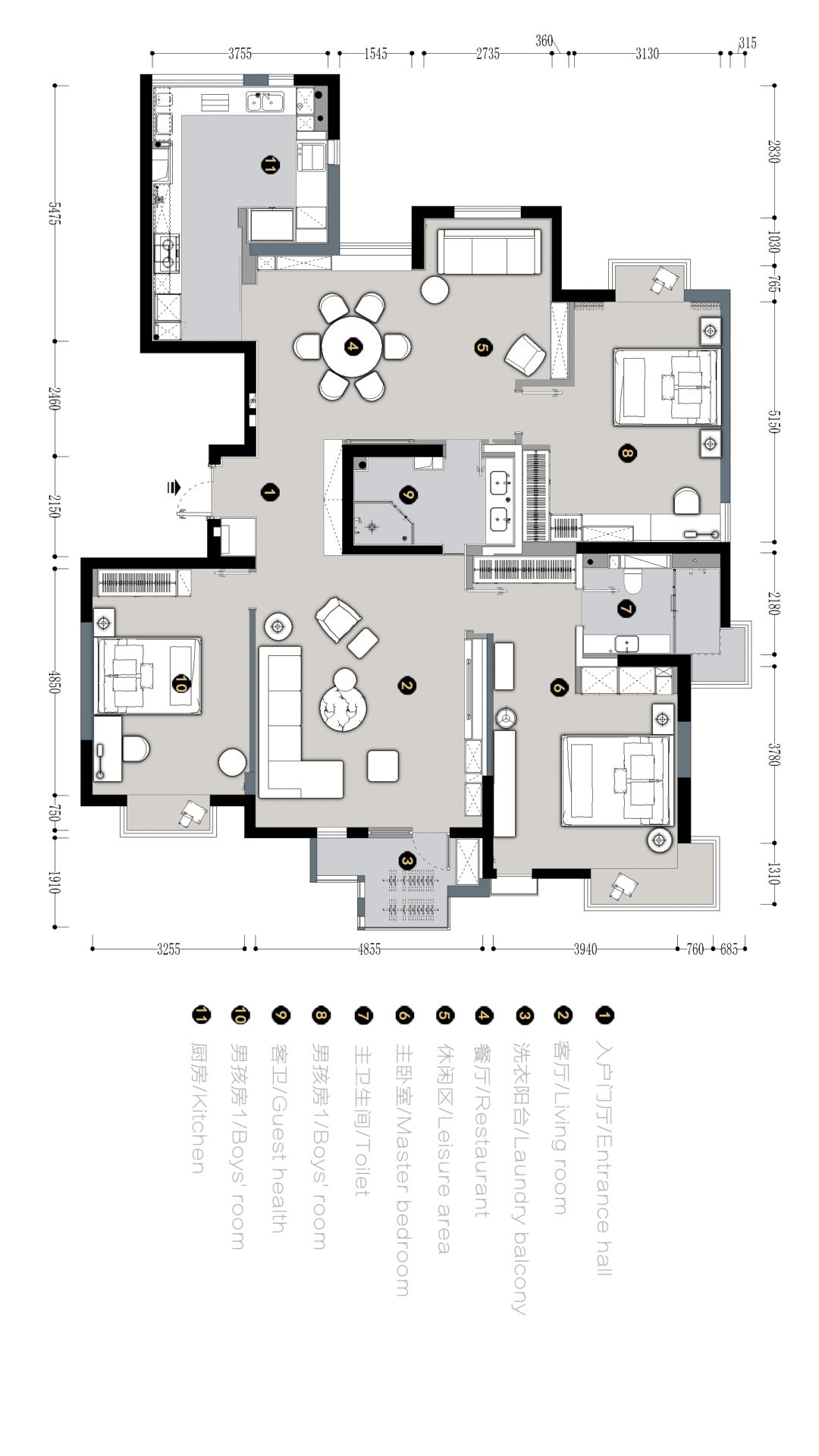 项目定位:该户业主居于楼层中部,具有各功能完备的私人空间,从设计理念上出发,我们希望空间环境具有放松心情的作用,由此设计了一系列现代简约的室内生活空间。