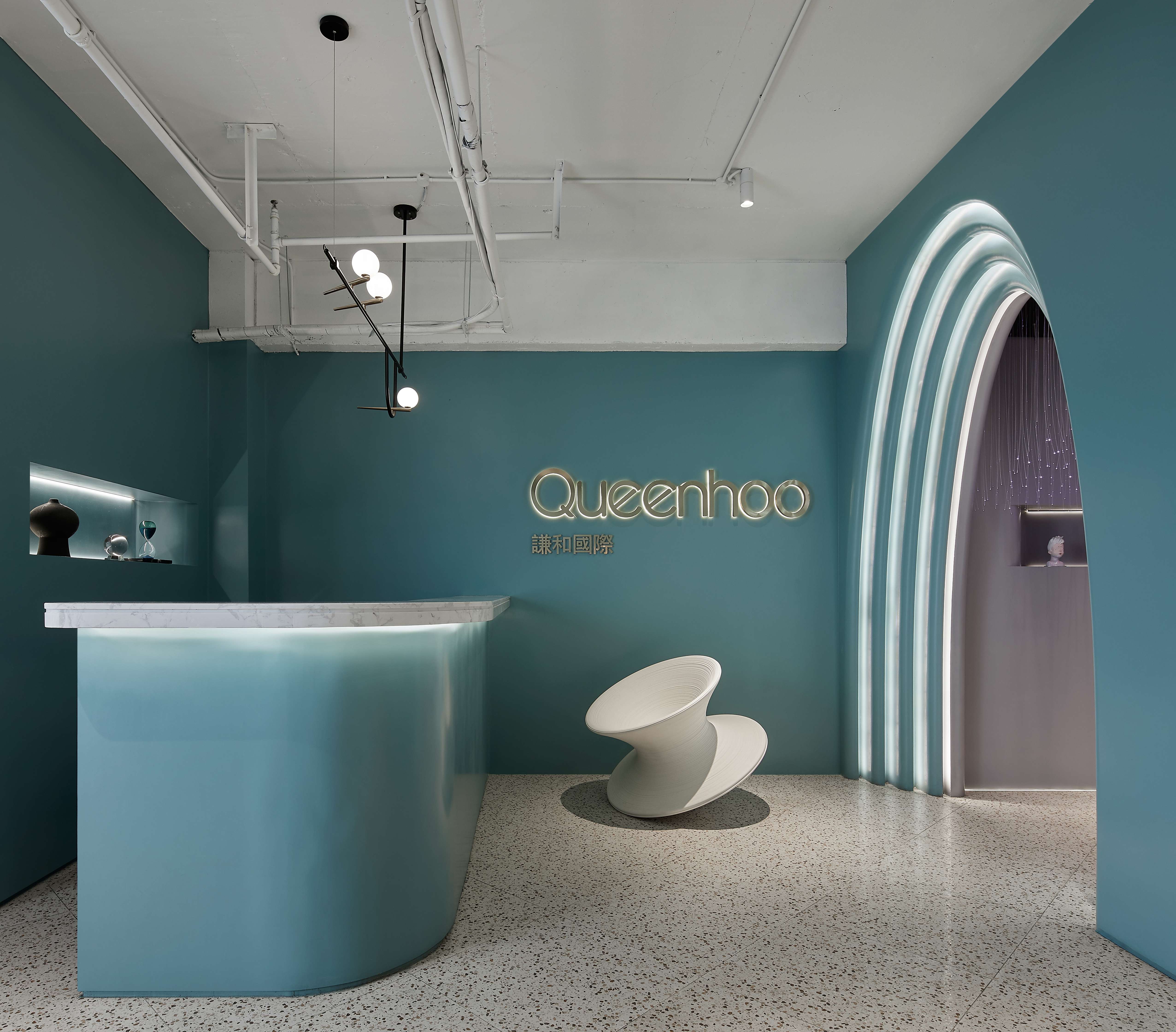 项目定位:Queenhoo(谦和国际)想展现有亲和力的艺术化表现,而项目其本身就有直指人心的内涵需求,承载人性对于美的真切向往,我们有一双发现美的眼睛,同样,我们也有创造美的能力。引入这个想法,加以美学思维对文化与空间诉求进行重塑,让客户在来去之间,能得到现实的满足与精神的升华。利落的视觉块面搭配完成了门头的立面构造,我们希望在人们出入时,通过简洁而大气的环境吸引人们的注意力.整个空间没有多余的造型我们希望让所有在里面的顾客都是这个空间的主角。