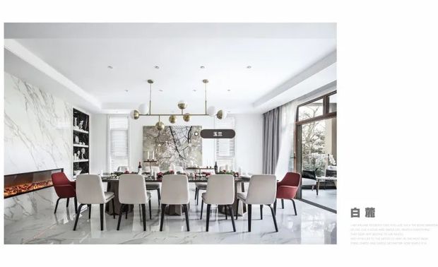 作品《白麓》的餐厅中挂有一幅来自四川雅安的画家侯俊杰的《玉兰》,与室外的树枝交相呼应,好像在墙面开了一扇窗。