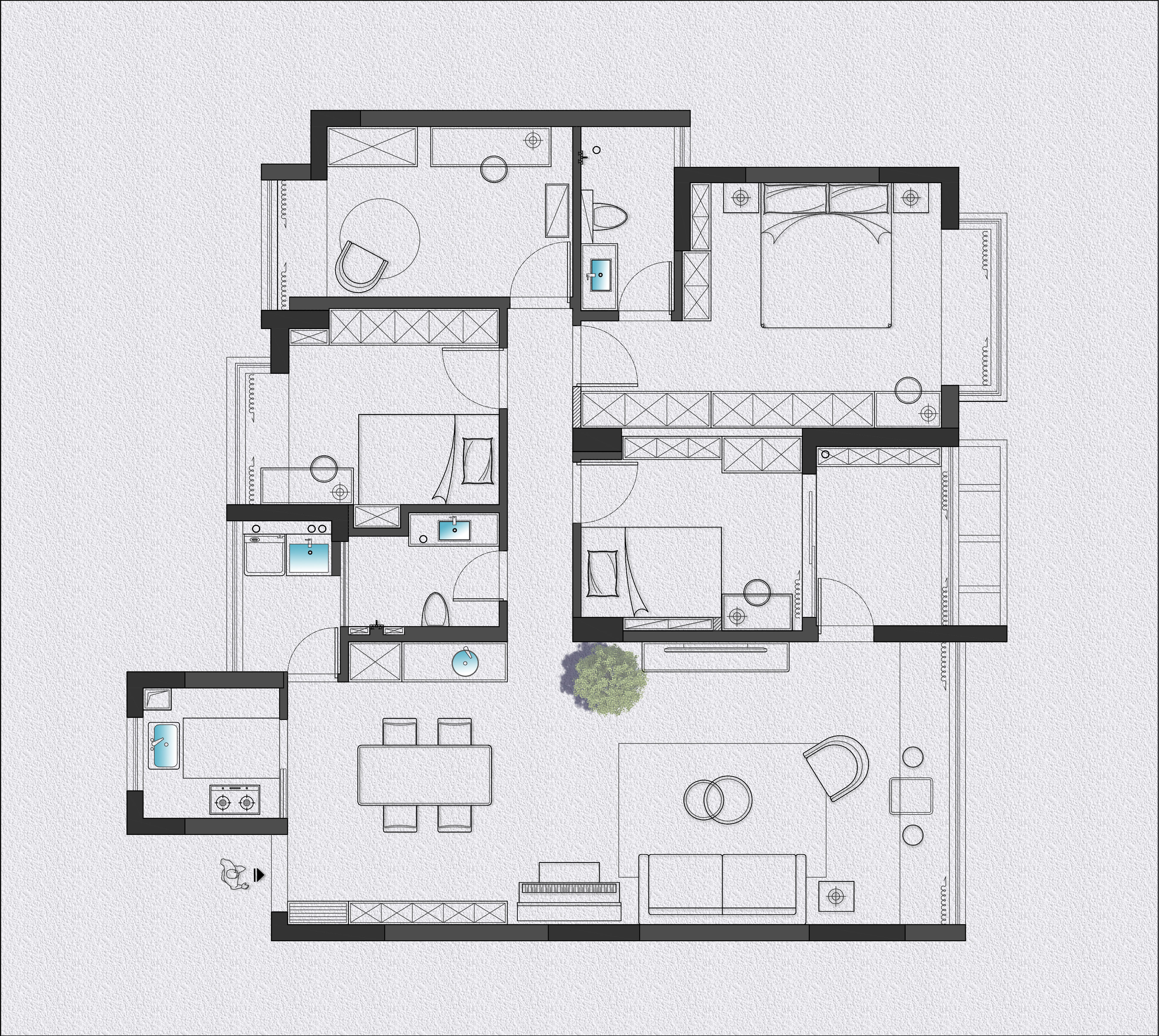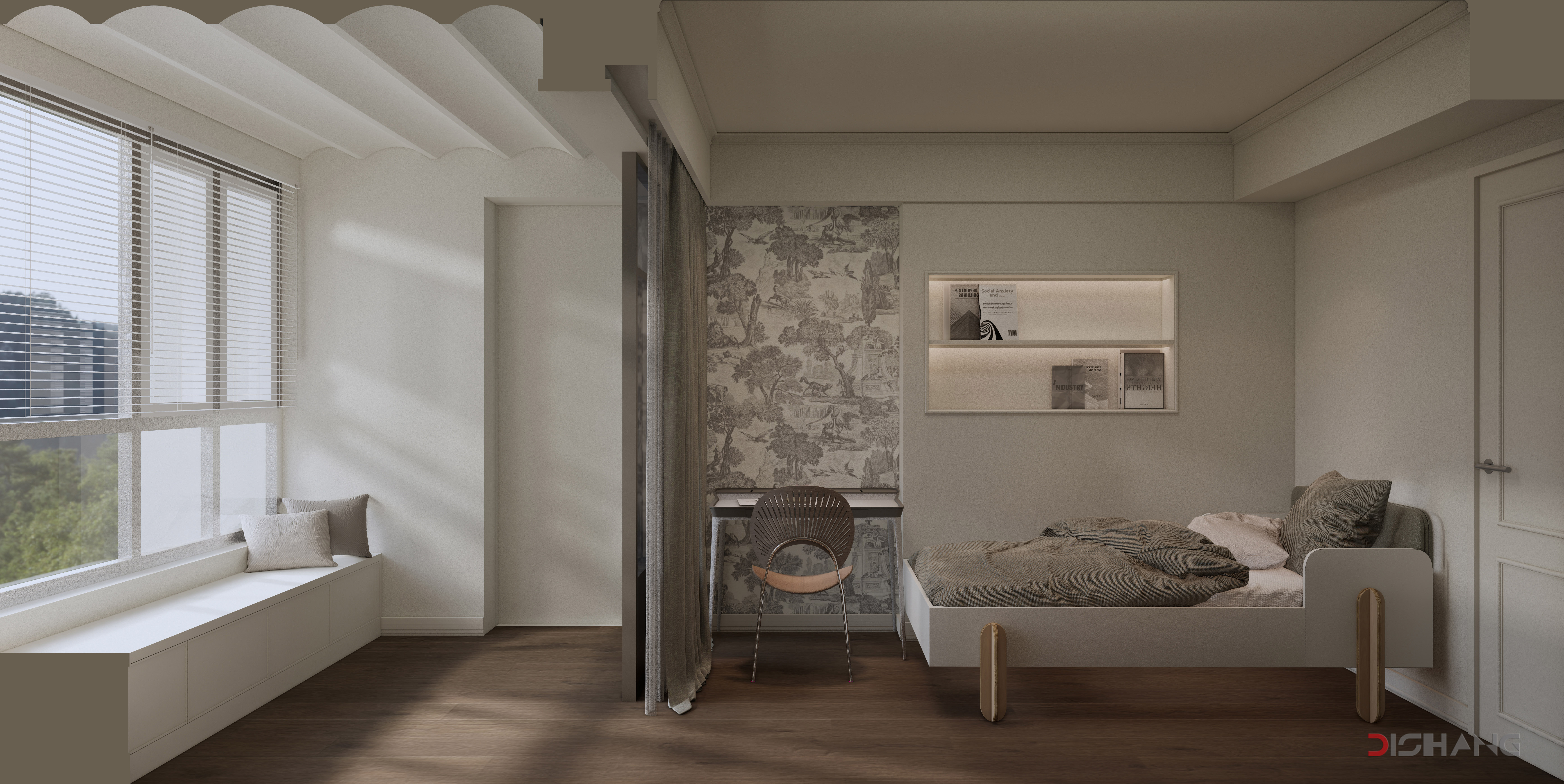 2、大女孩房扩大受光面积,与画室形成回字型动线又增添趣味性;