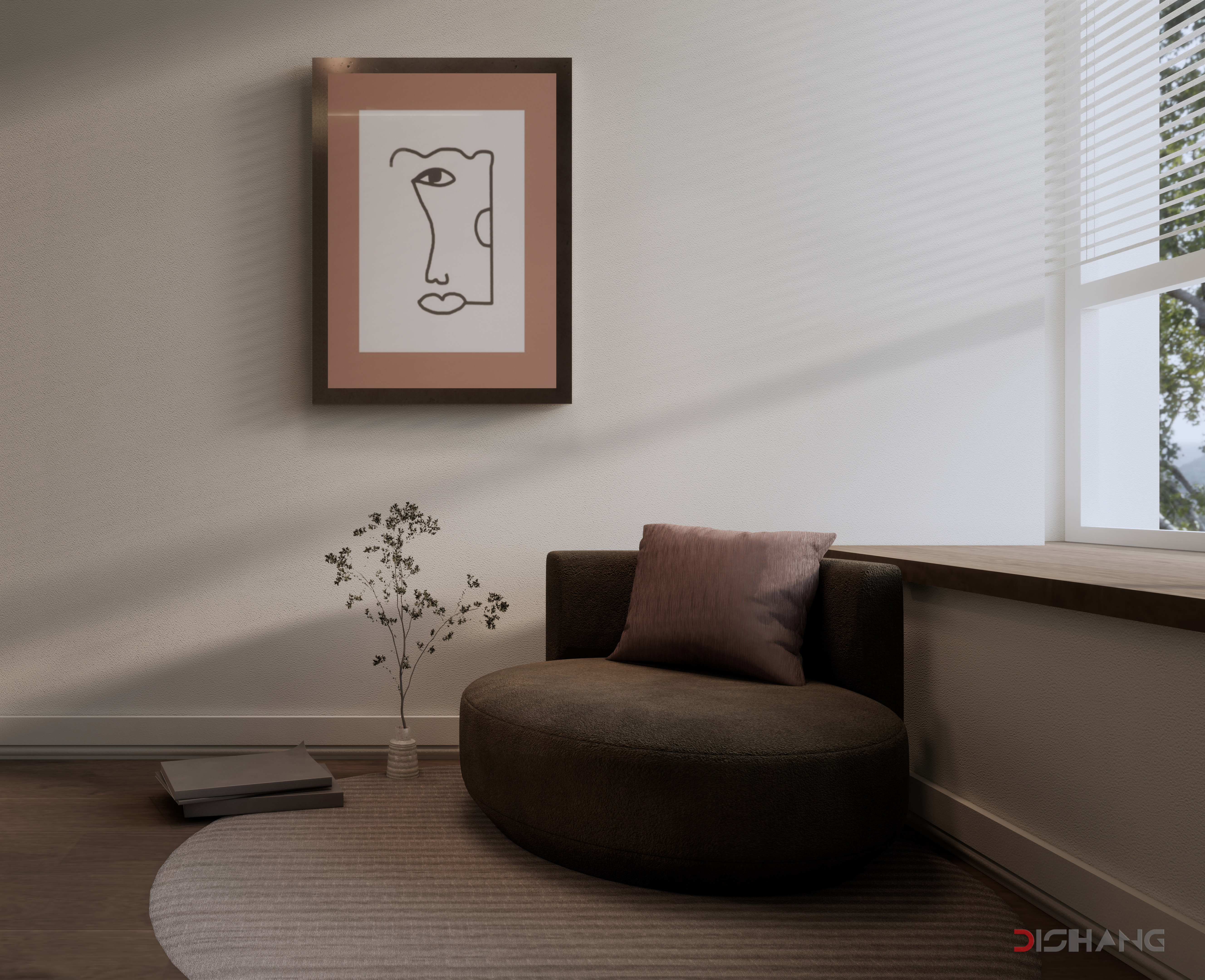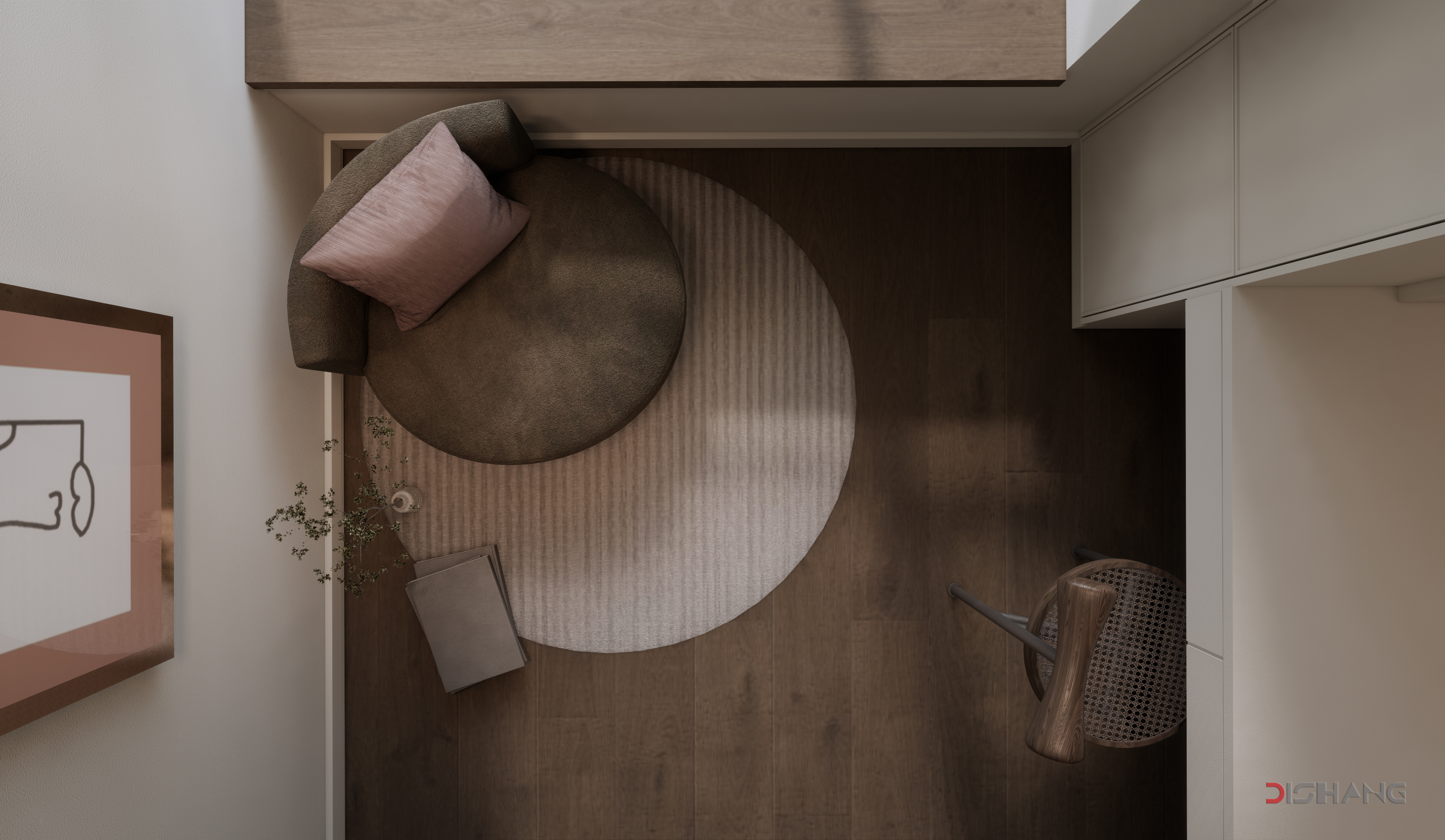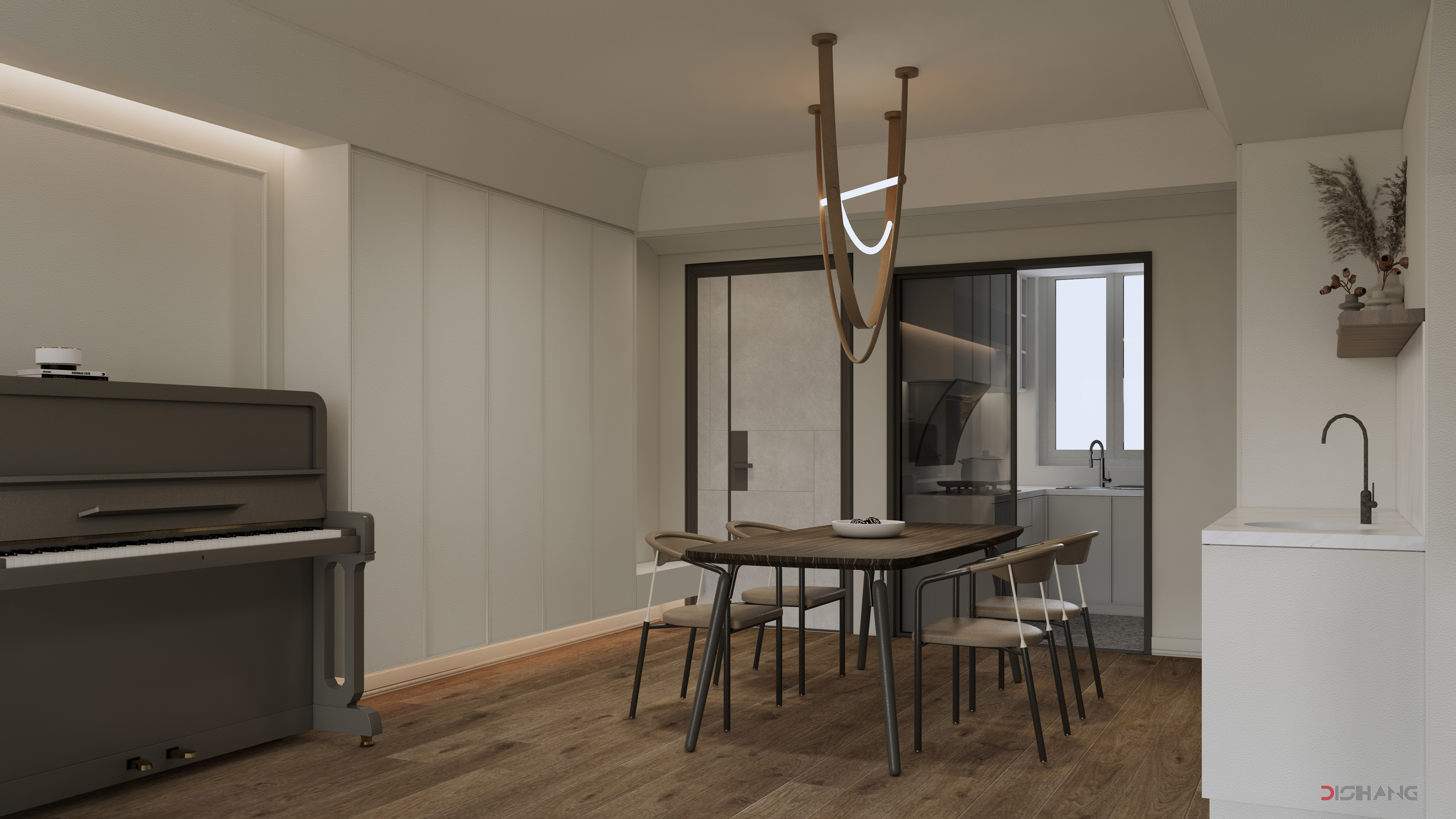 客餐厅配饰简洁质朴、素雅柔和,物与物之间的过渡自然流畅,细腻的感官体验营造了一种时光循环往复的平静感。