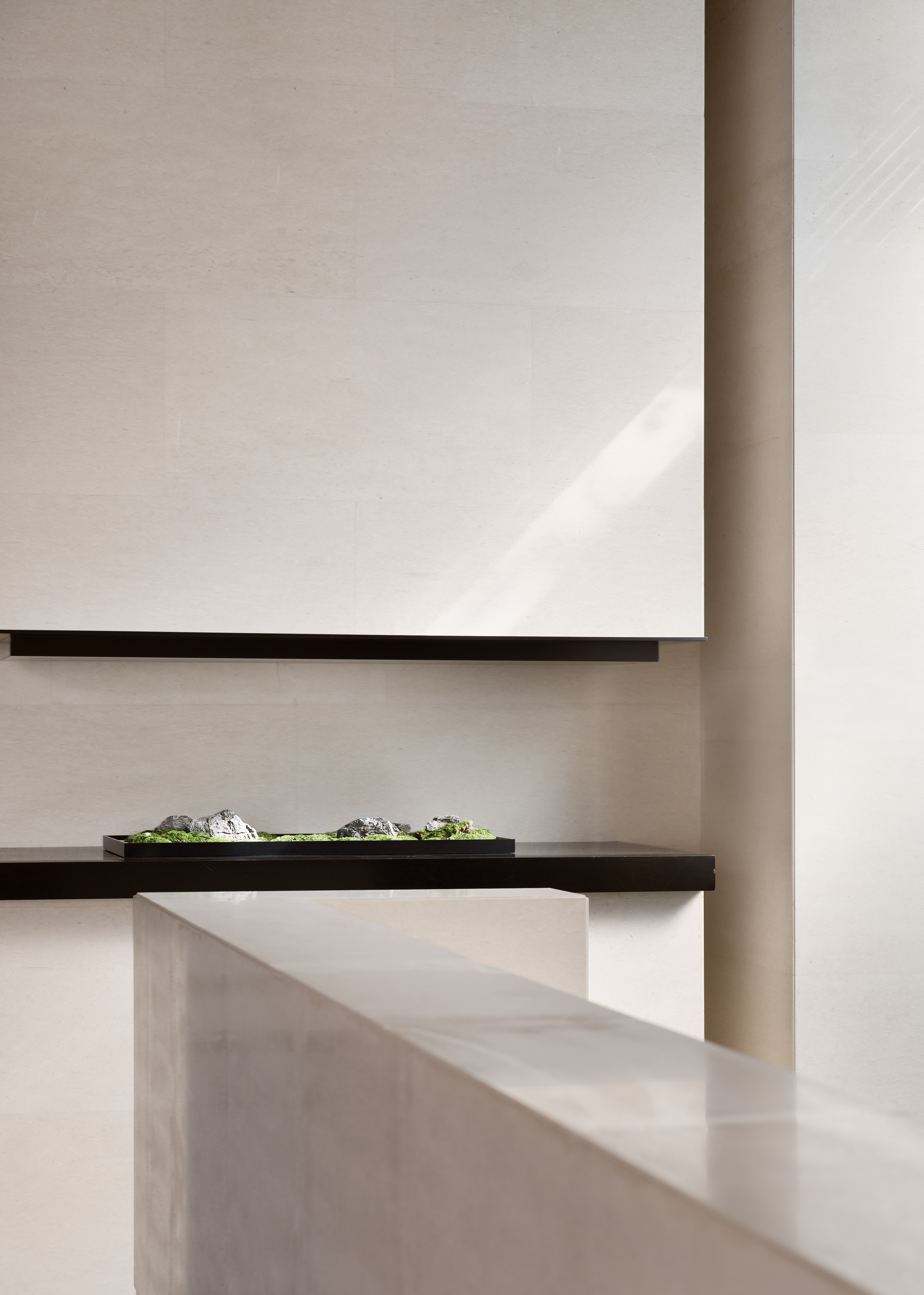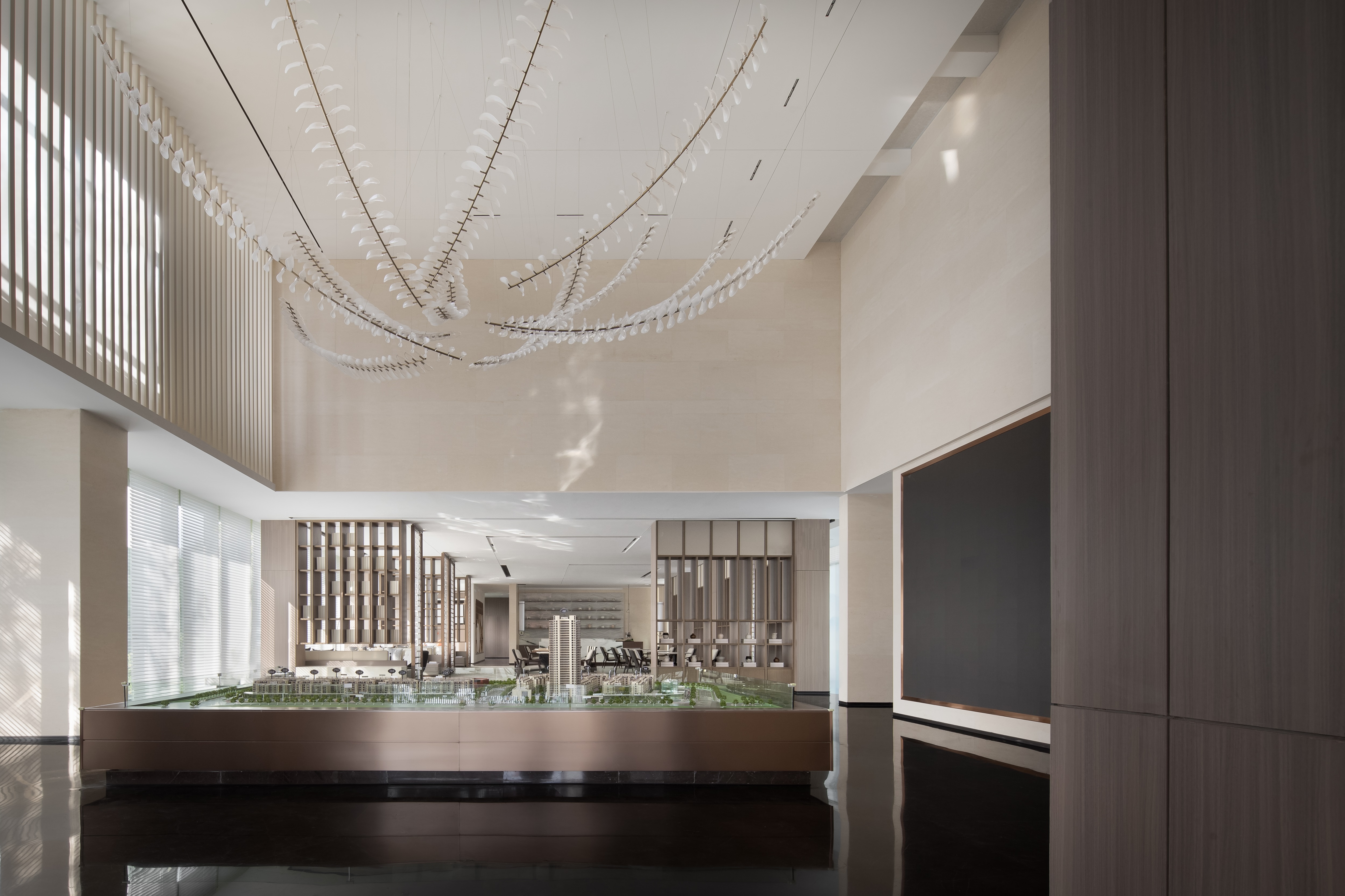 艺术品与陈设巧妙的将现代、历史与文化杂糅,形成丰富的感官体验,在抵达沙盘区之前,优先构建出一个极具现代感,又强调历史衍生的儒雅空间氛围。