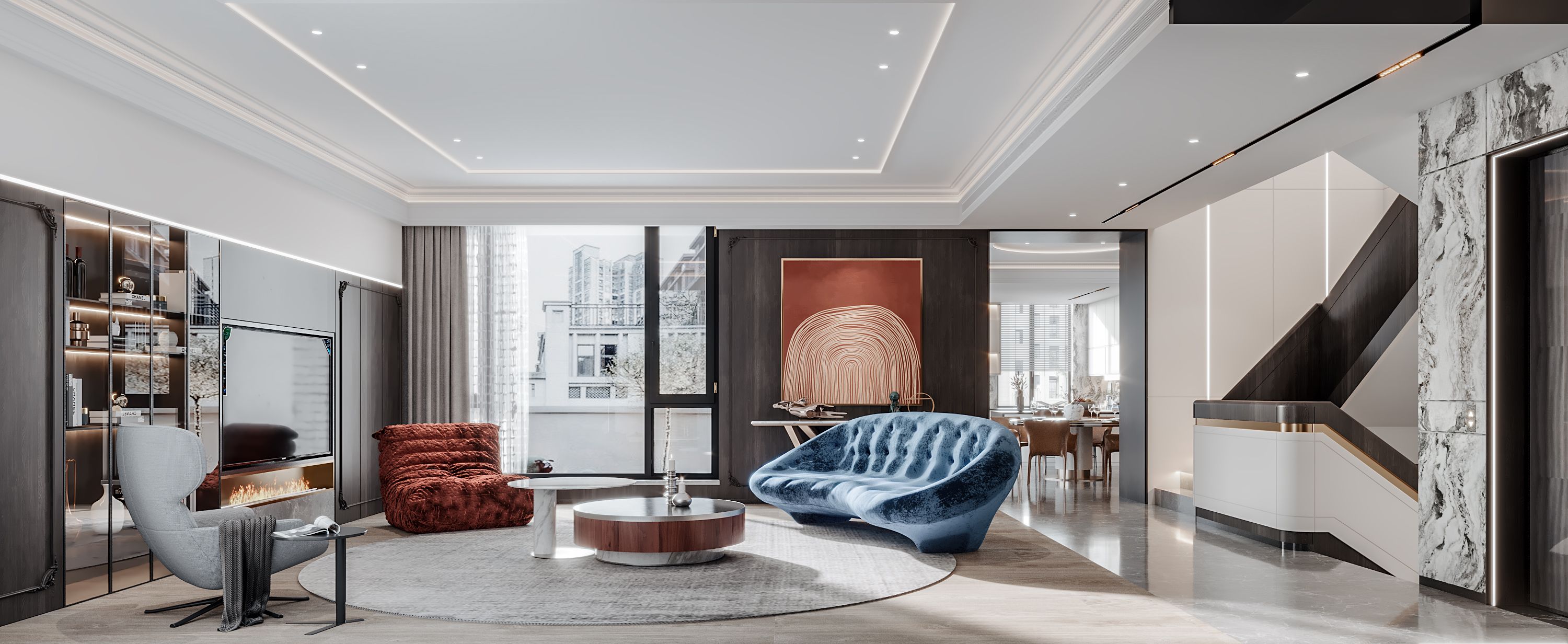 一楼会客厅空间设计↑