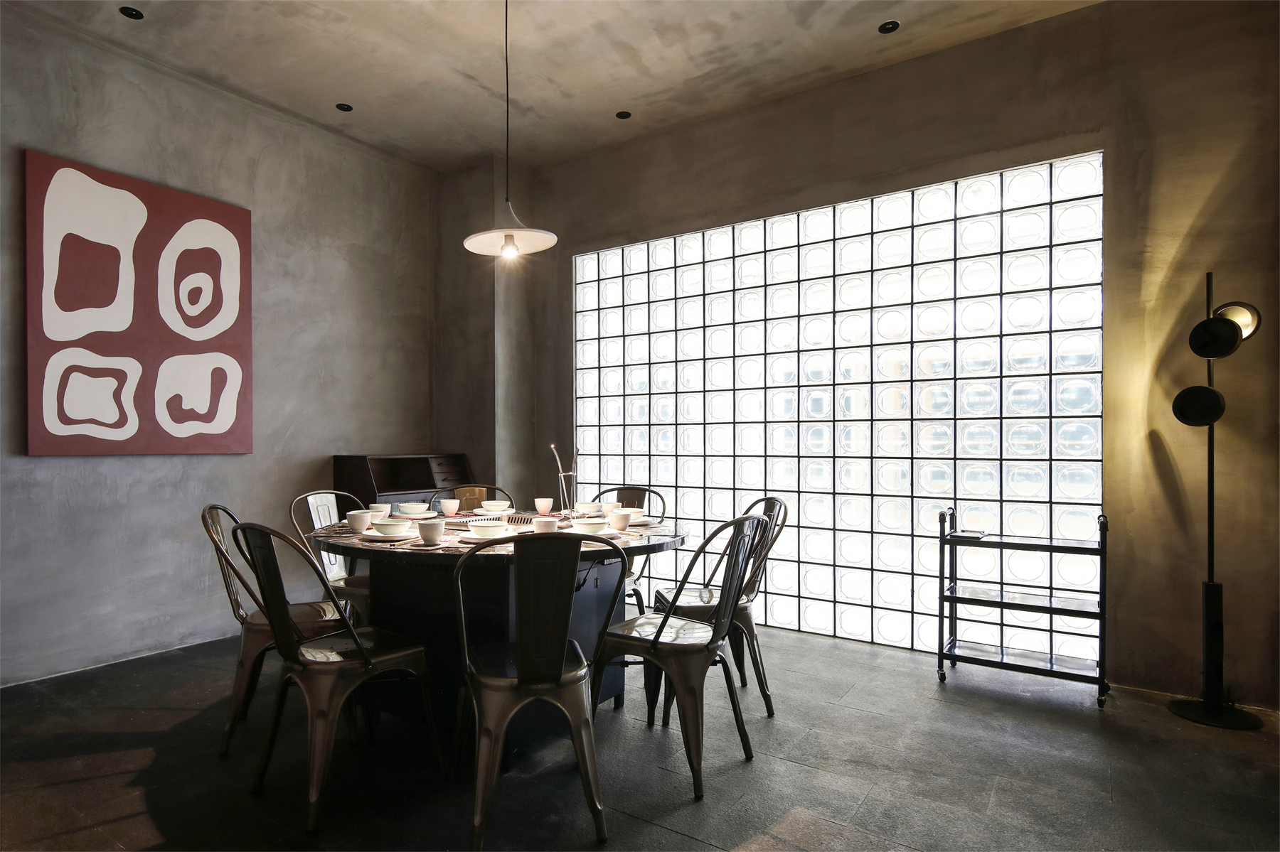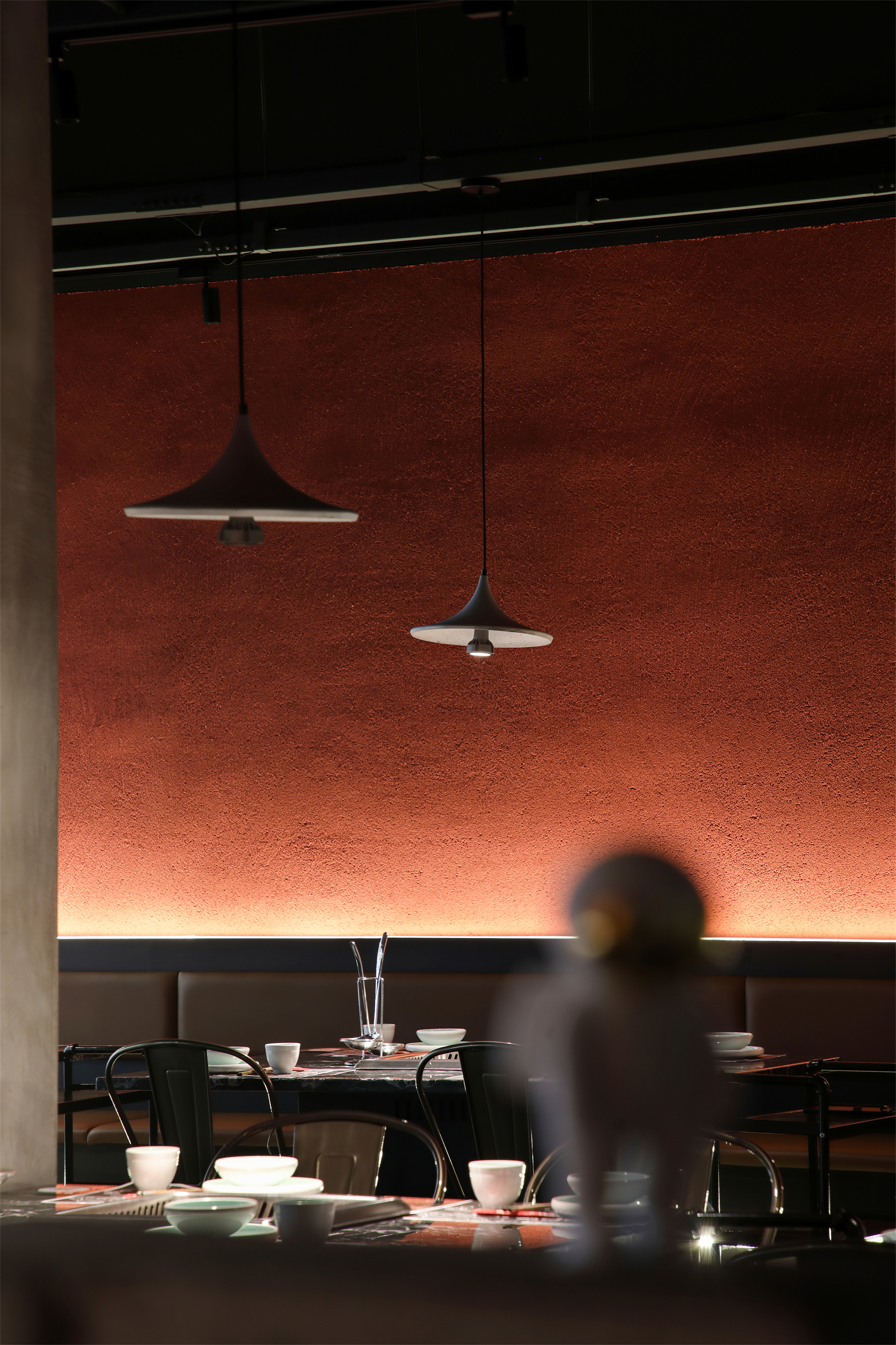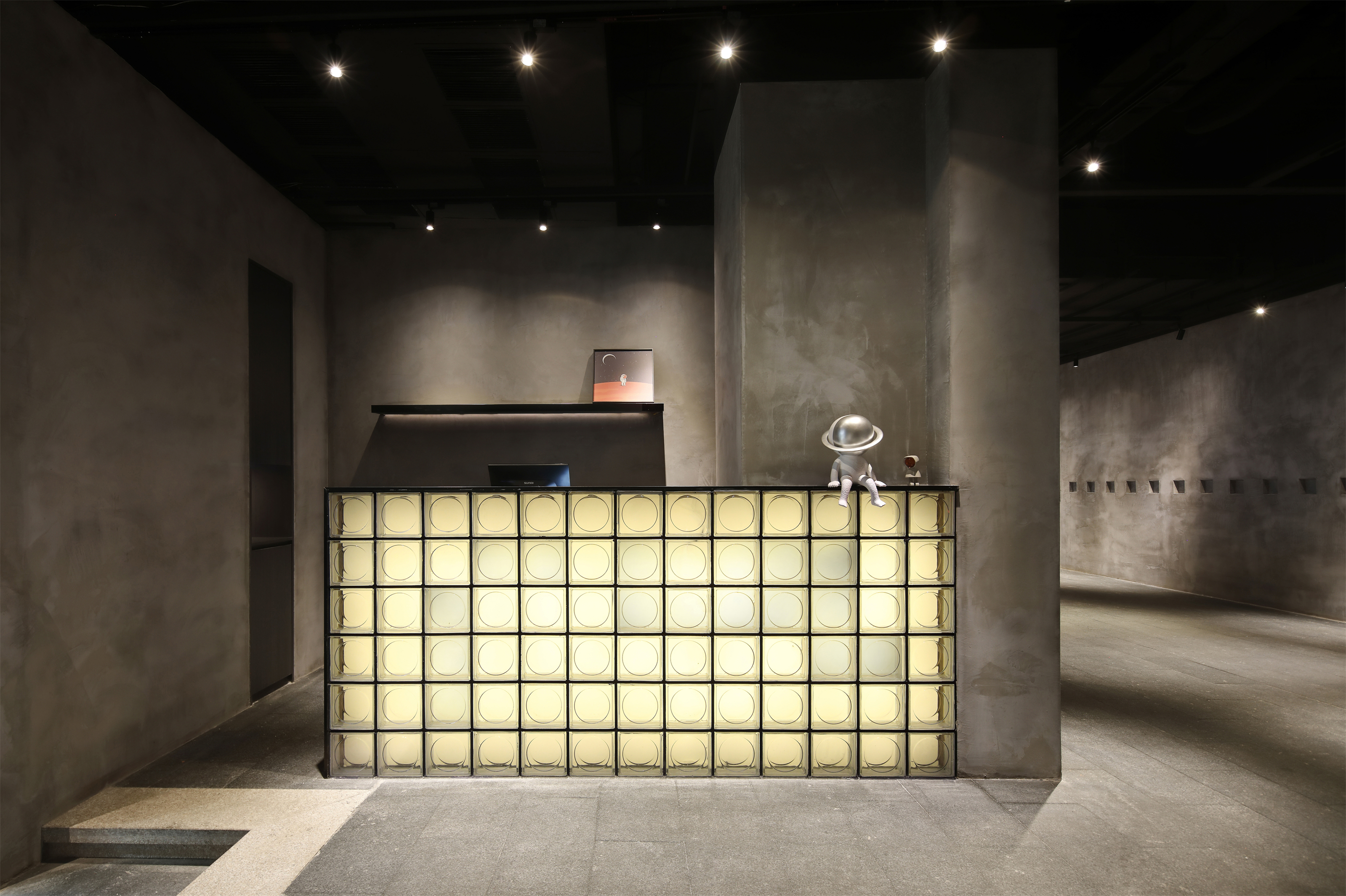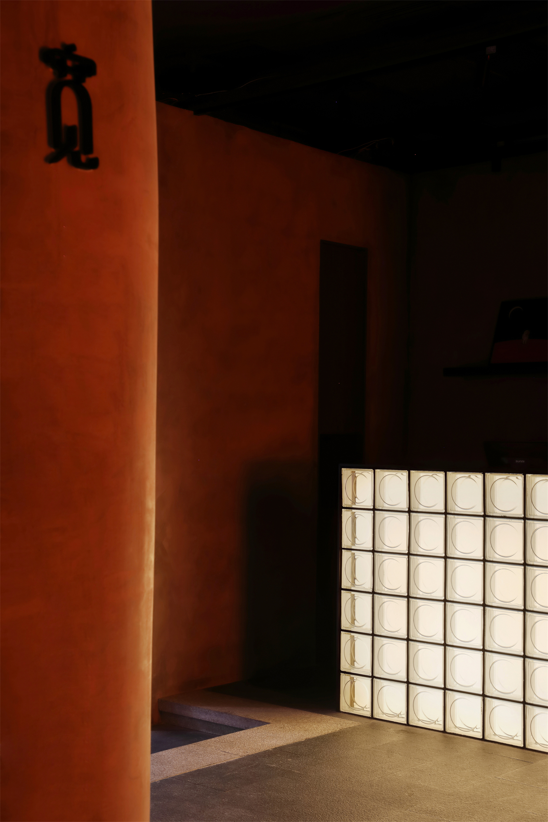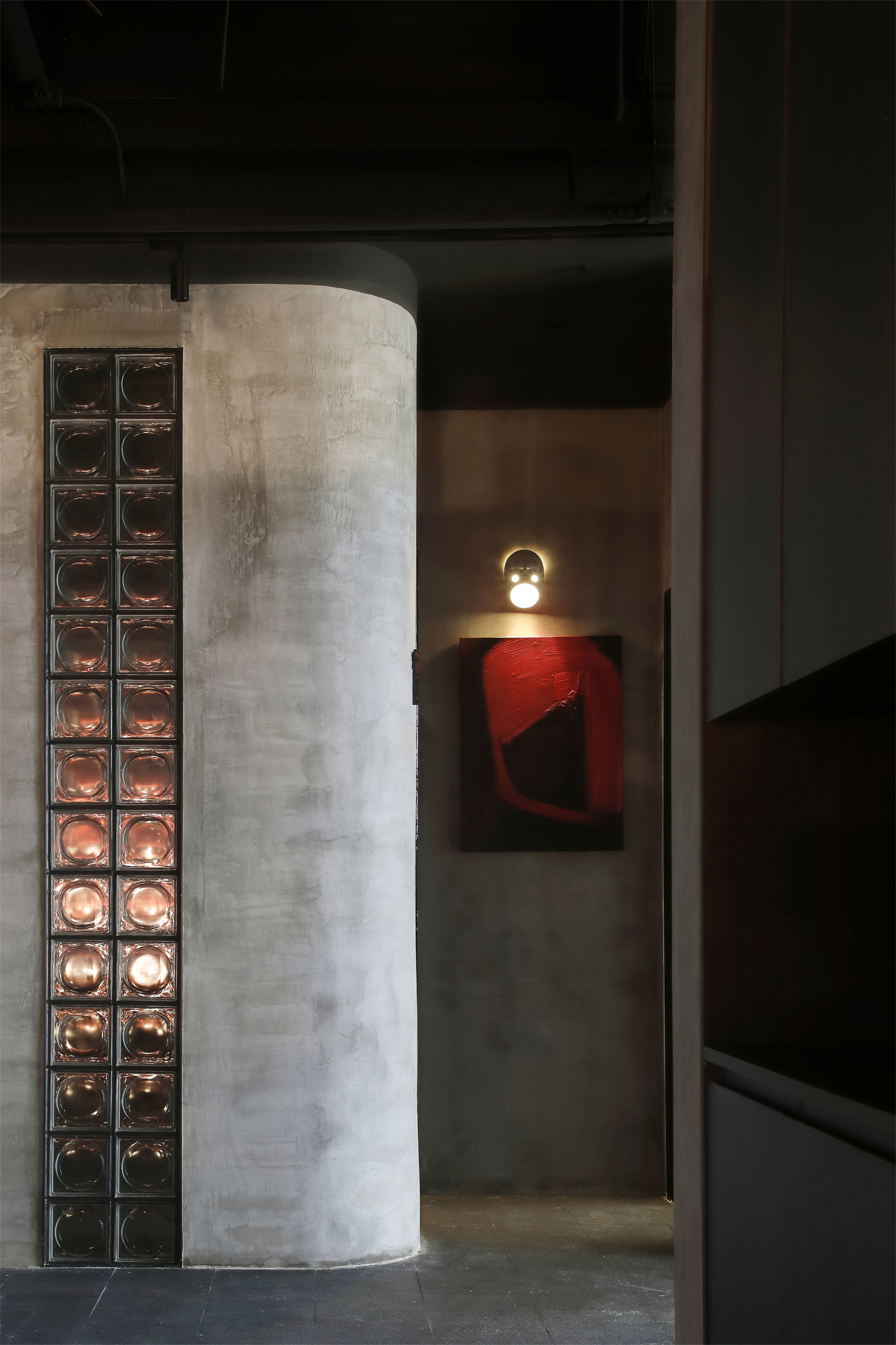 设计选材:设计选材:霓虹灯、清水混凝土、太阳纹玻璃砖、定制夯土