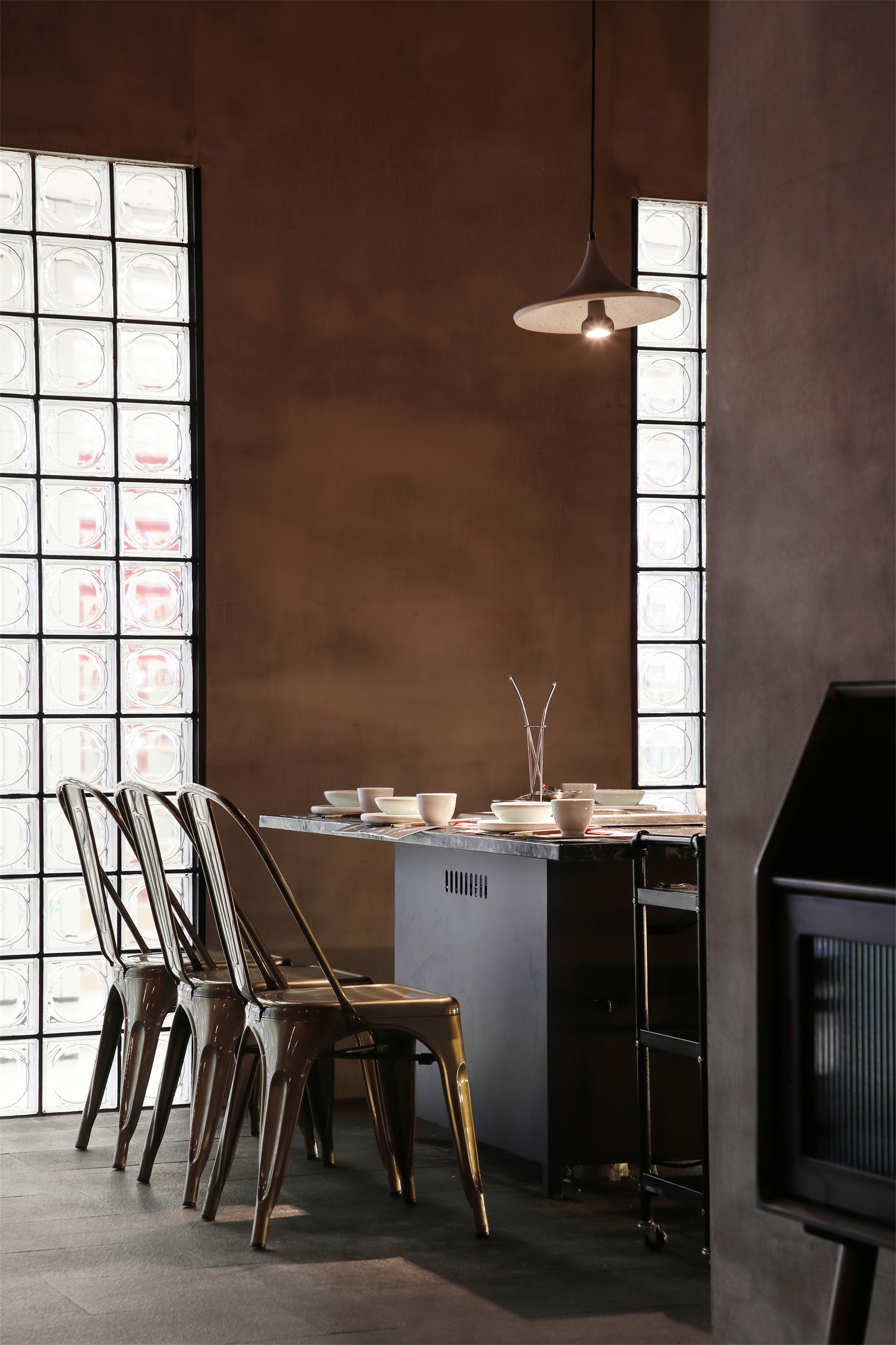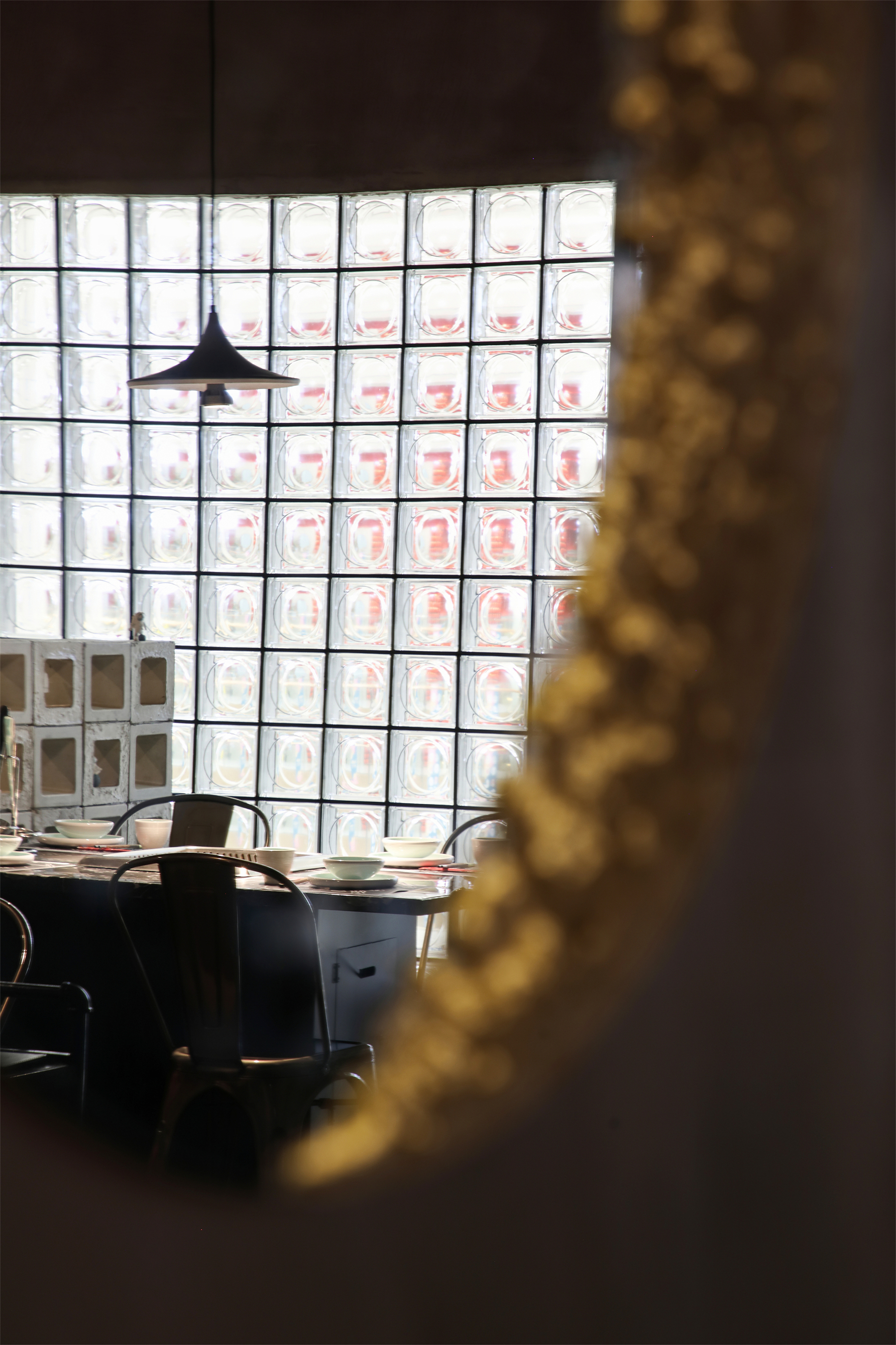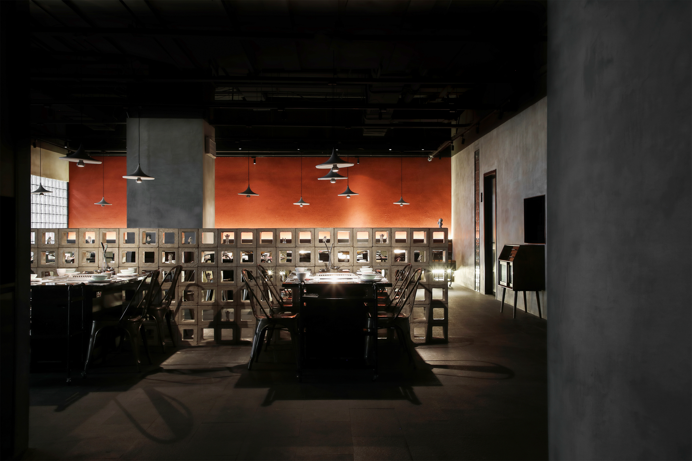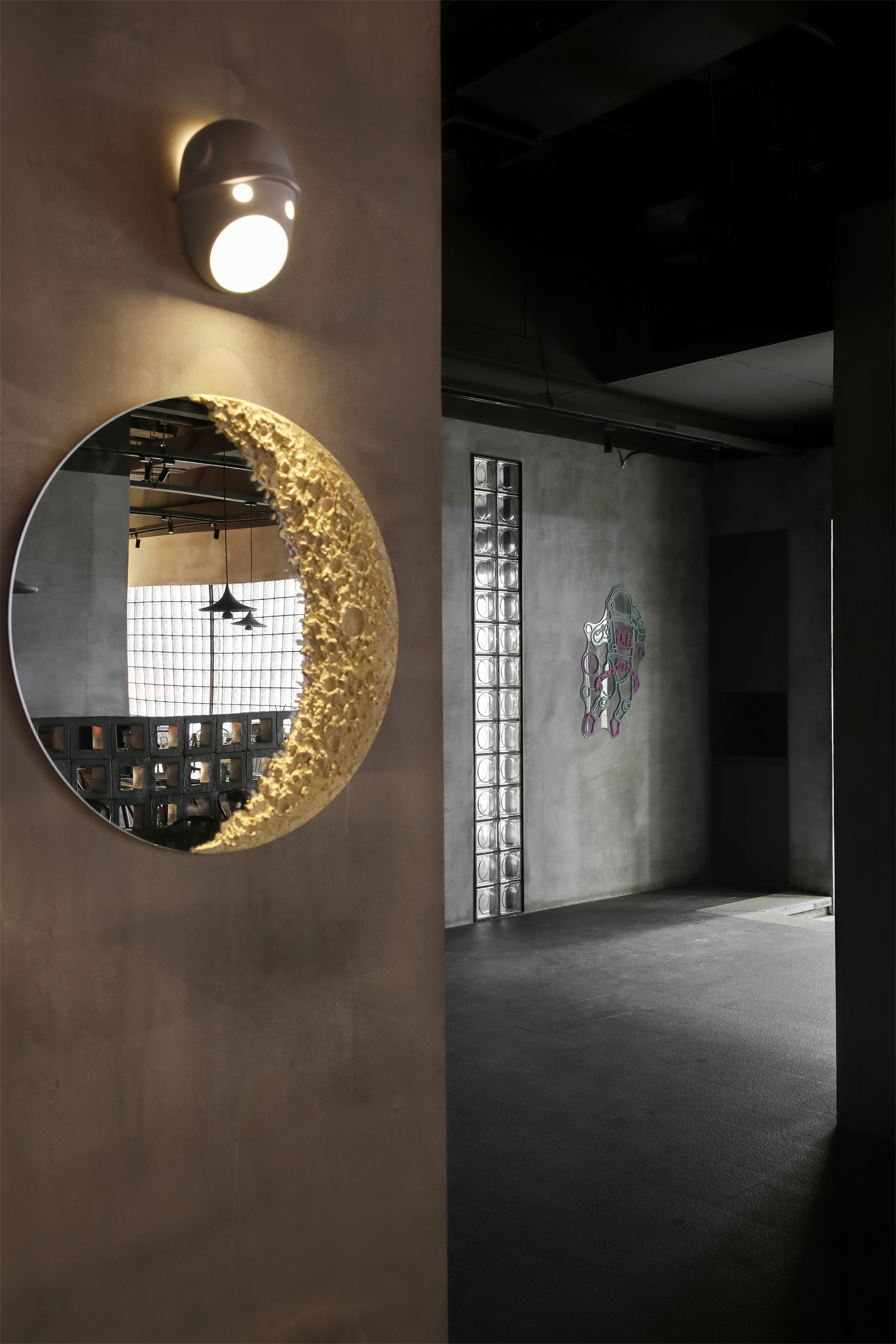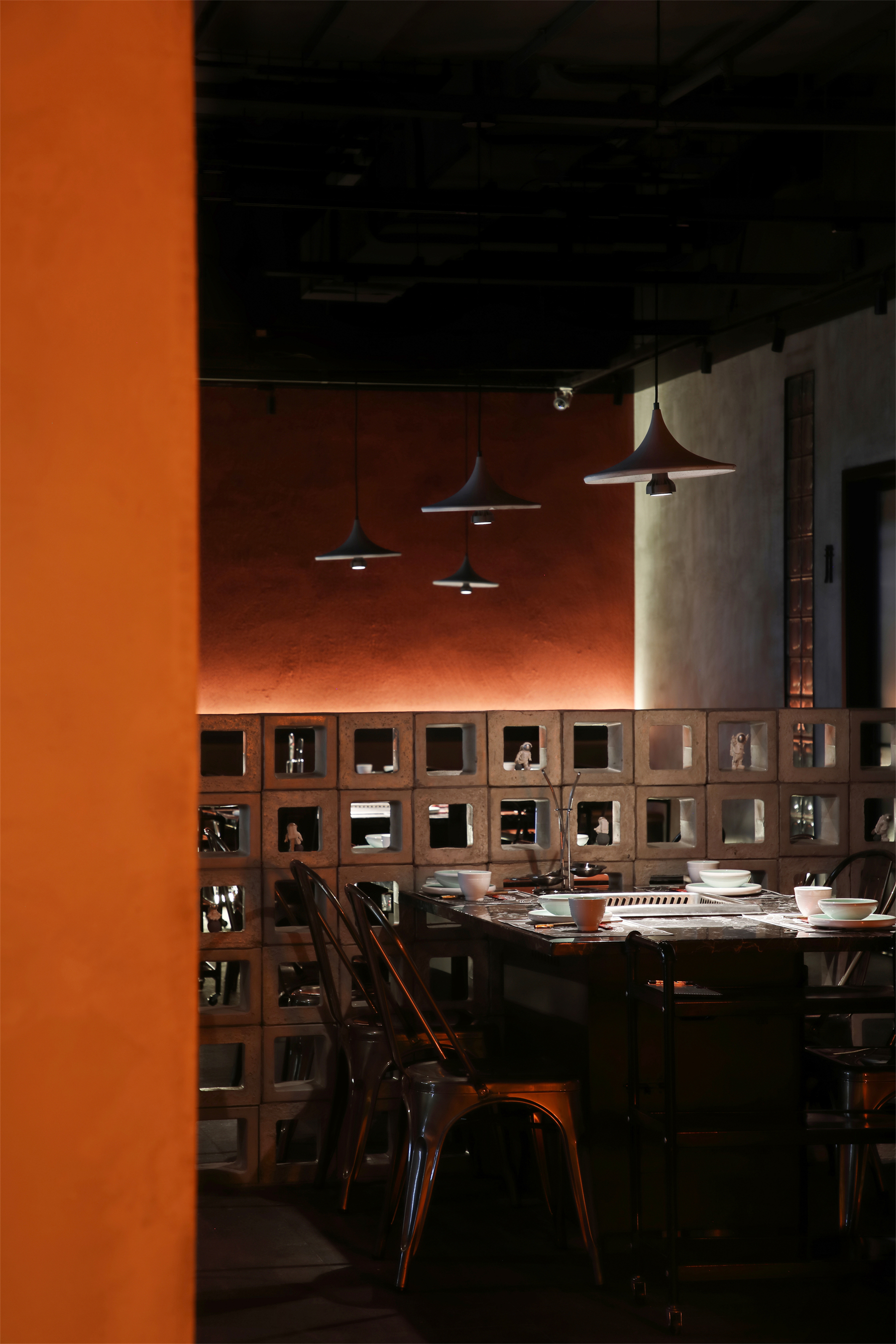 设计选材:设计选材:霓虹灯、清水混凝土、太阳纹玻璃砖、定制夯土
